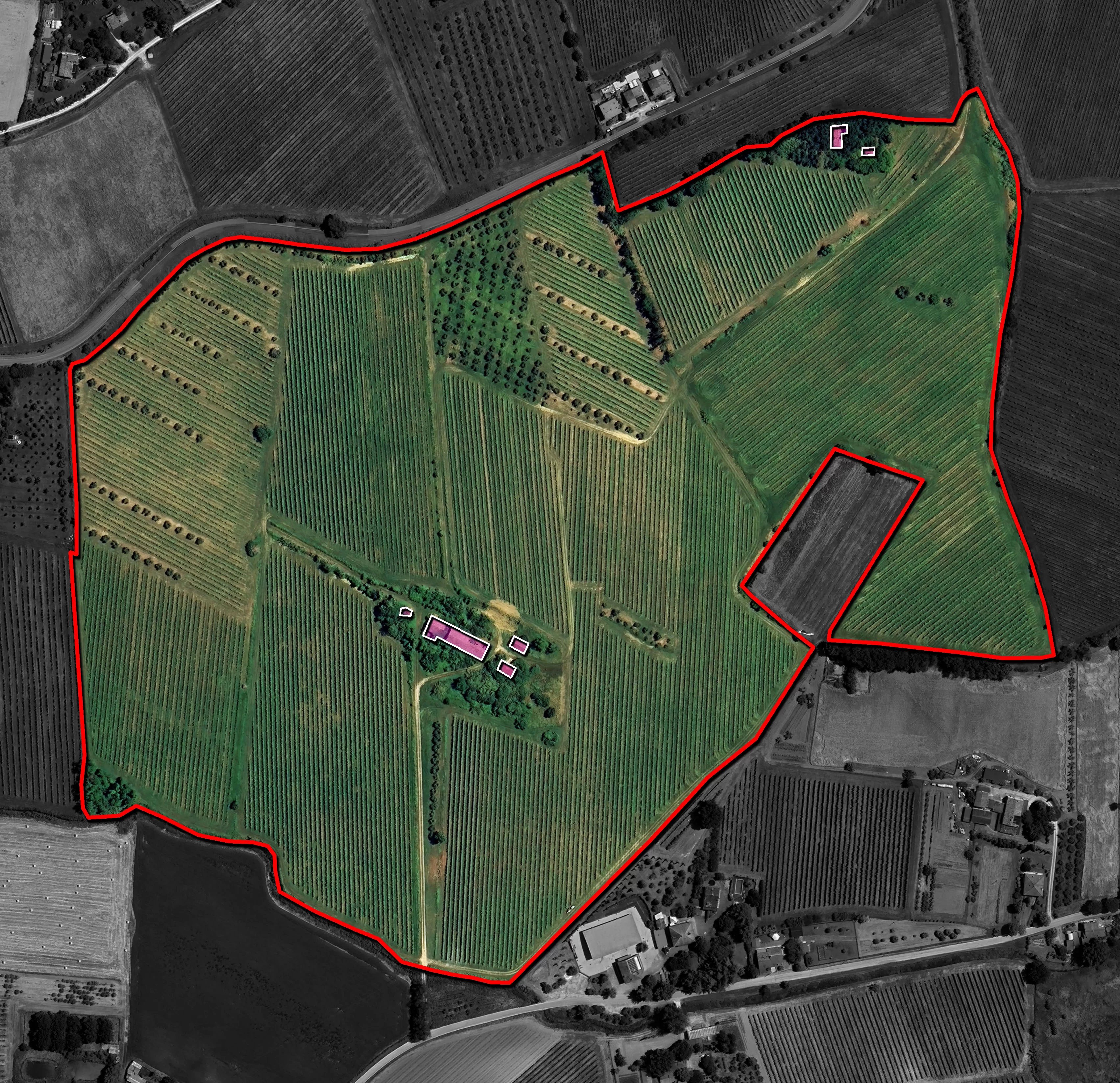 Sempre all’interno della proprietà si trovano due grandi casali rurali con vari annessi (circa 1.400 m² in totale), interamente da ristrutturare ma potenzialmente molto adatti per la creazione di un’attività agrituristica con annessa attività didattica. Le volumetrie sono inoltre più che sufficienti per la creazione di una cantina di vinificazione aziendale così da poter sfruttare il vigneto direttamente.