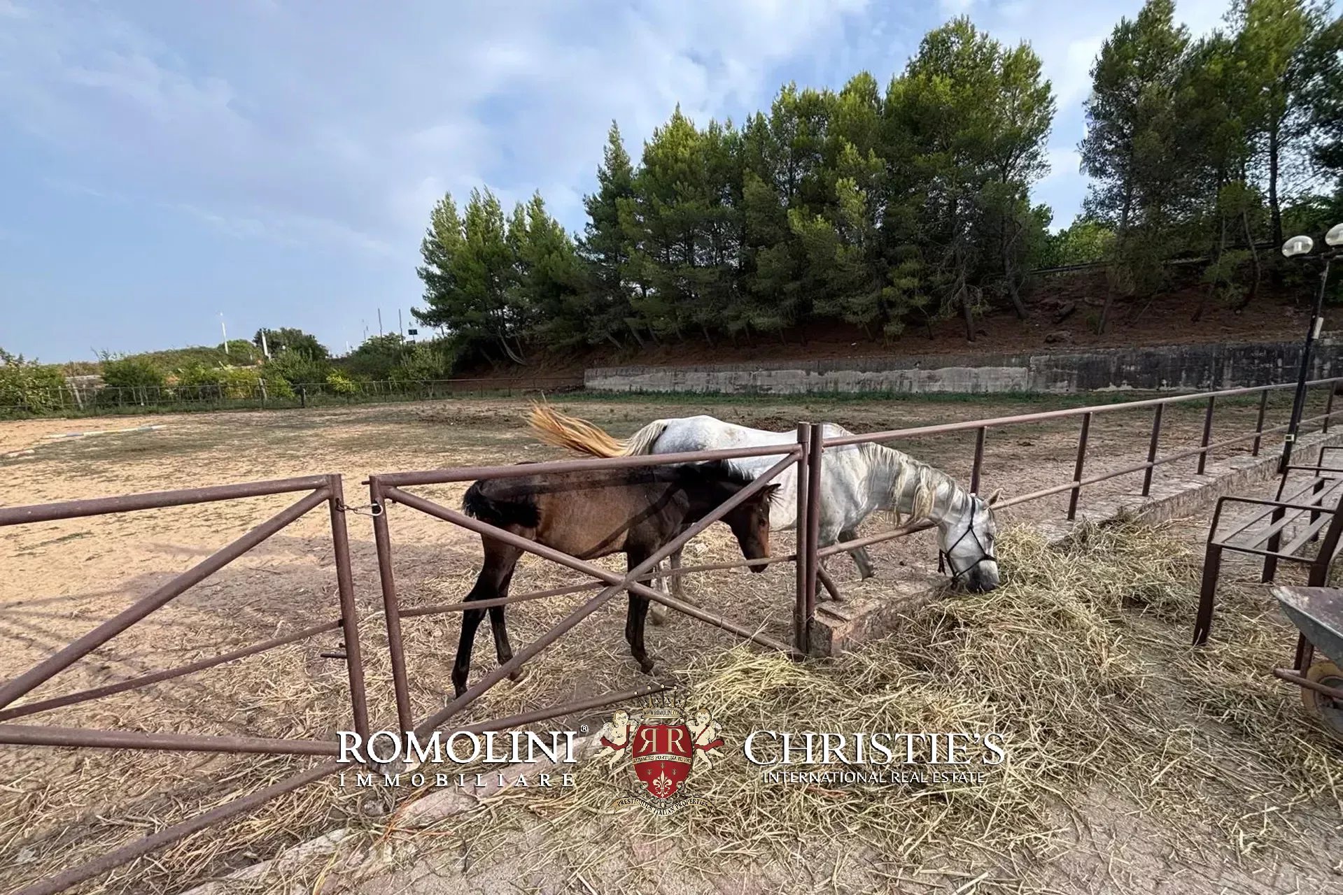 Gli altri edifici includono un fienile (180 m²), un locale per il confezionamento dei prodotti aziendali (180 m²) e un maneggio (1.000 m²) con box per cavalli e locali accessori.