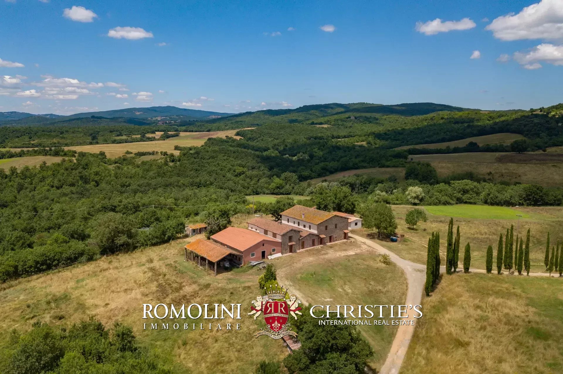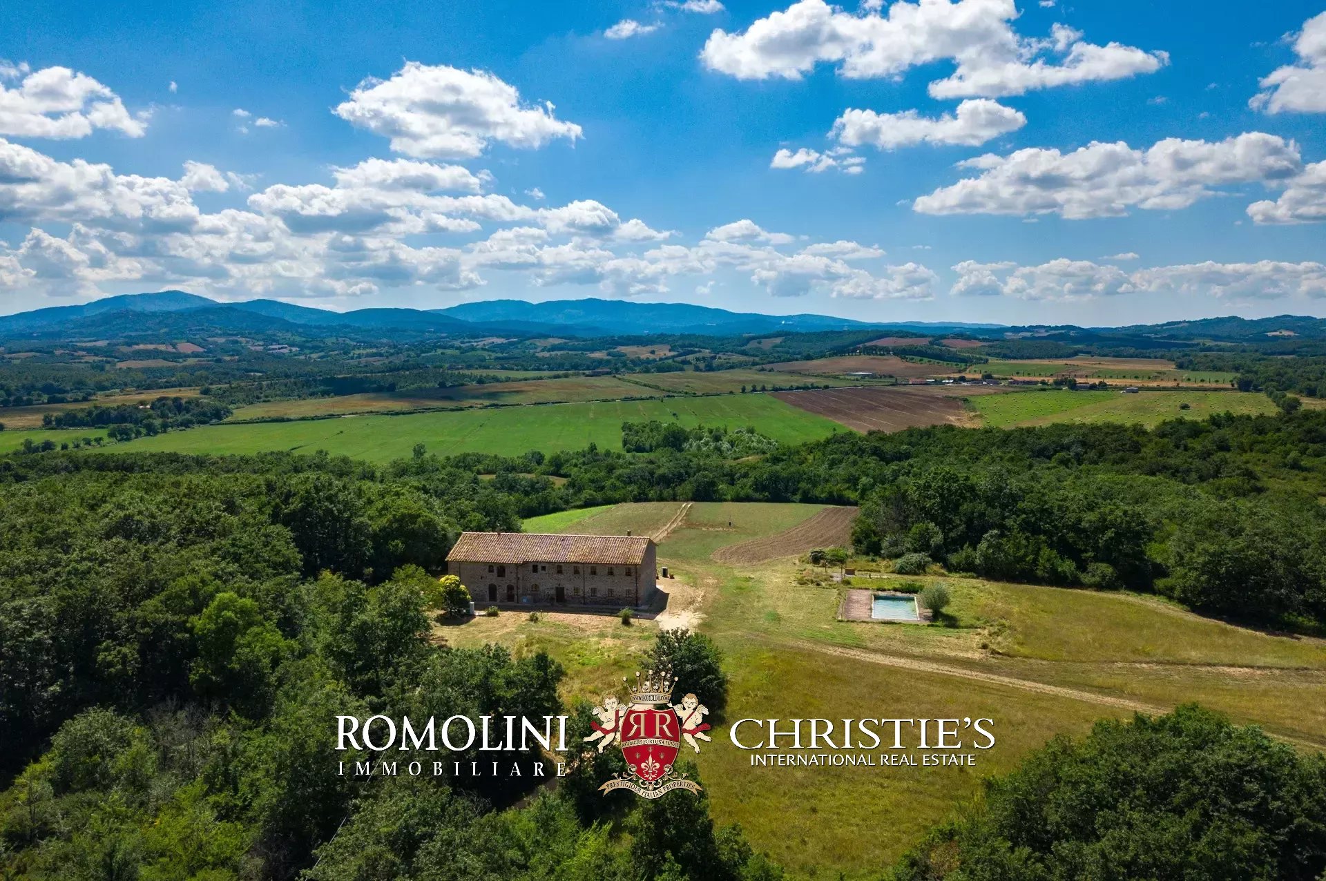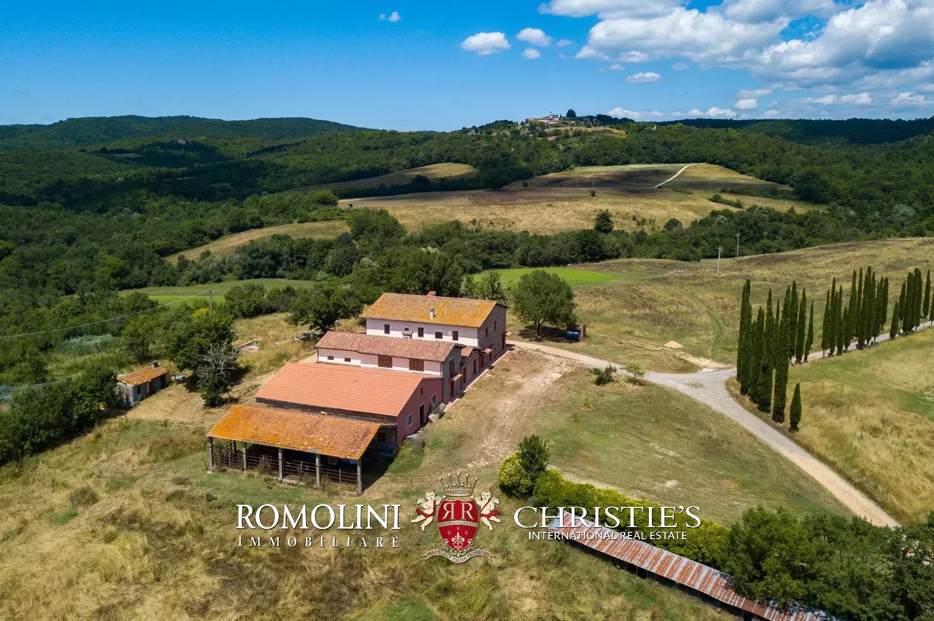Sulle colline della campagna Senese, nel cuore della Toscana, azienda faunistico-venatoria di 166,4 ettari con Agriturismo in vendita. La proprietà conta due edifici (oltre 1.700 m² in totale) che ospitano attualmente dieci appartamenti e sette camere per gli ospiti (fino a 42 posti letto), oltre a zone comuni, ristorante e locali agricoli. Il terreno è collinare, molto adatto anche all’allevamento di cavalli.