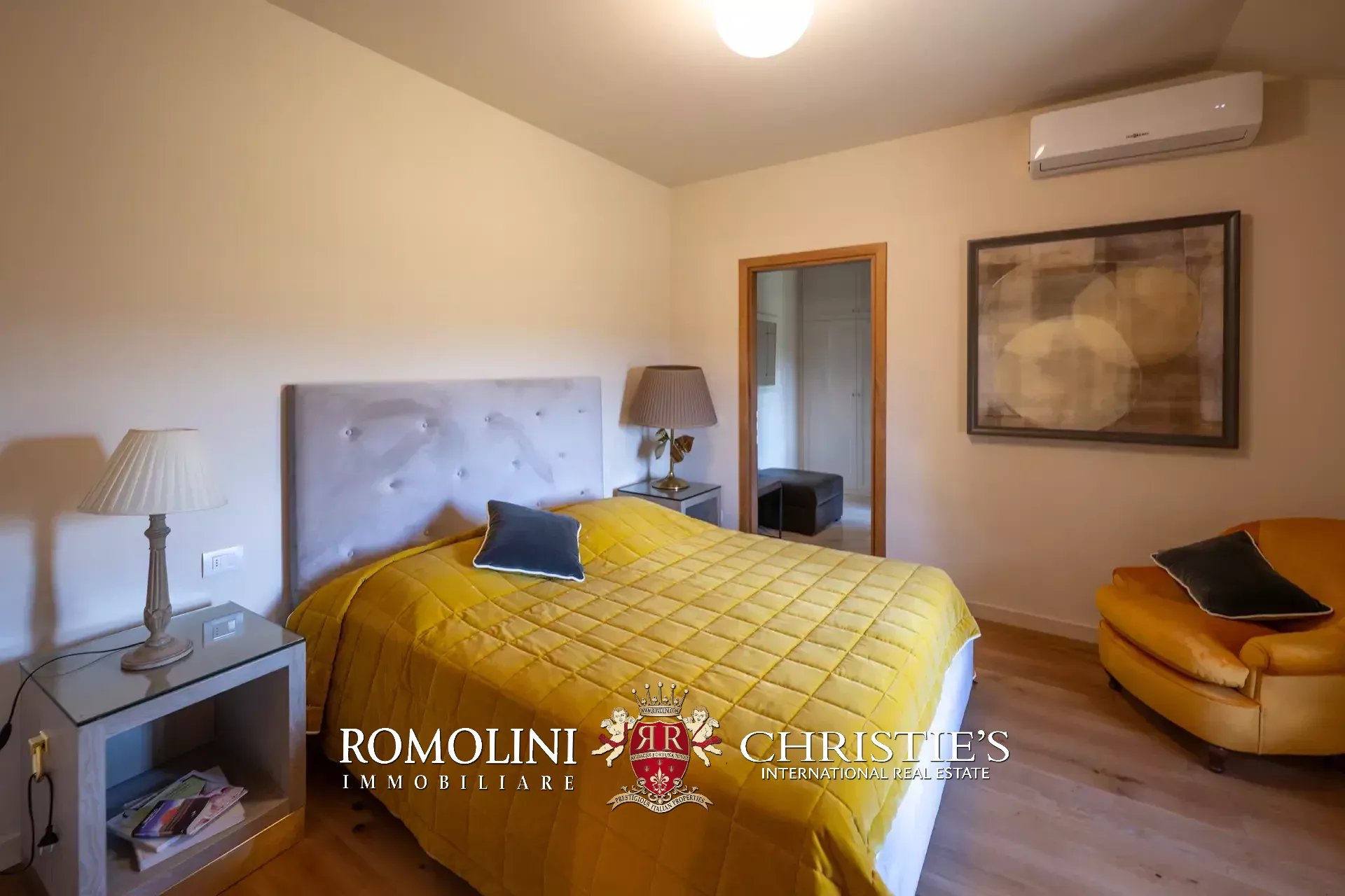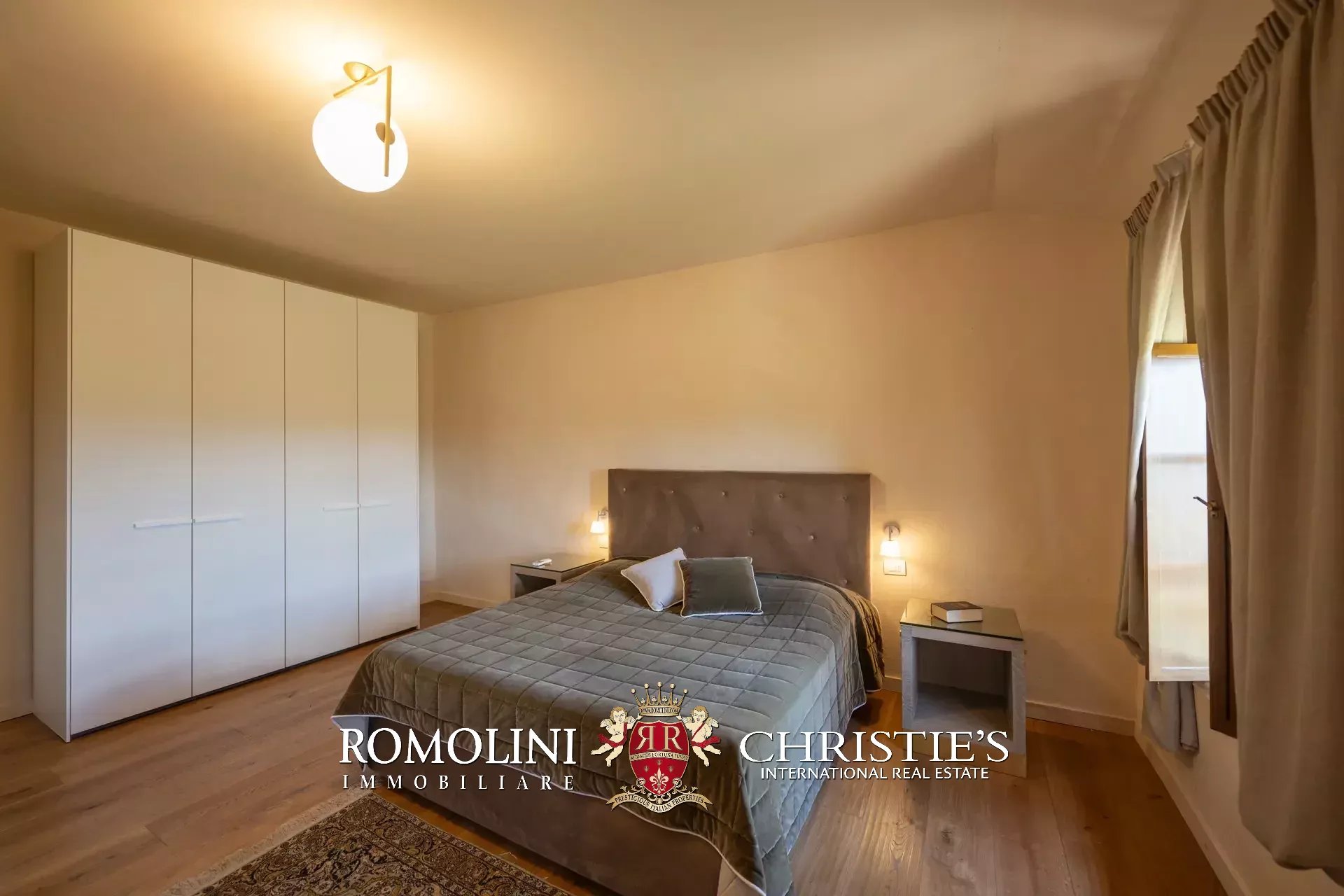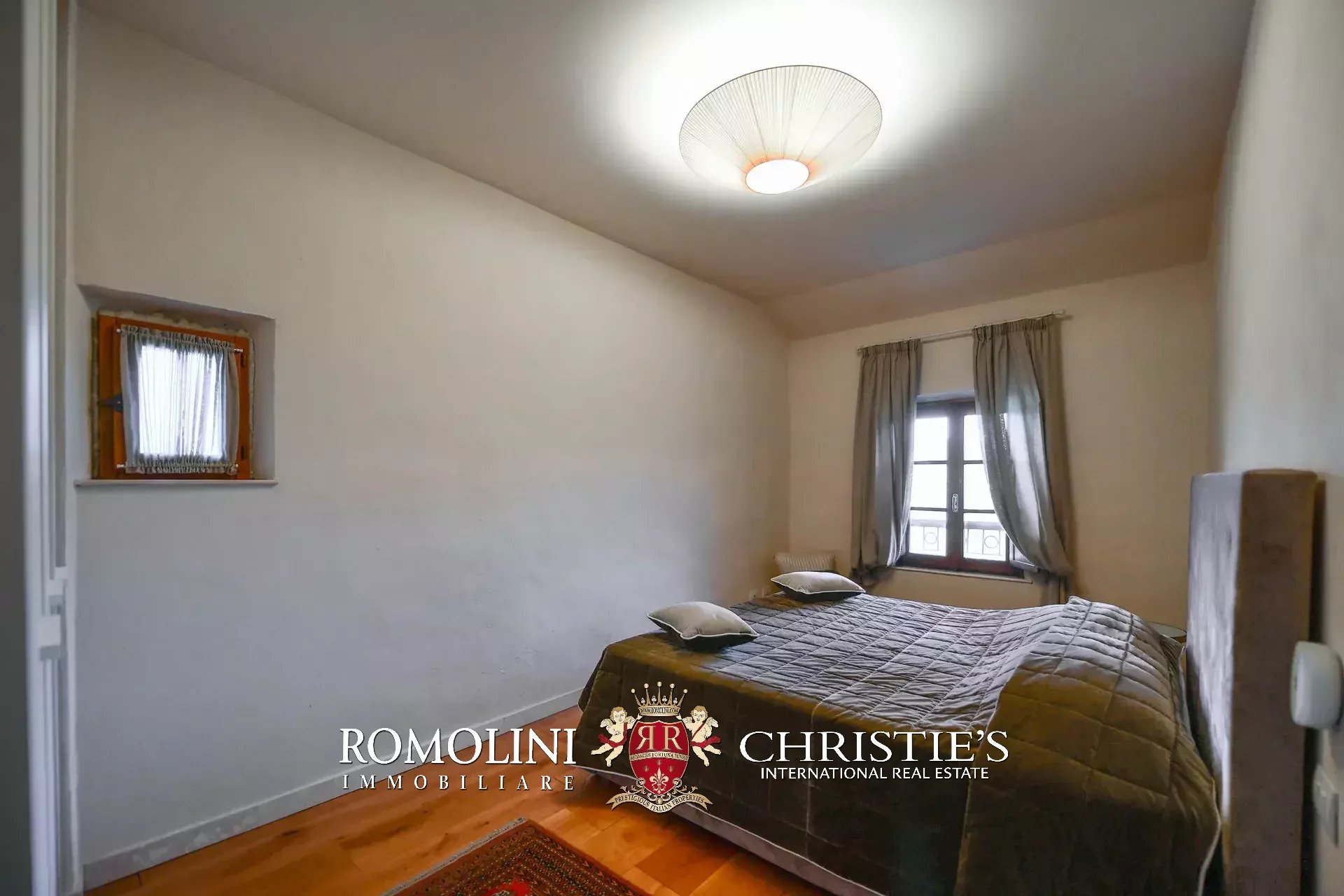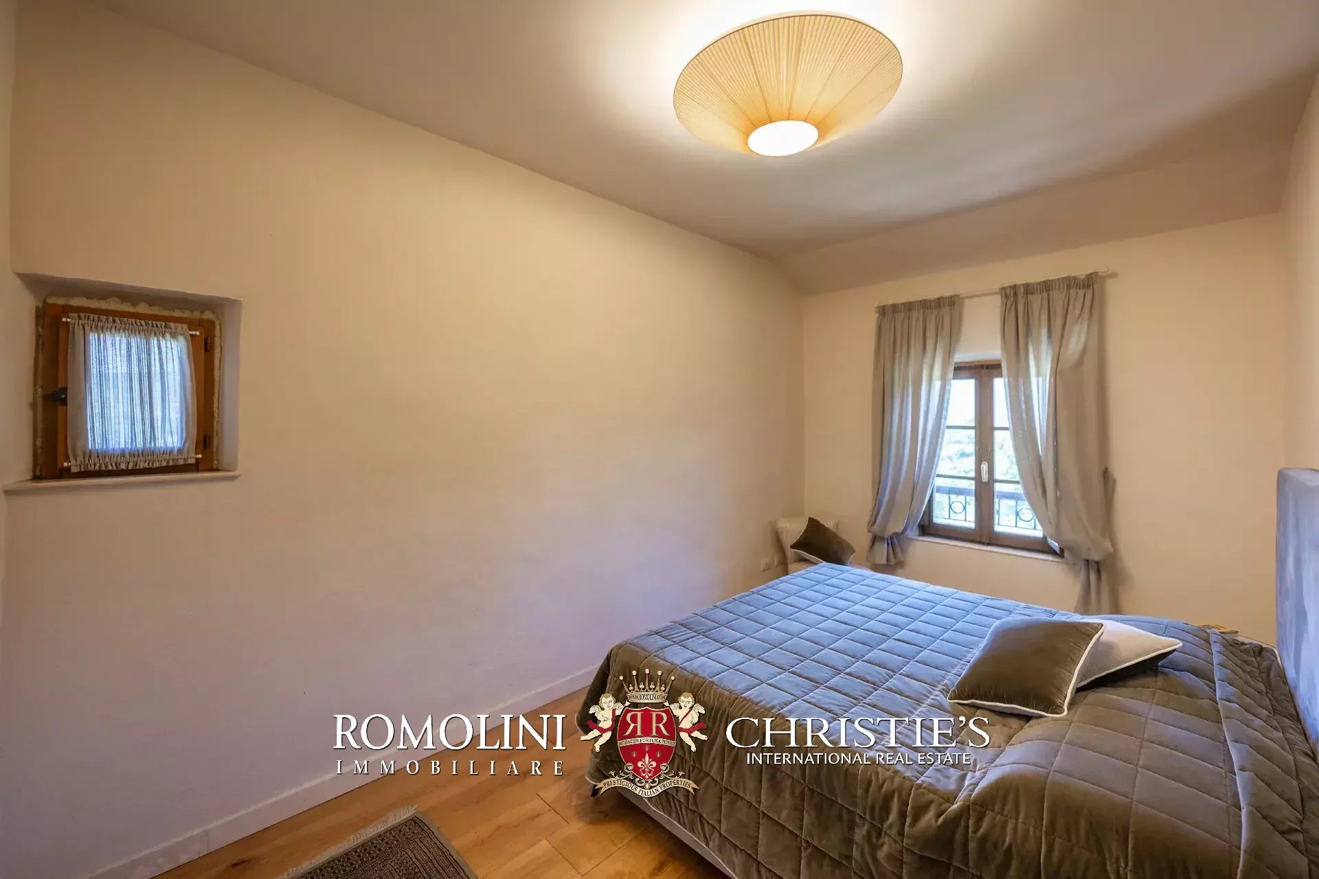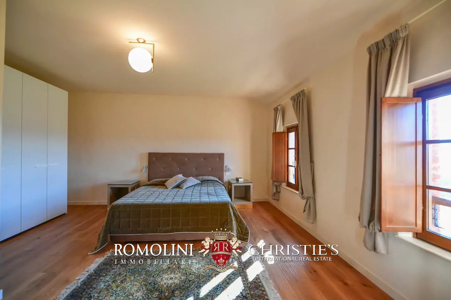 Il casale (621 m², 11 camere e 10 bagni) è un edificio rustico su due piani diviso in otto appartamenti indipendenti. La casa dispone anche di una piscina 12 × 6 m a uso esclusivo degli ospiti.