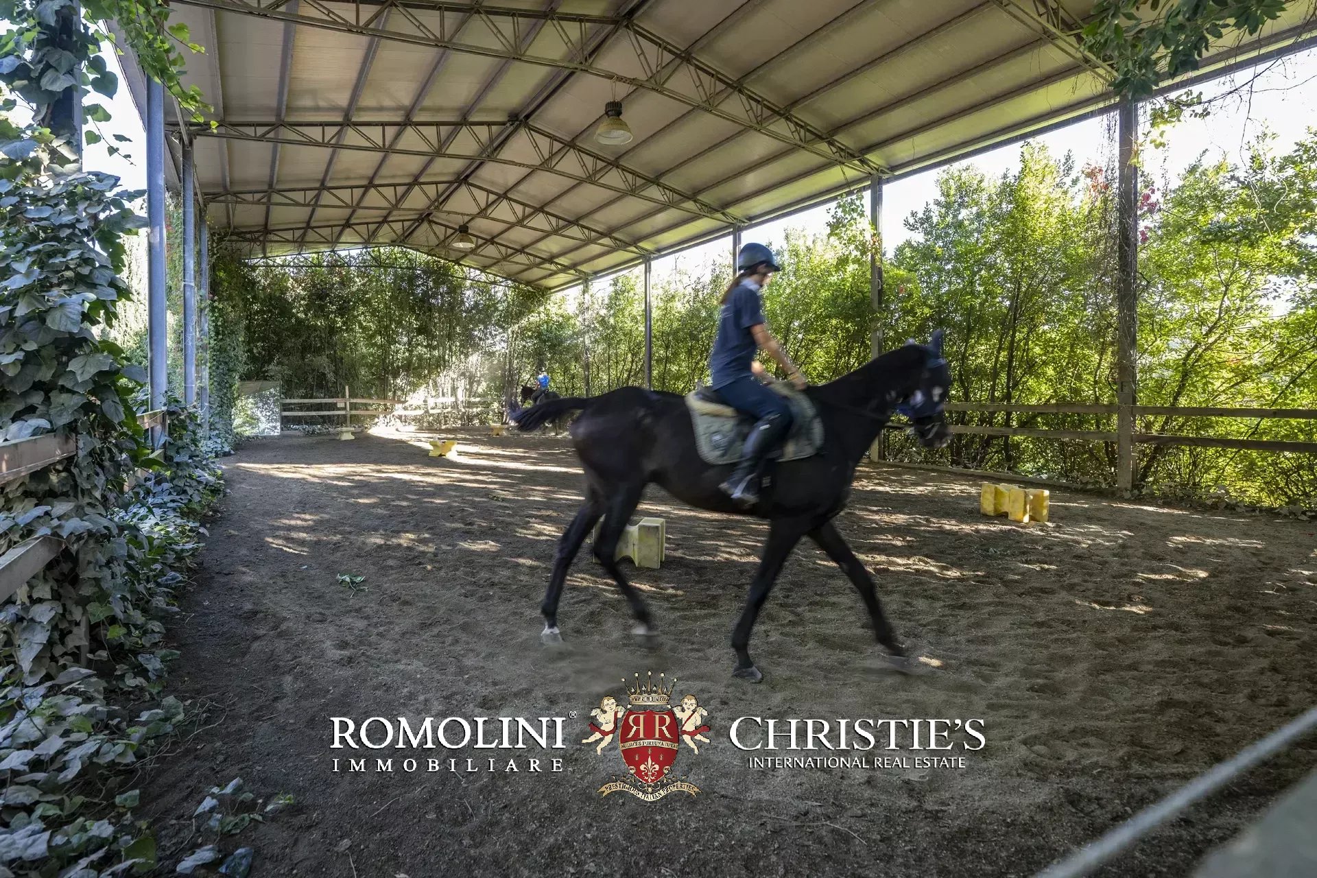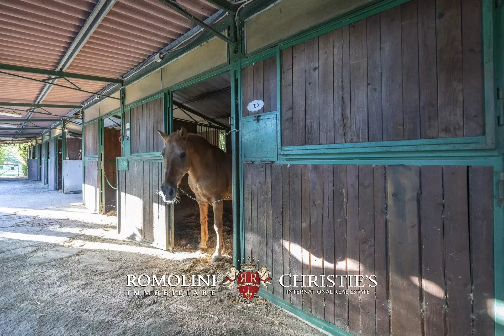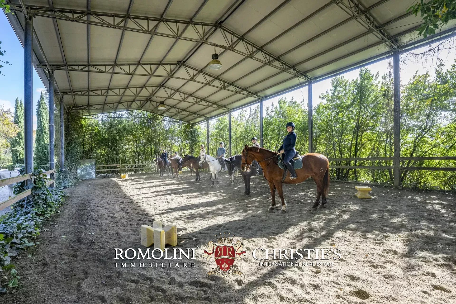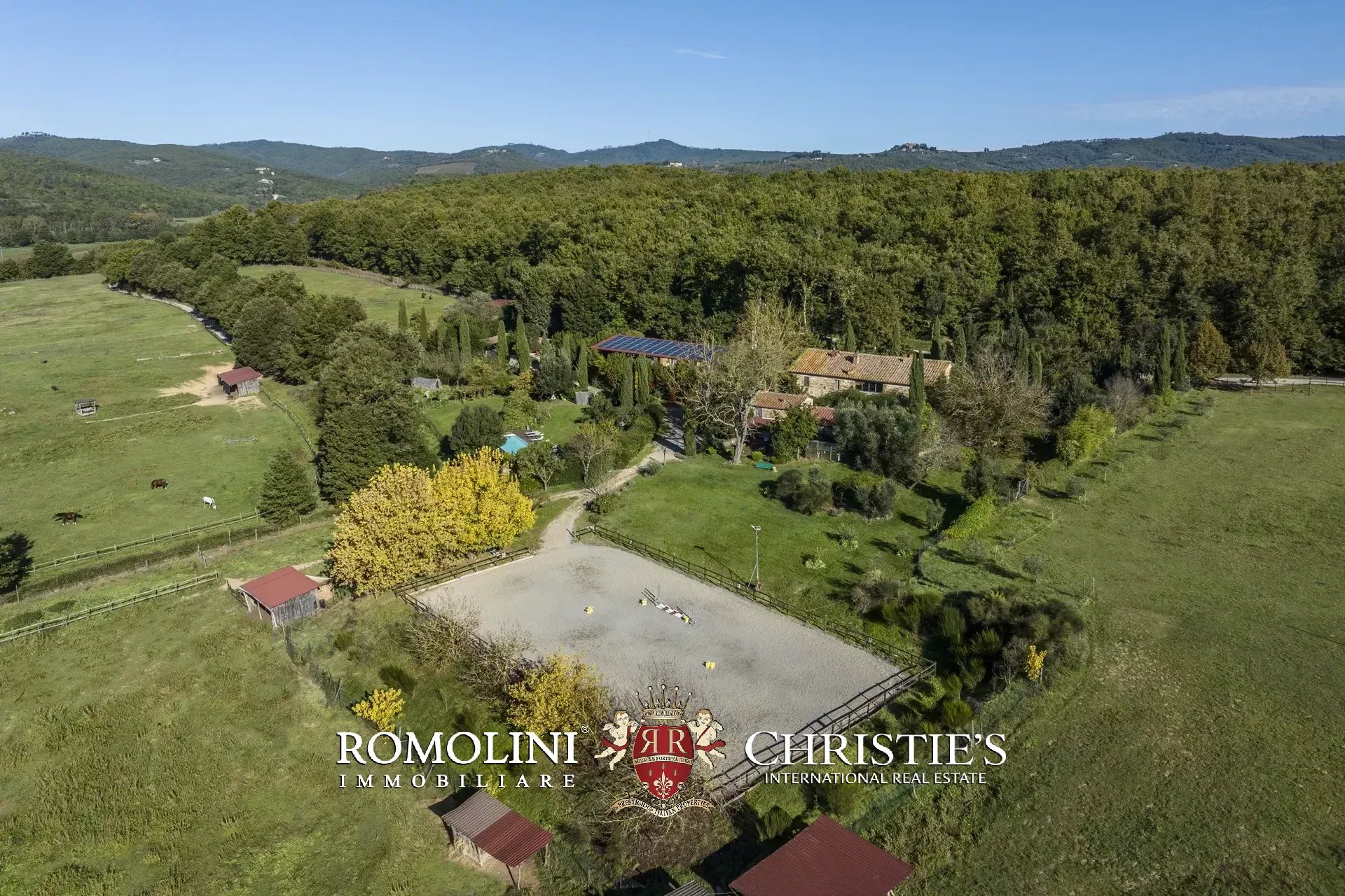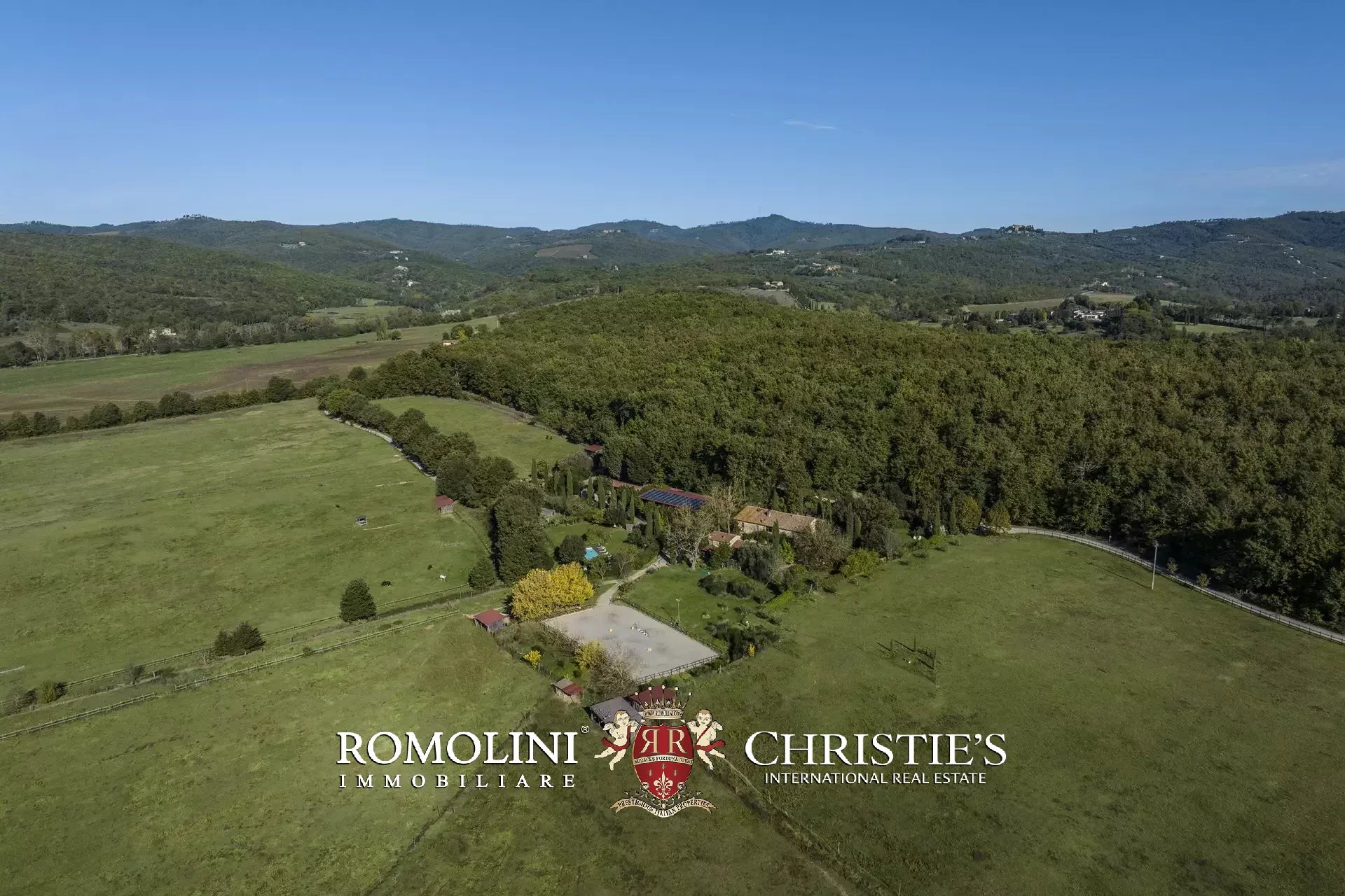 Tenuta equestre in vendita nel Chianti Classico con casale residenziale, strutture ricettive agrituristiche, un complesso ippico con scuderie (16 box e selleria) e campi di lavoro. La posizione è eccellente, con accesso diretto ai più suggestivi sentieri per passeggiate a cavallo nel cuore del Chianti Classico.