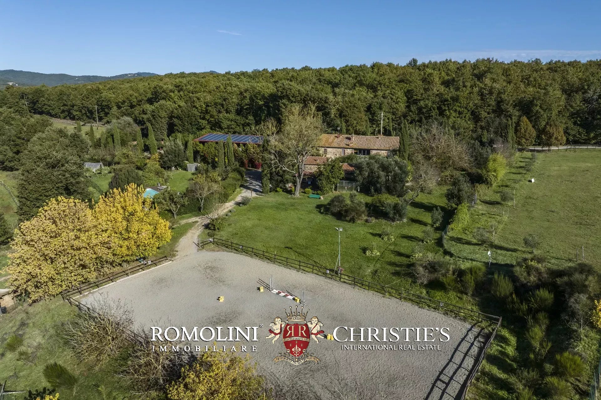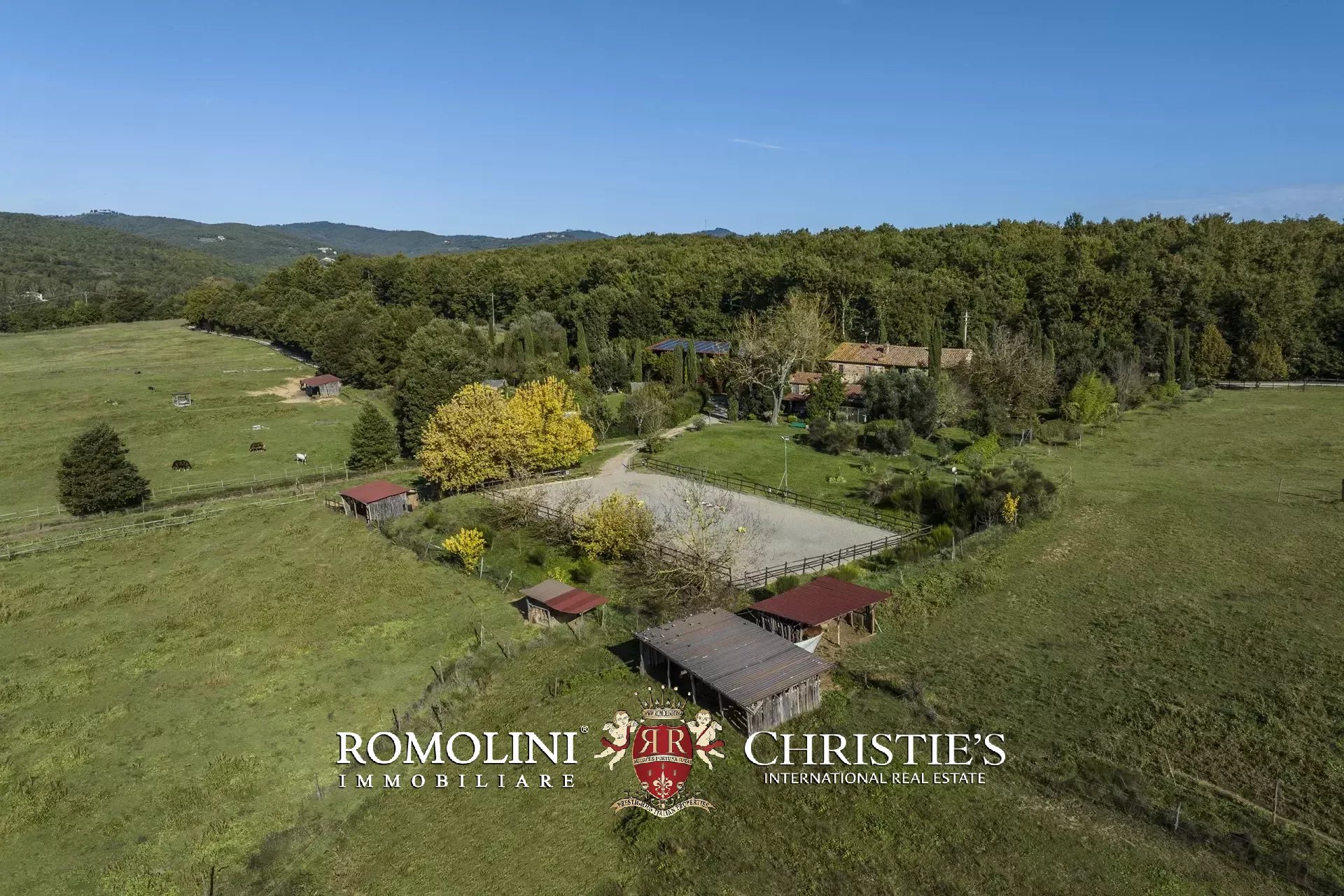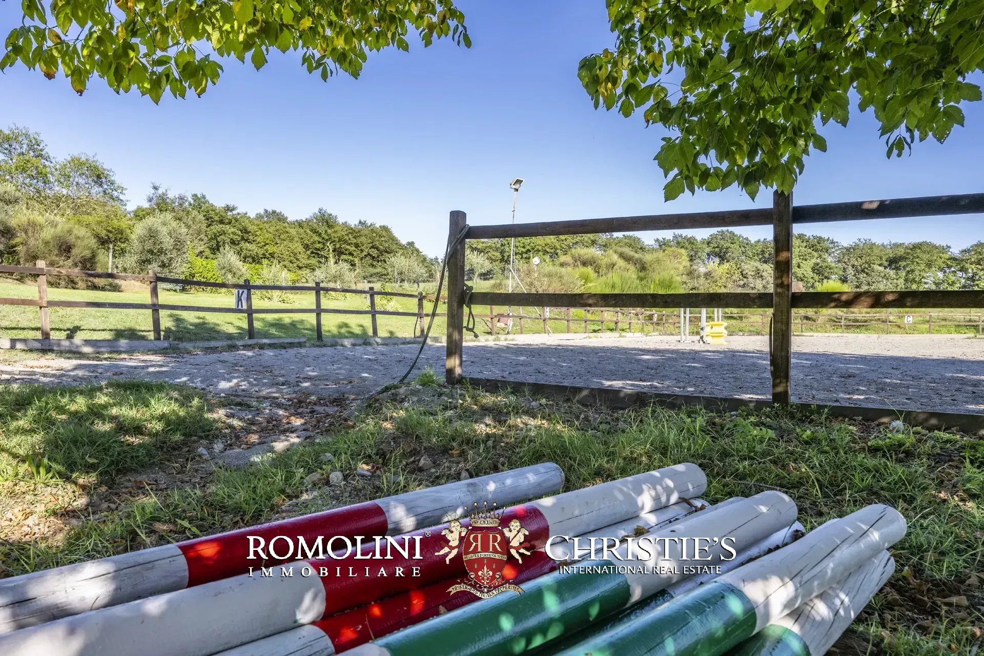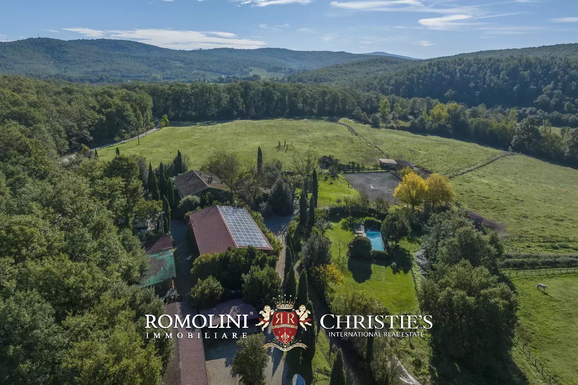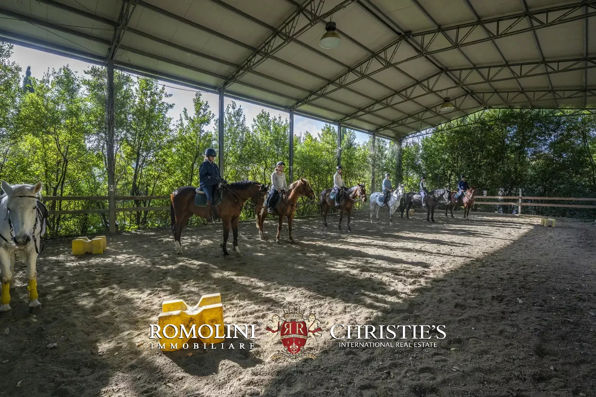 Tenuta equestre in vendita nel Chianti Classico con casale residenziale, strutture ricettive agrituristiche, un complesso ippico con scuderie (16 box e selleria) e campi di lavoro. La posizione è eccellente, con accesso diretto ai più suggestivi sentieri per passeggiate a cavallo nel cuore del Chianti Classico.
