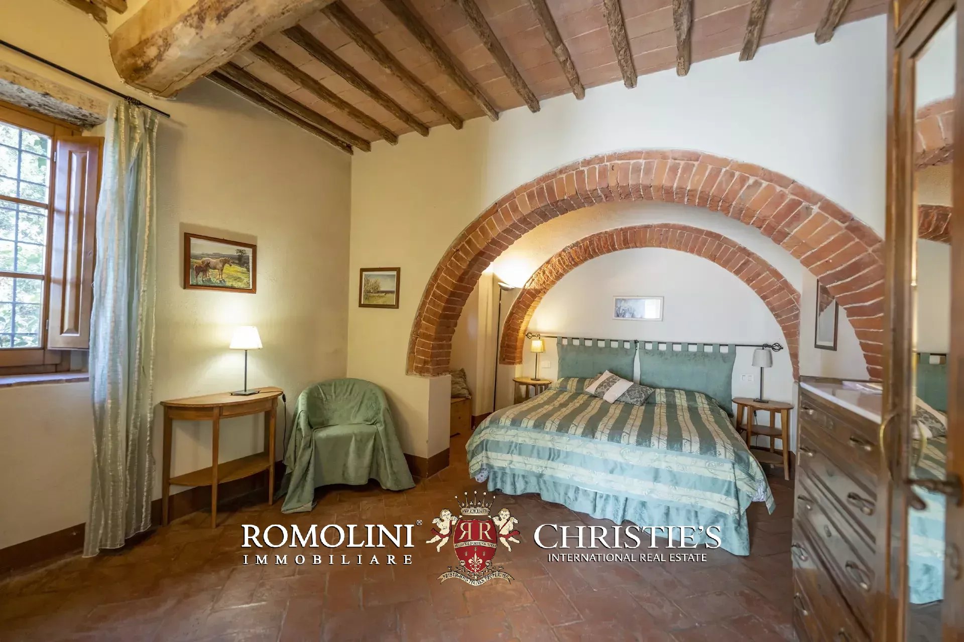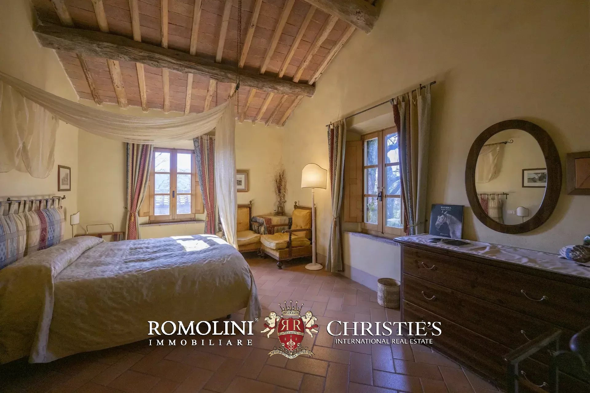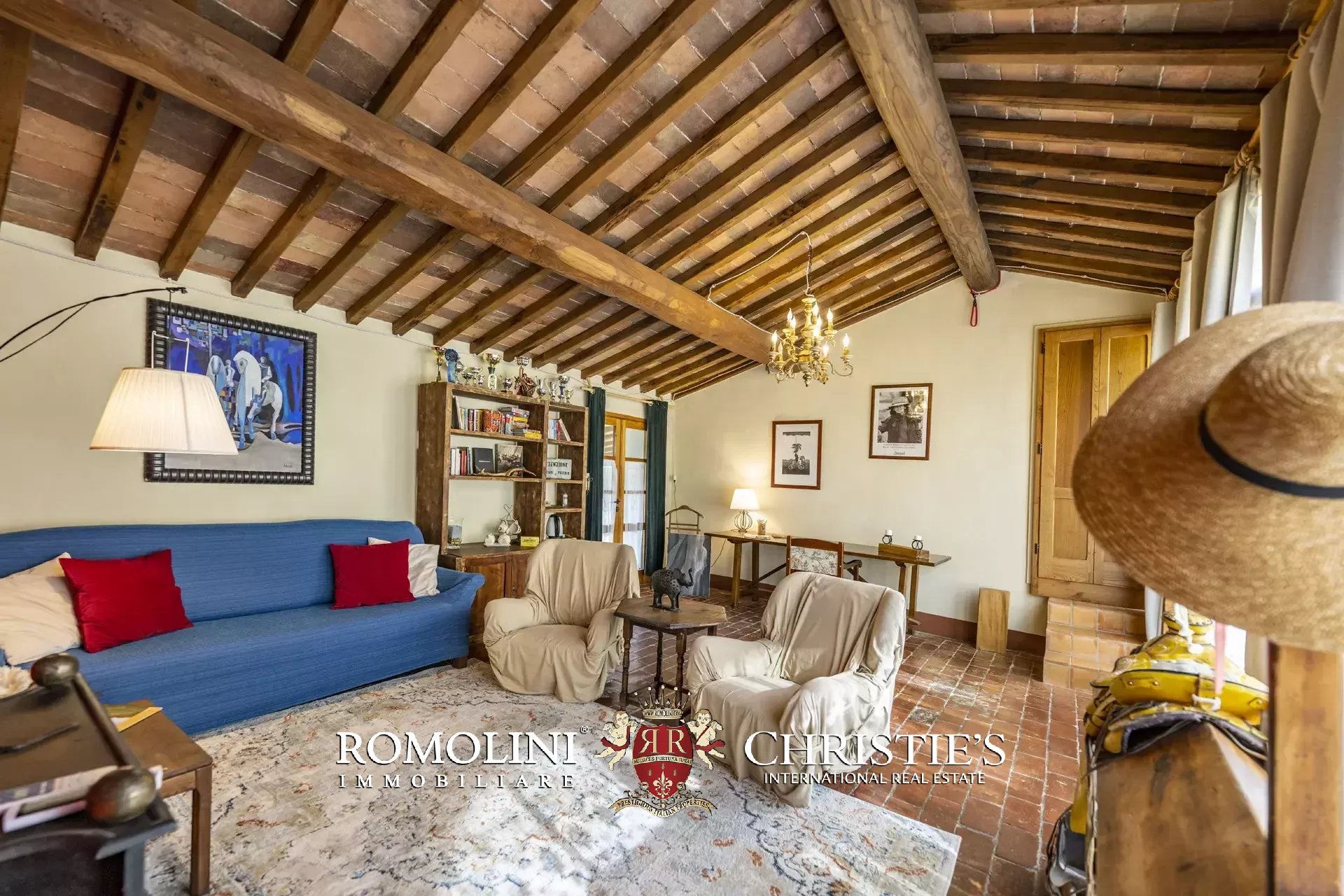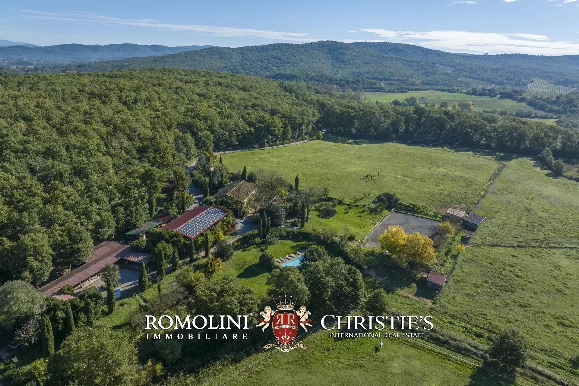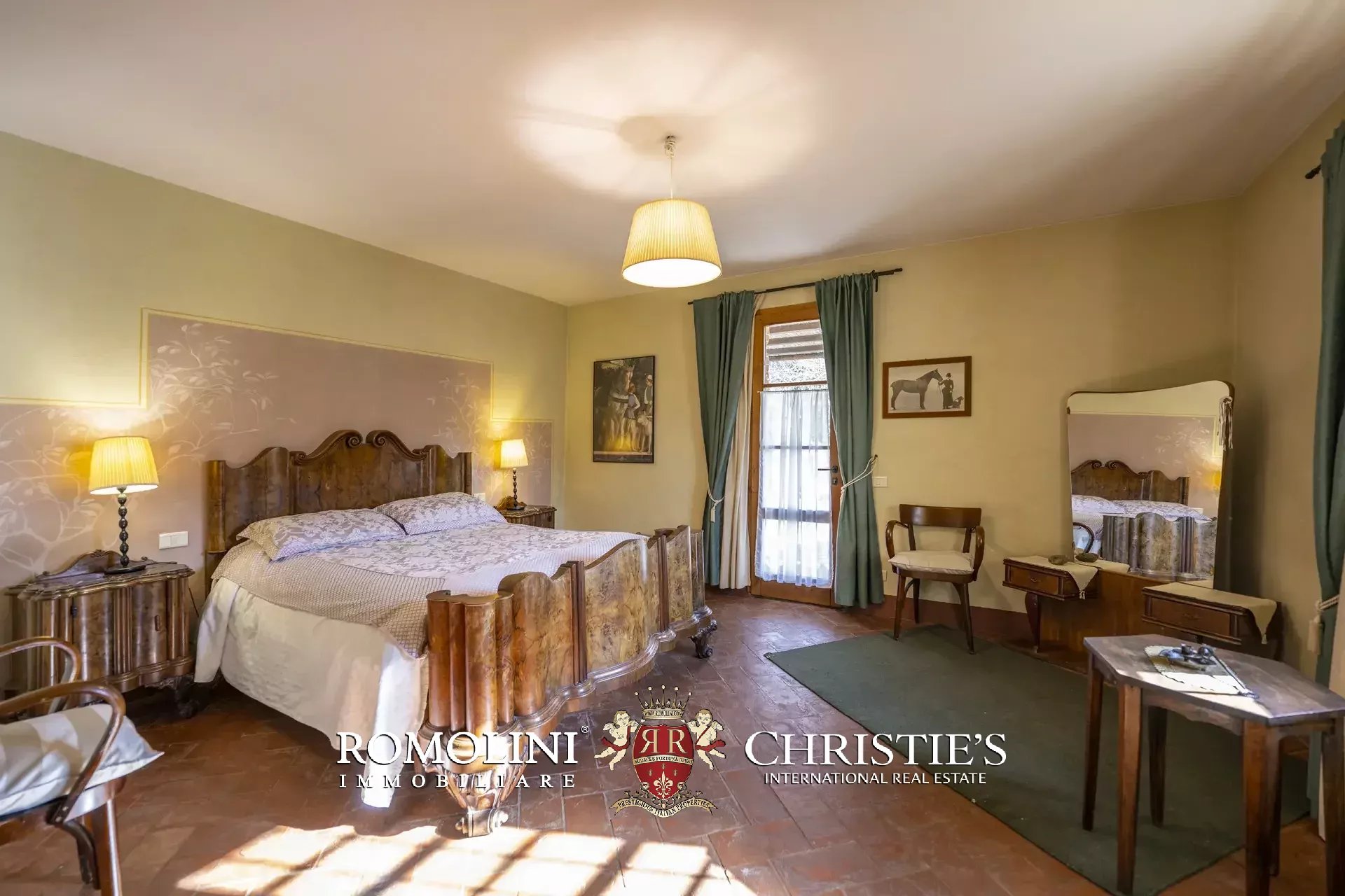 Tenuta equestre in vendita nel Chianti Classico con casale residenziale, strutture ricettive agrituristiche, un complesso ippico con scuderie (16 box e selleria) e campi di lavoro. La posizione è eccellente, con accesso diretto ai più suggestivi sentieri per passeggiate a cavallo nel cuore del Chianti Classico.
