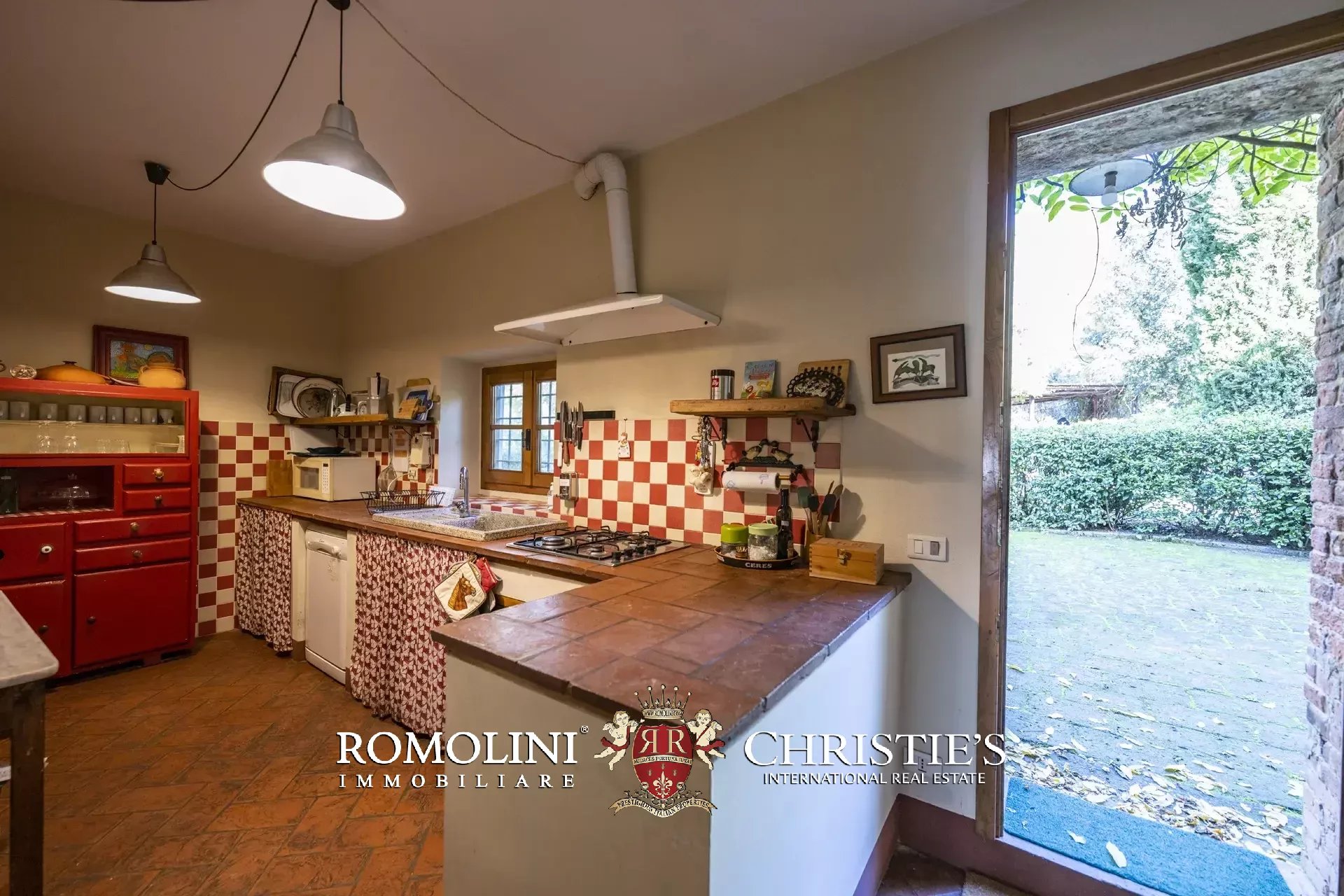 Il casolare principale (440 m²) si articola su due livelli. Il primo piano è attualmente destinato a dimora dei proprietari, che gestiscono direttamente le attività del centro equestre e dell’agriturismo. È accessibile dall’ingresso a piano terra tramite una scala in pietra che conduce a un ampio salone con camino. Su questo livello si trovano inoltre la cucina, cinque camere e quattro bagni.