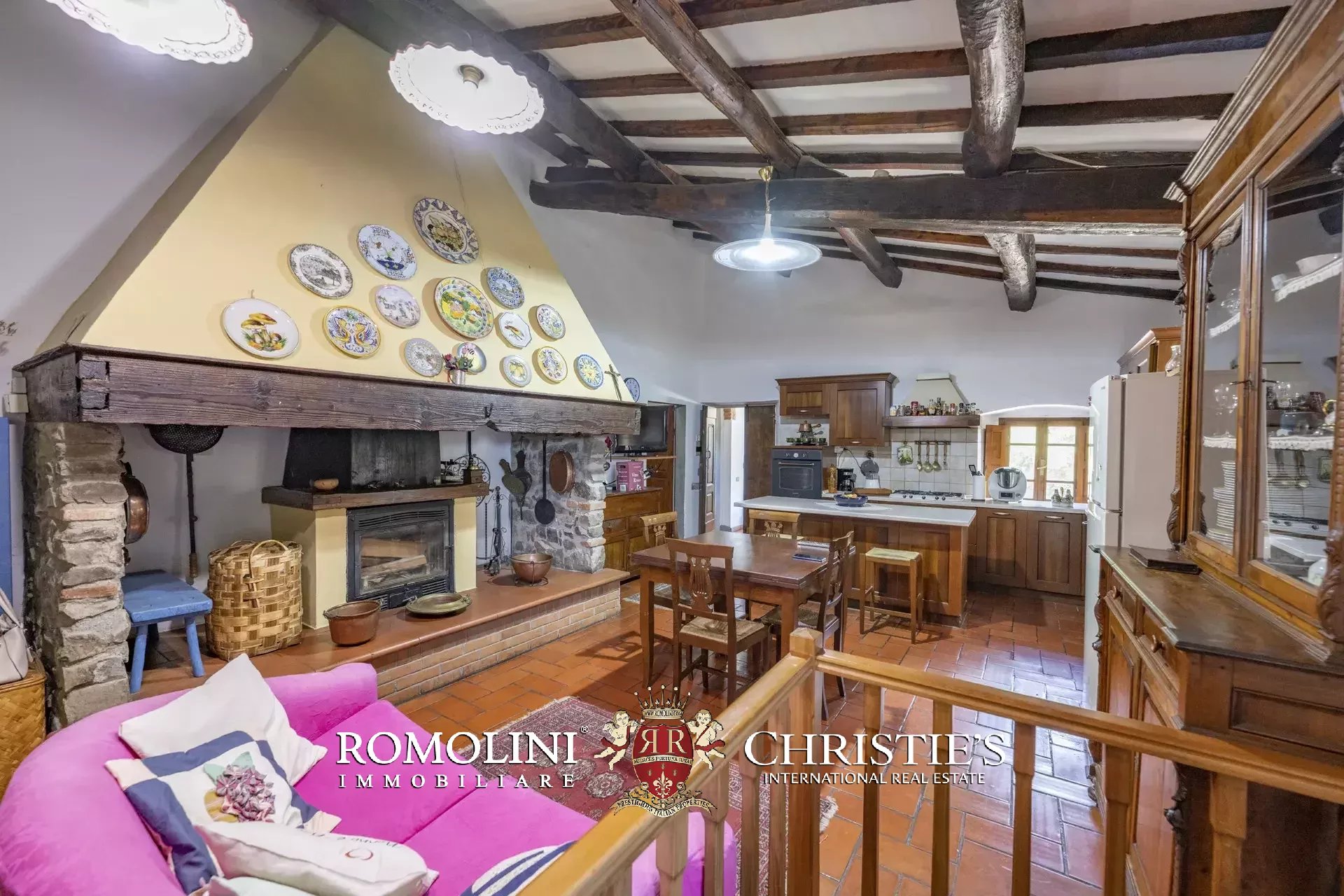 - App. Capolona: soggiorno doppio, sala da pranzo con cucina, due camere e tre bagni;