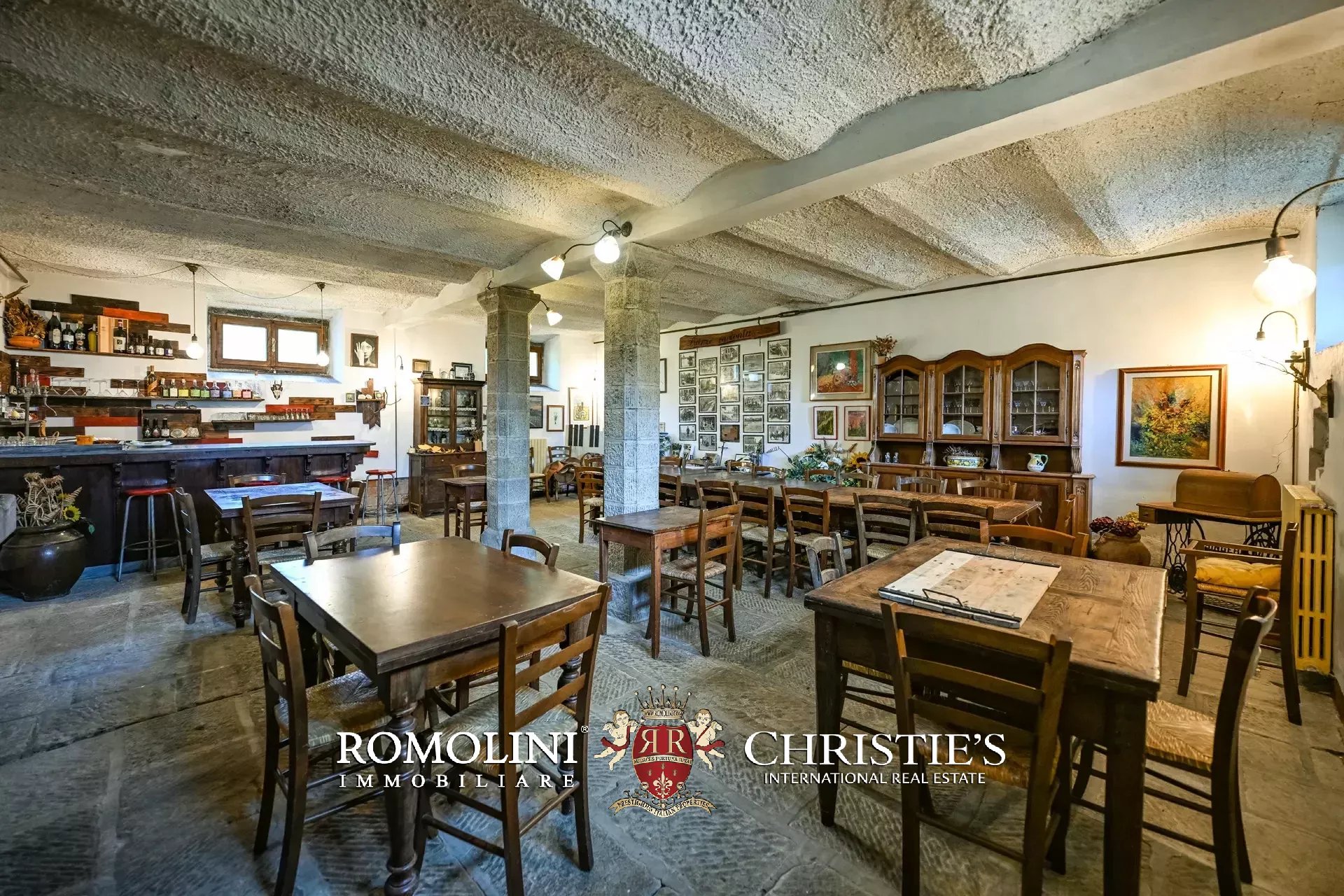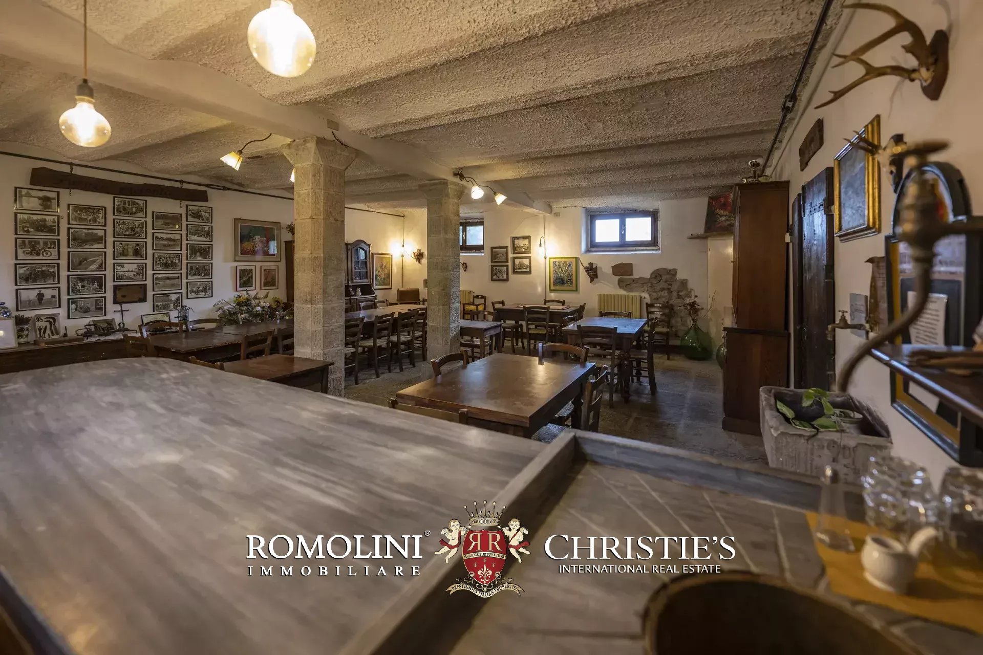 Oltre a cinque appartamenti, sono presenti uno spazioso ingresso con reception dove il forno a legna originale dell’epoca di costruzione è ancora funzionante, un ufficio, la sala ristorante, la cucina professionale, un magazzino e un bagno di servizio.