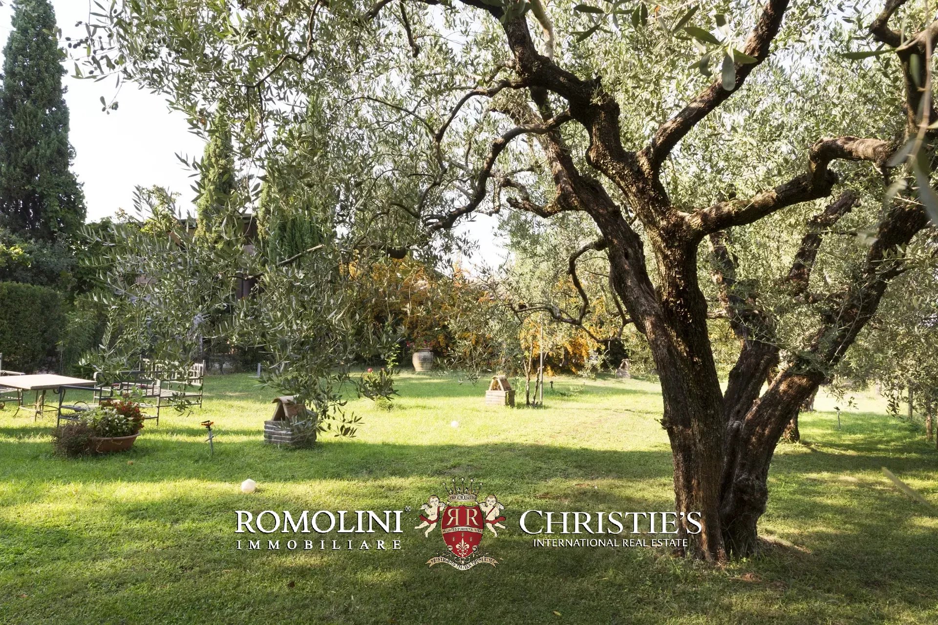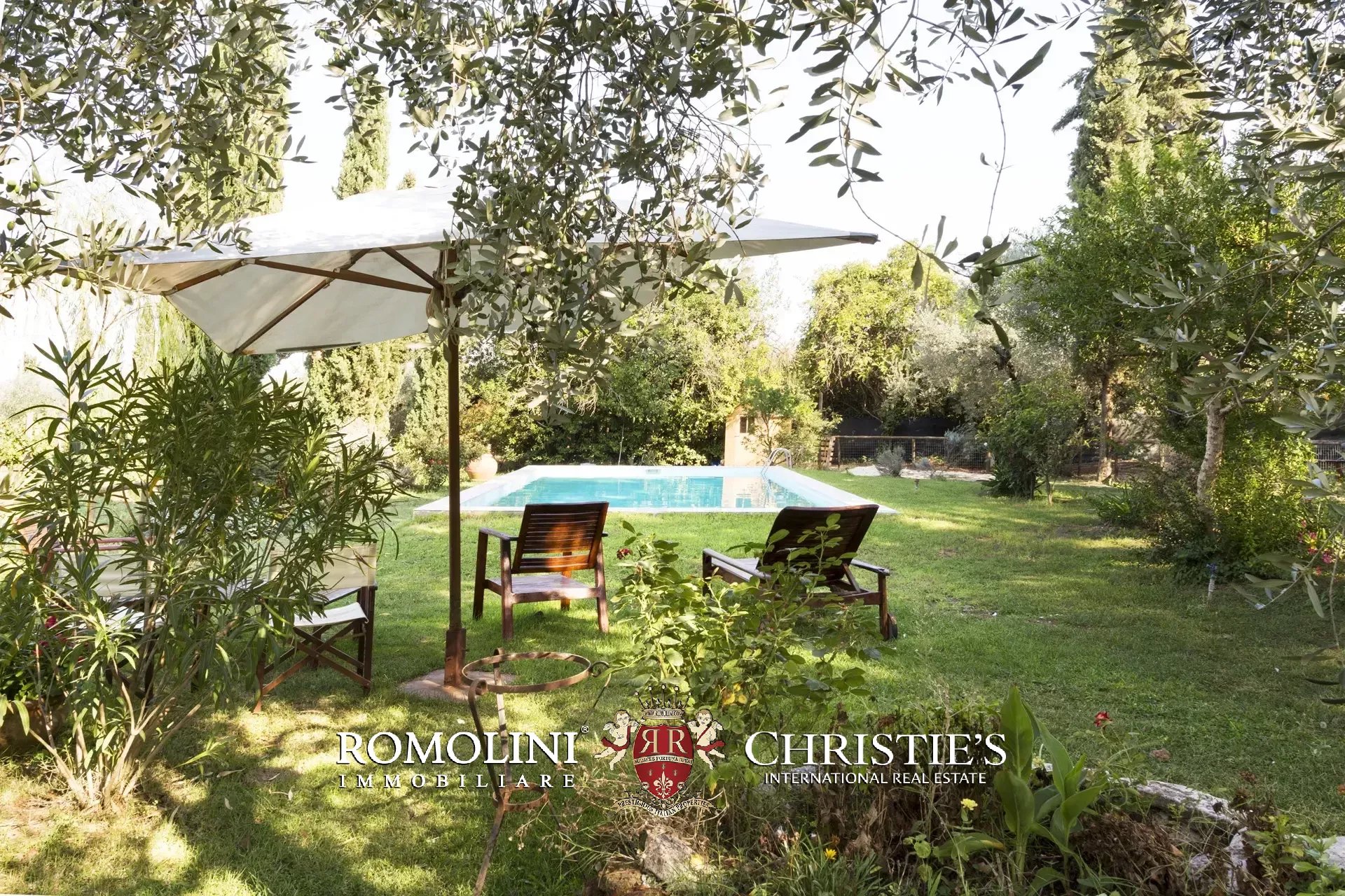 Nel giardino della casa (circa 1.100 m²), punteggiato da alberi ombreggianti, trova posto anche la piscina 10 × 5 m, uno spazio molto adatto anche per eventi all’aperto e degustazioni.