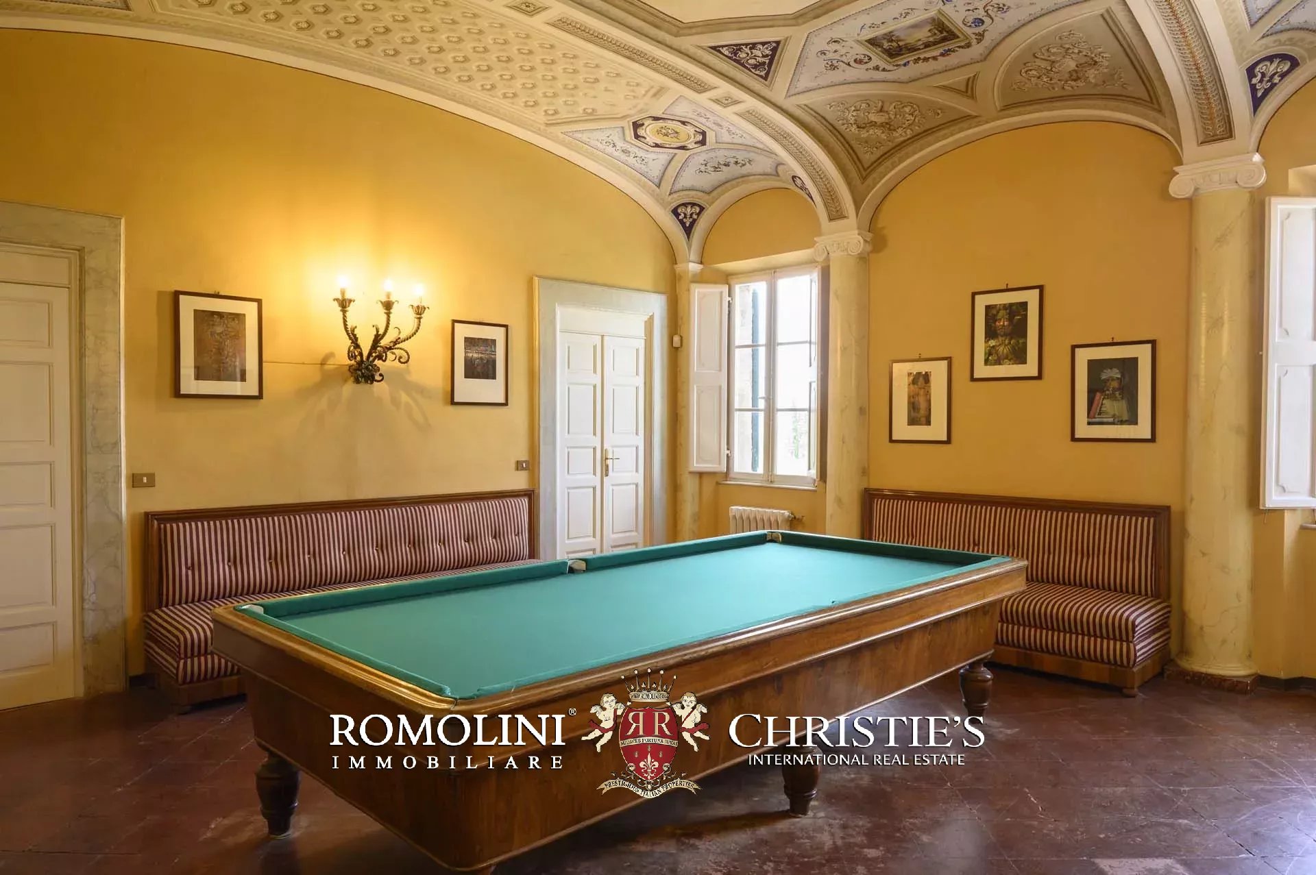 - Piano terra: grande cucina con camino e zona pranzo, sala da pranzo formale con camino originale, vari soggiorno, seconda sala da pranzo arredata con pezzi appartenuti al tenore lirico Enrico Caruso, ufficio, bagno di servizio e cappella gentilizia privata in stile barocco con altare originale e organo di inizio Novecento;