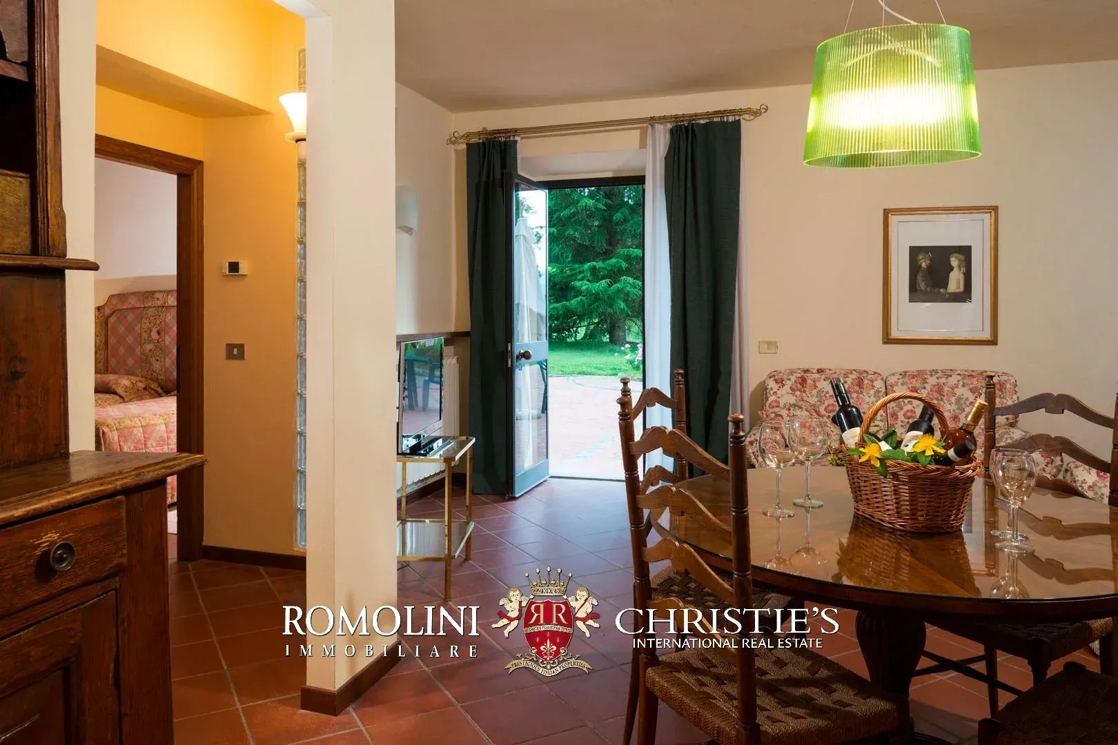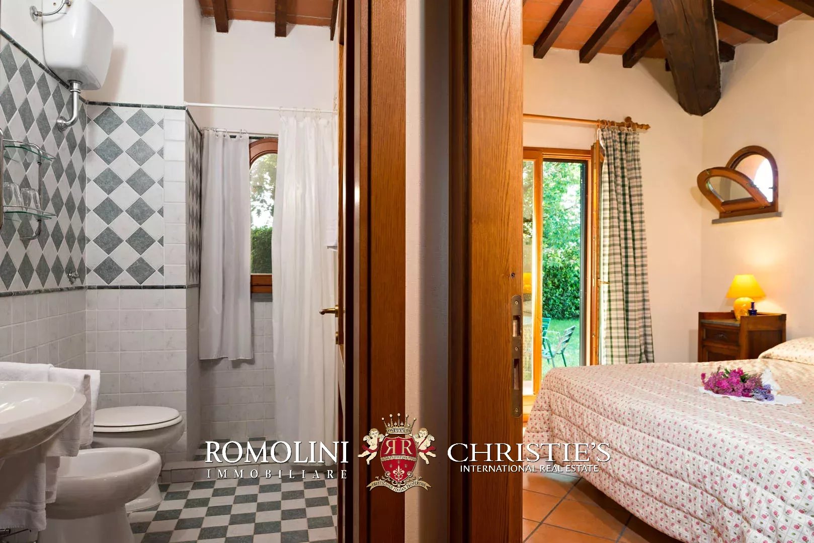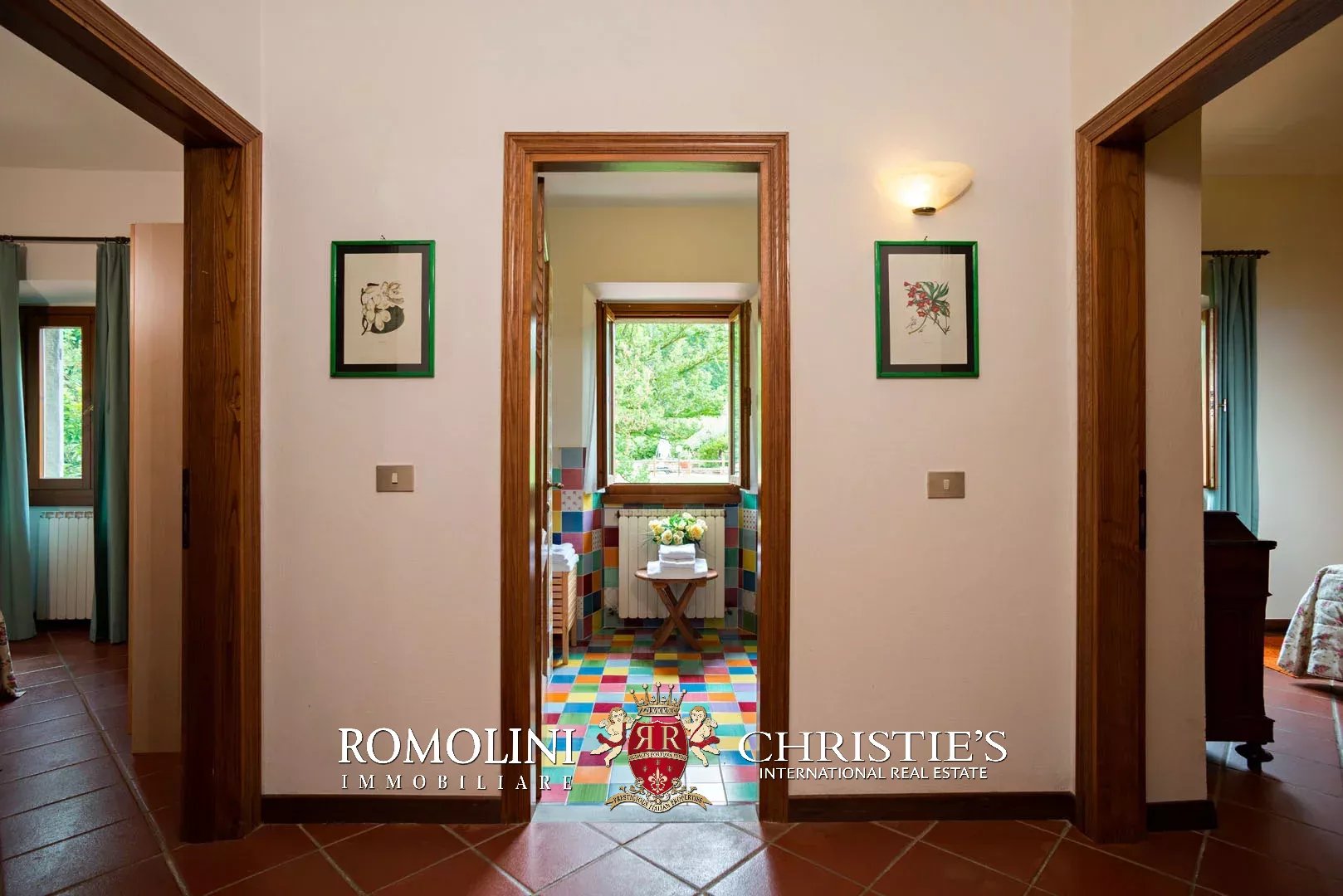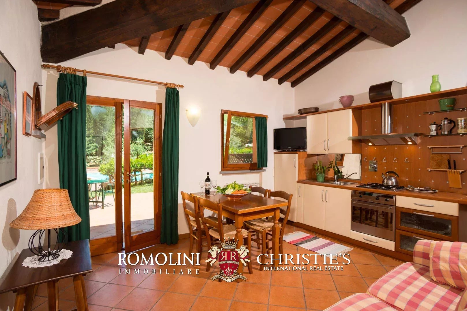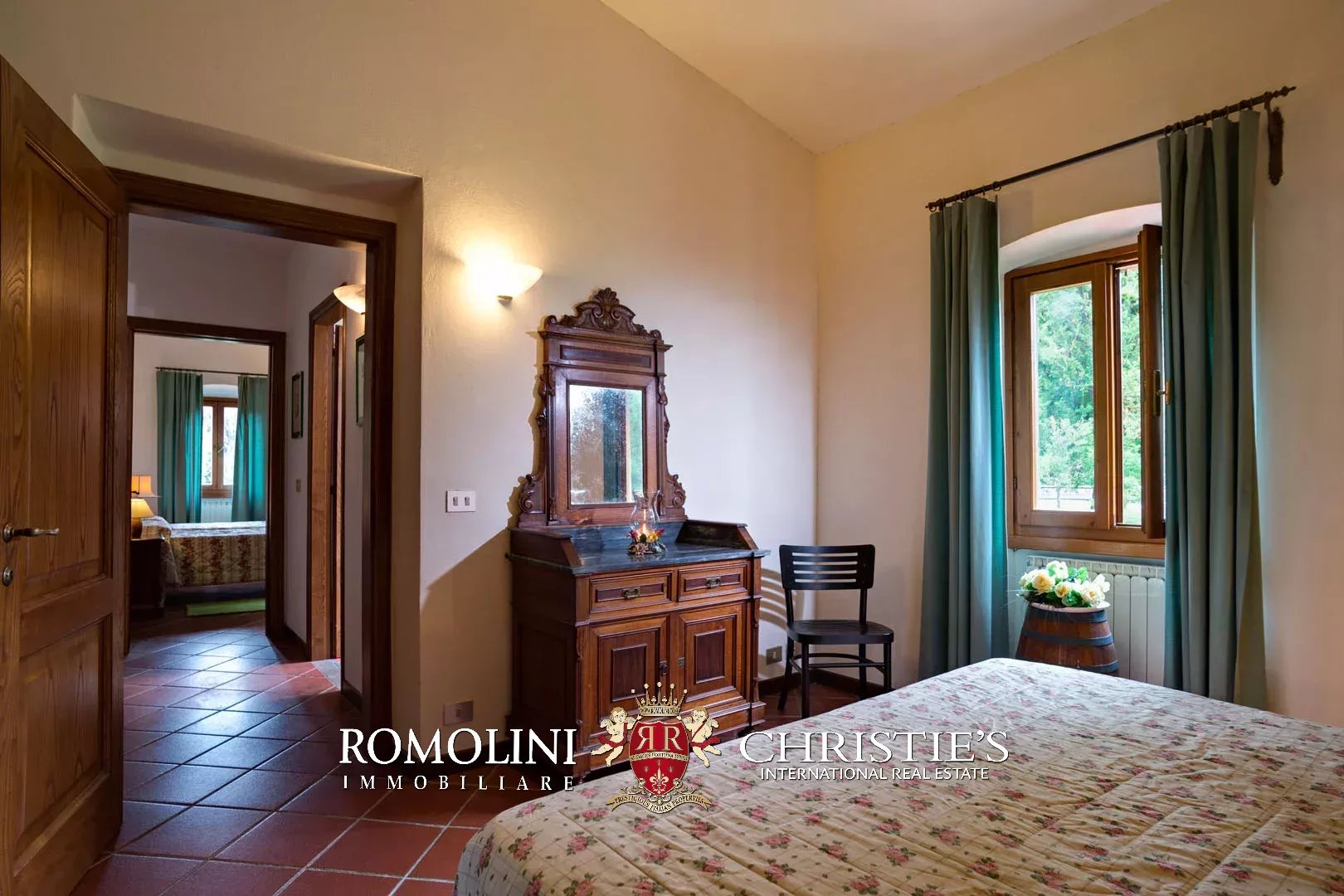 Cuore della proprietà è senza dubbio la villa settecentesca (644 mq, 16 camere e 15 bagni), divisa in otto unità immobiliari su tre piani. Come tutti i classici edifici storici, la struttura portante è realizzata in pietra e muratura, mentre i tetti presentano una struttura in legno rivestita in laterizio. Le finiture sono tradizionali con pavimenti in cotto e ceramica, serramenti in legno e scale in pietra. L’immobile è stato ristrutturato recentemente e si presenta pertanto in buone condizioni.