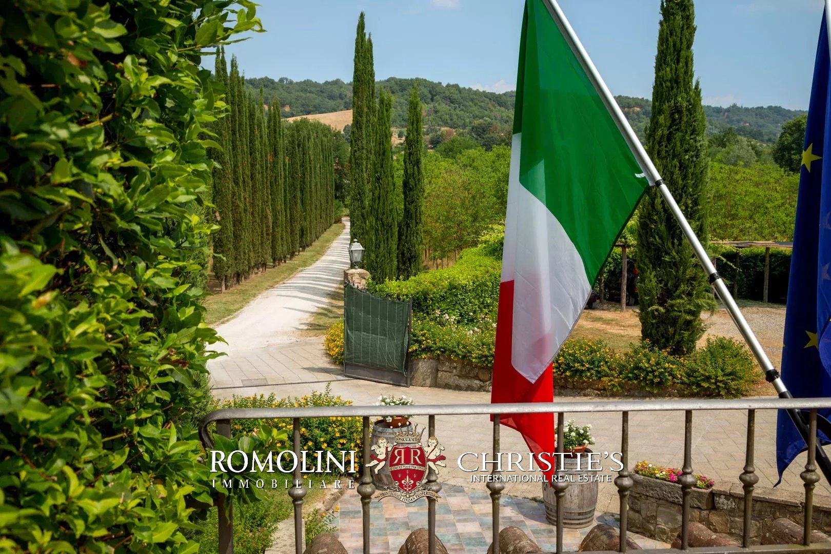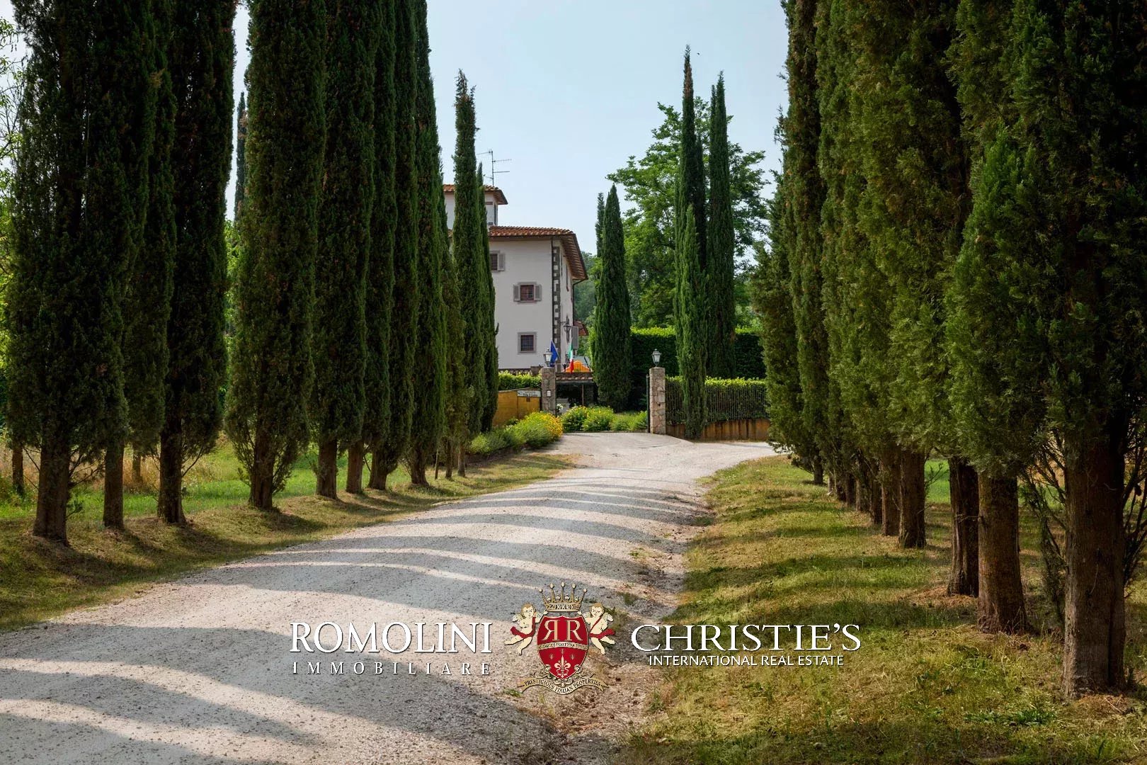 L’accesso alla proprietà è costituito da un caratteristico viale alberato con cipressi.