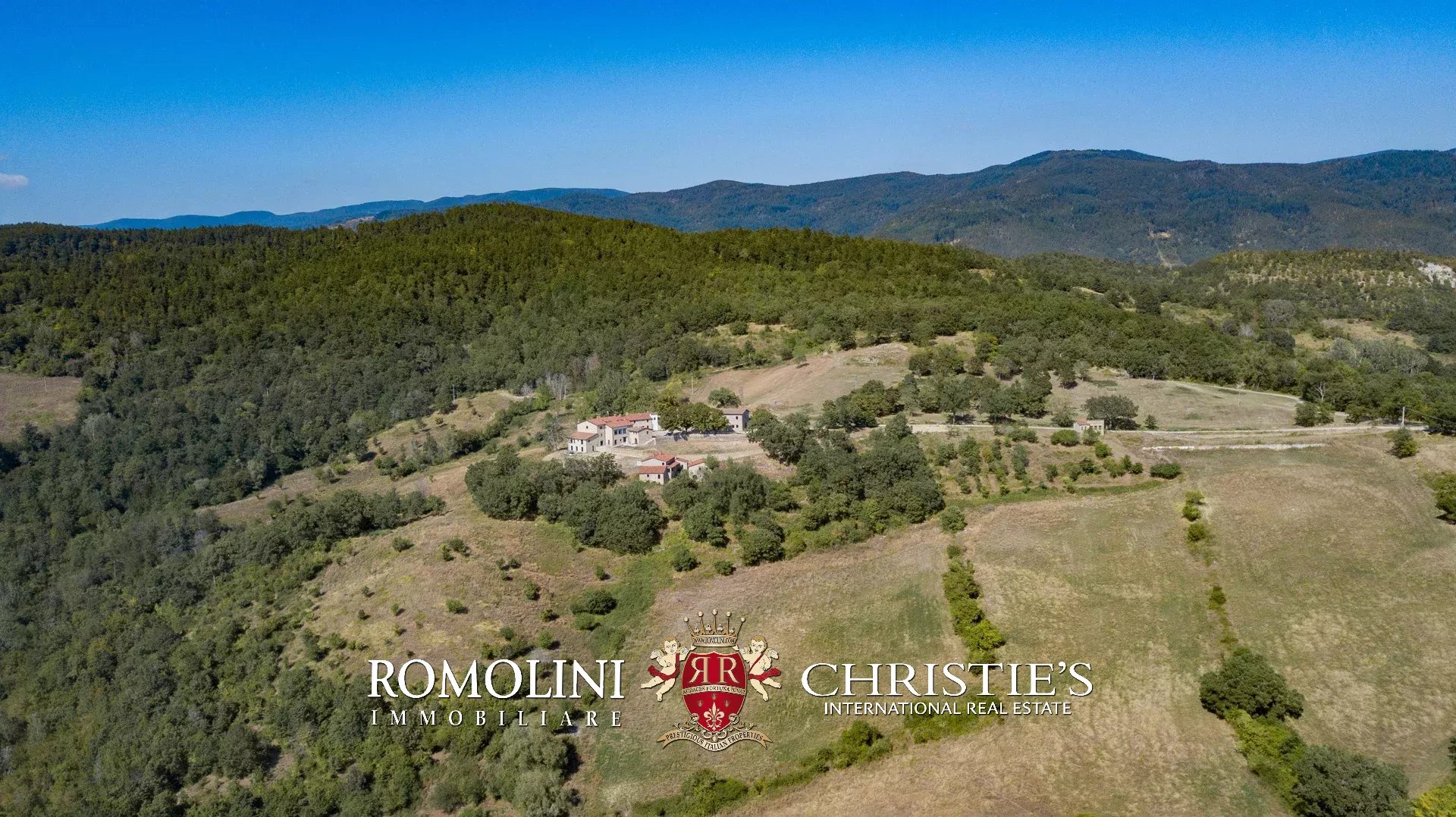 La proprietà copre nella sua interezza 66,1 ettari, disposti sulle verdi colline del Casentino. Attorno agli edifici è stato ricavato un giardino di circa 8.000 m² delimitato da terrazzamenti in pietra che permetterebbero di creare facilmente anche un parcheggio per eventuali ospiti.