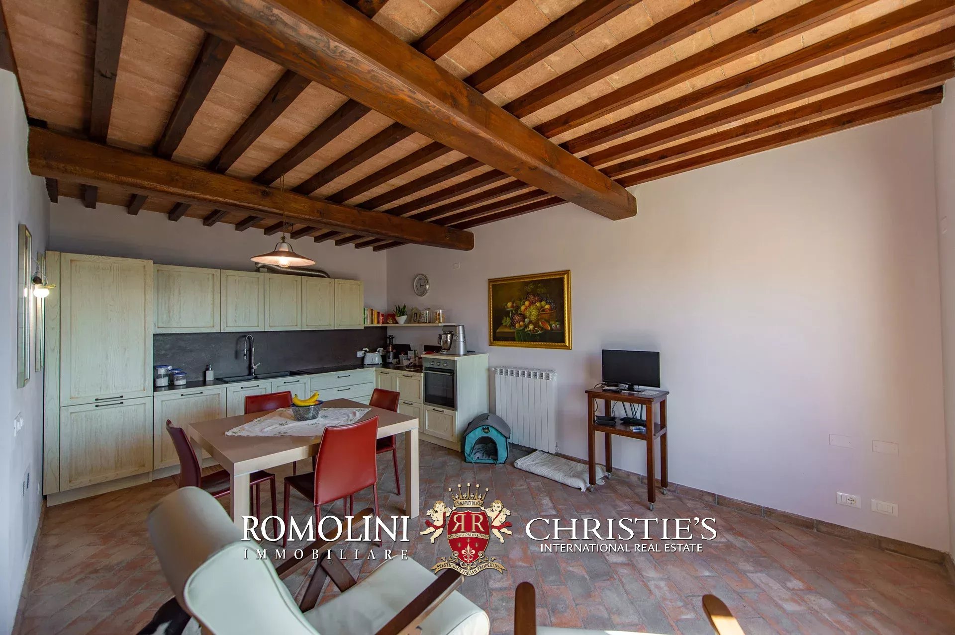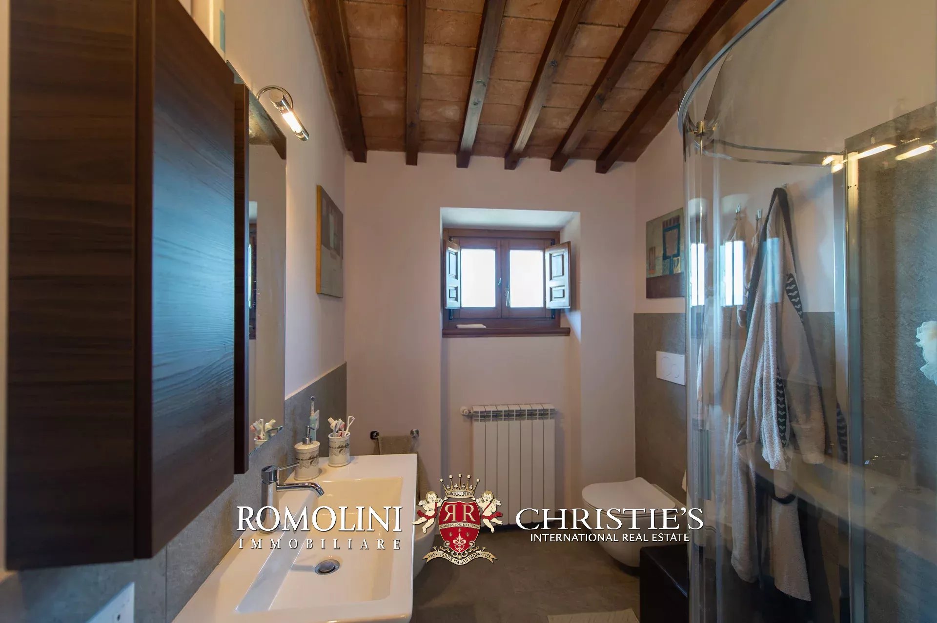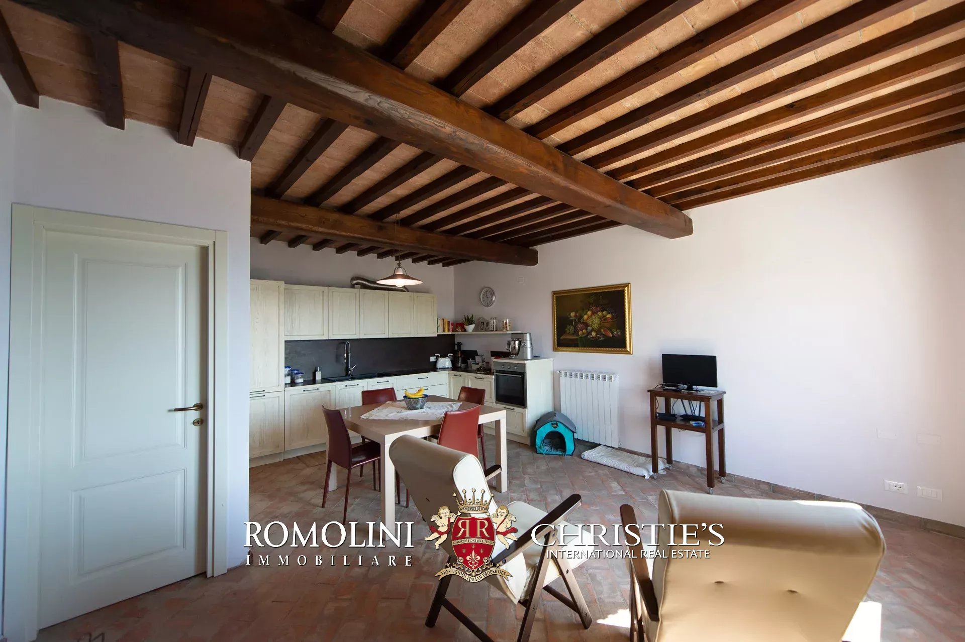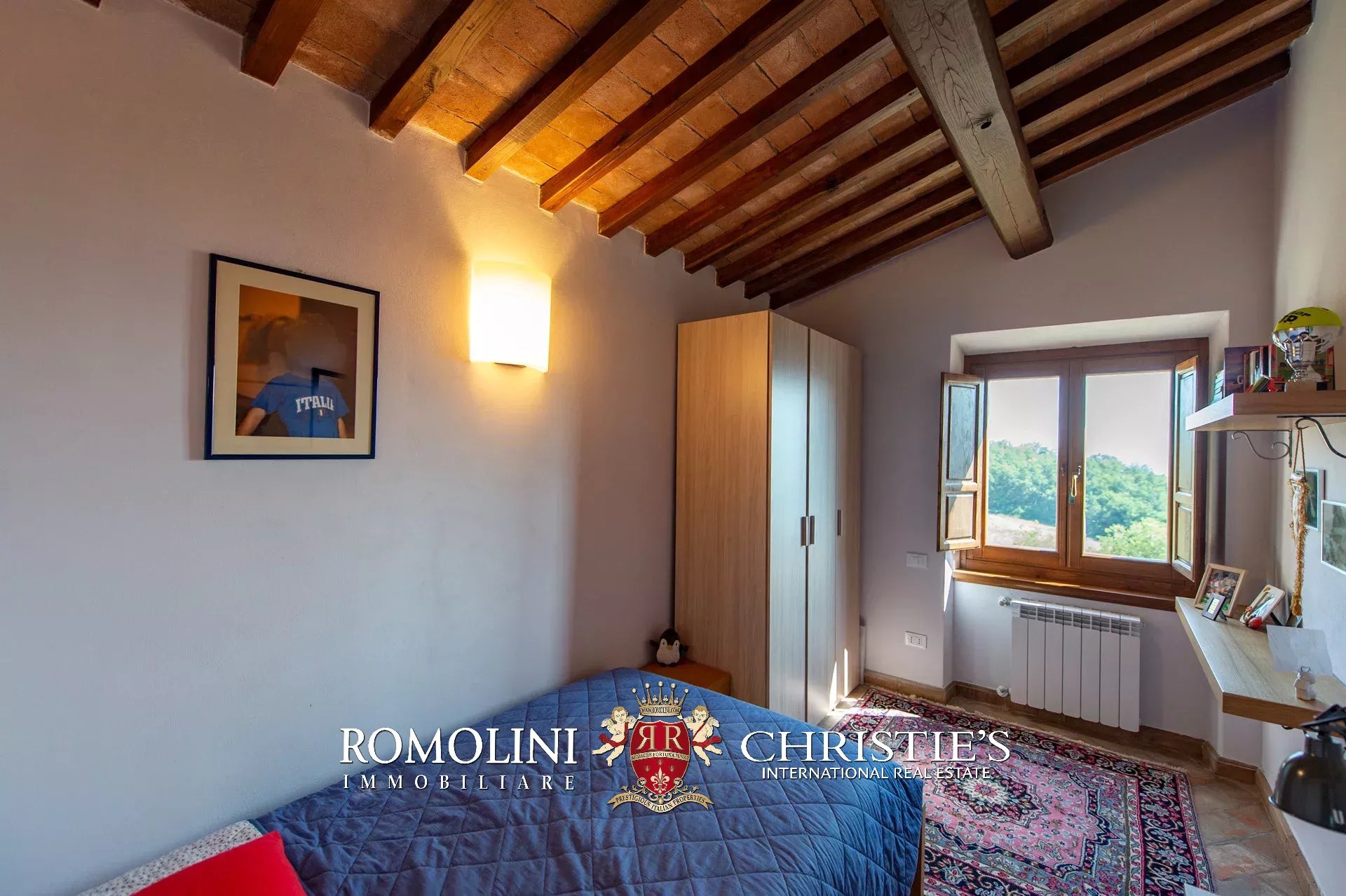 L’unico edificio ristrutturato è l’abitazione dei proprietari (92 m²) che si struttura su due piani. Al livello inferiore è stata creata una spaziosa zona giorno con cucina e dispensa nel sottoscala, mentre al livello superiore si trova la zona notte composta di due camere e bagno. L’immobile è un tipico casale toscano con muri in pietra, travi in legno e pavimenti in cotto.