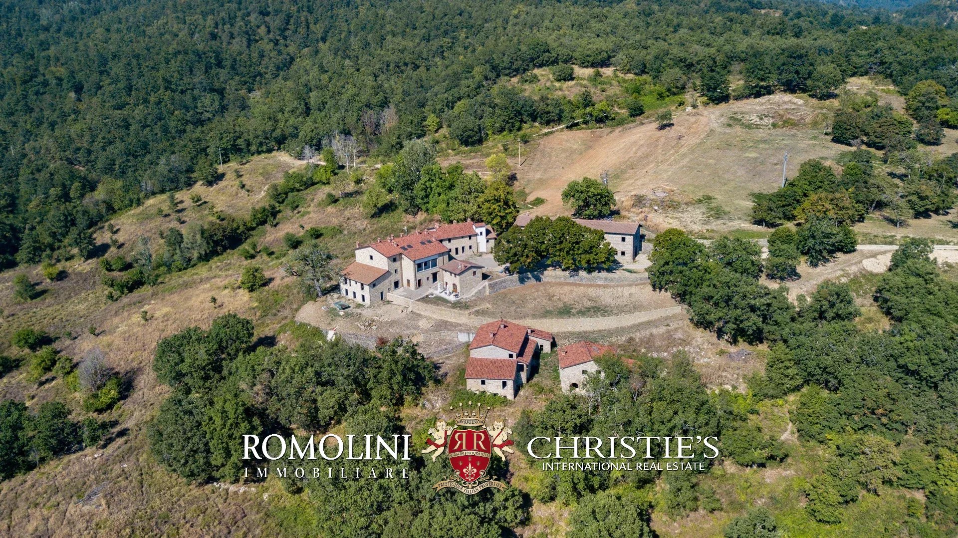 Sulle colline del Casentino, a pochi chilometri da Poppi, borgo rurale da ristrutturare in vendita. La proprietà (oltre 4.400 m²) è stata interamente consolidata a livello strutturale e necessita solo di interventi di finitura all’interno. La casetta dei proprietari è invece già abitabile. L’azienda, anche grazie alla presenza di 66,1 ha di terreno agricolo, è molto adatta se si volesse avviare un’attività ricettiva con allevamento di cavalli.