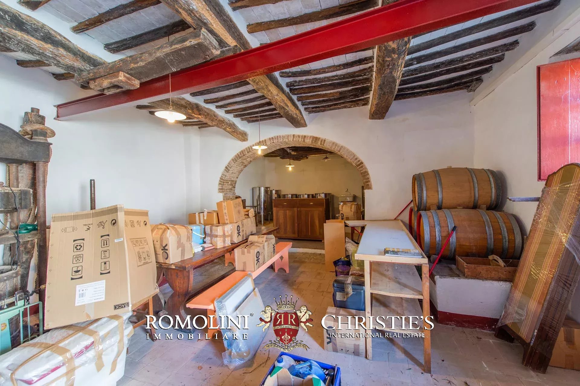 Non lontano dalla villa si trova la vecchia cantina di vinificazione (271 m²) dove venivano un tempo conferite le uve per la lavorazione. L’edificio include vari magazzini, la stanza di imbottigliamento e un’officine per le riparazioni, il tutto posizionato su piani sfalsati con accesso diretto dall’esterno. Data la presenza di numerosi ulivi nella proprietà, si potrebbe anche riconvertire parte di questo edificio in un frantoio privato in modo da poter lavorare l’olio direttamente in azienda.