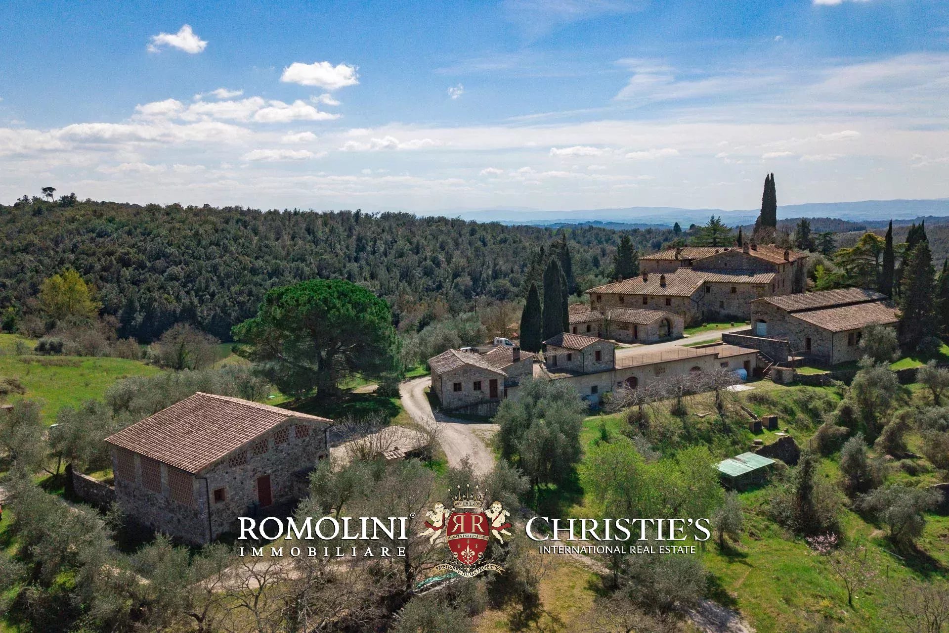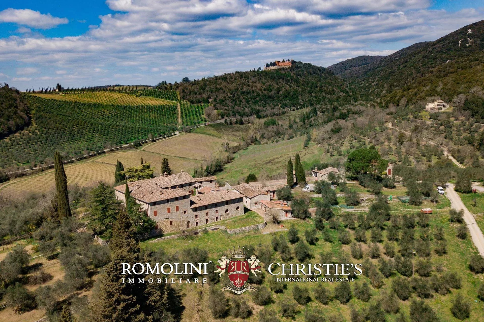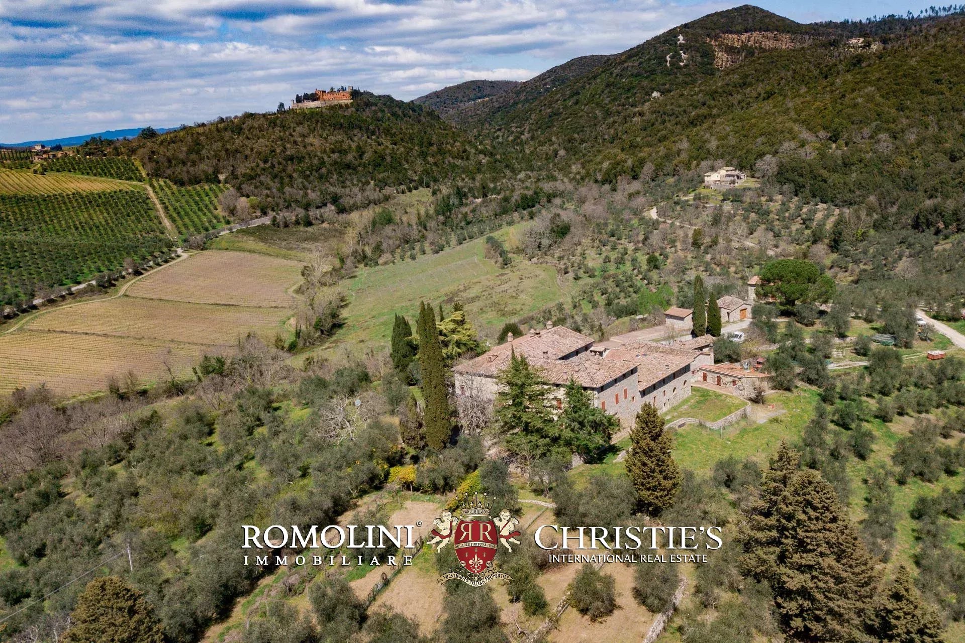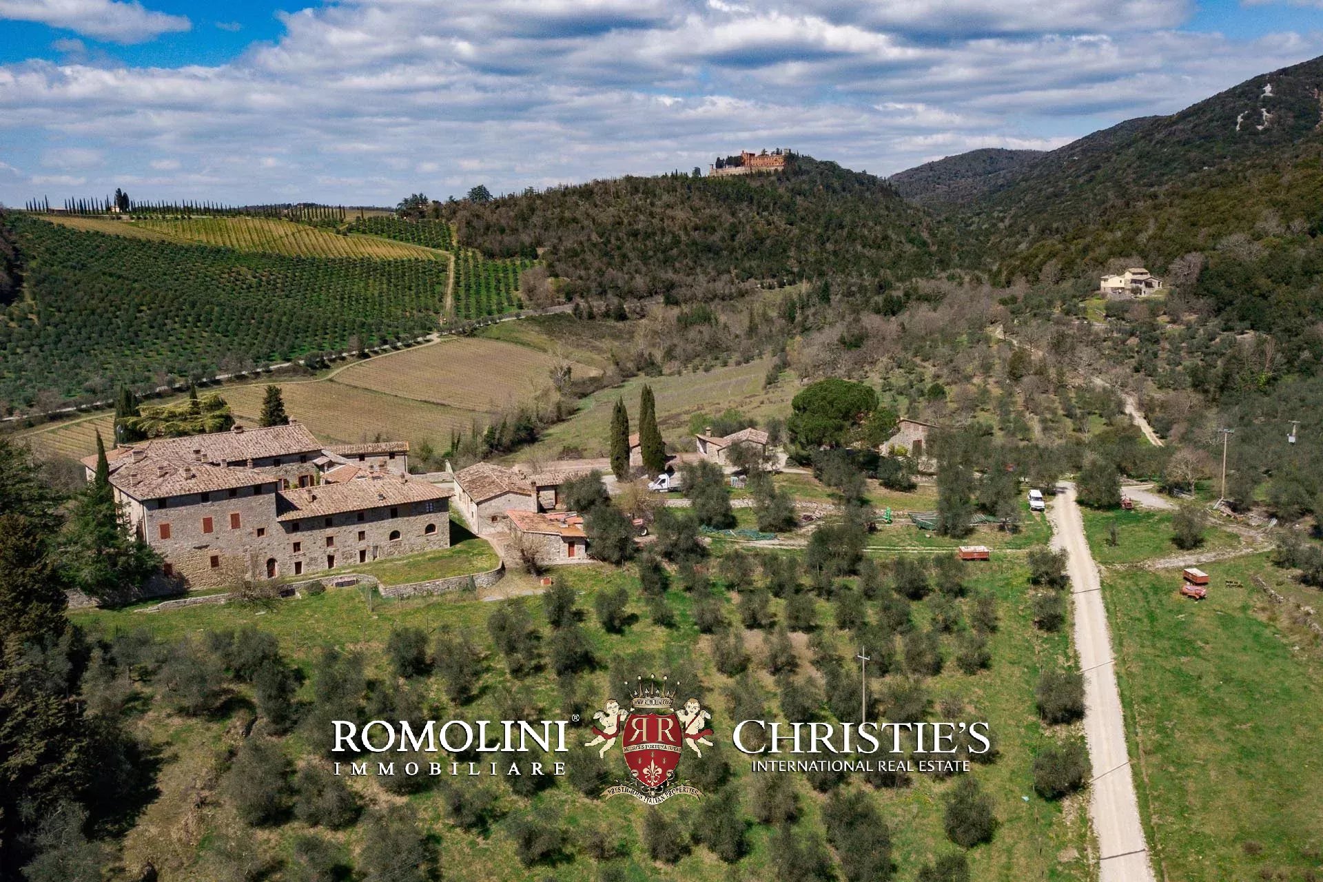 Sulle colline del Chianti Classico, non lontano da Gaiole e dal Castello di Brolio, tenuta di 66,4 ettari con borgo rurale e agriturismo. Gli edifici della tenuta (oltre 2.100 m²) ospitano attualmente nove appartamenti, la vecchia cantina di vinificazione, un ristorante e uno spazioso centro yoga. I terreni ospitano invece un piccolo vigneto (circa 1,1 ha con possibilità di piantare fino a 6,0 ha) e un oliveto (circa 2.200 piante), oltre a boschi e seminativi.