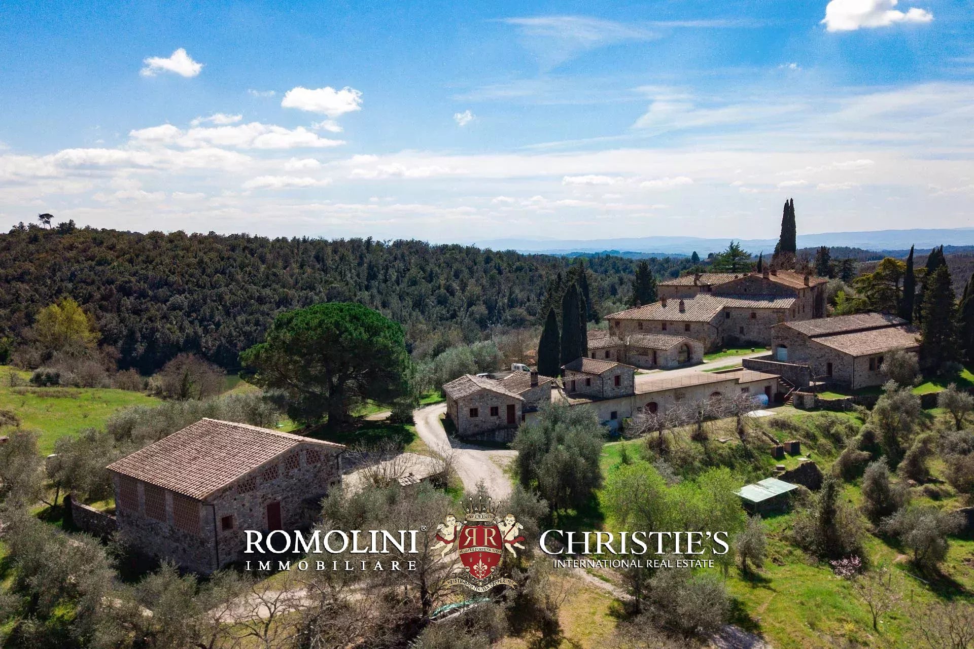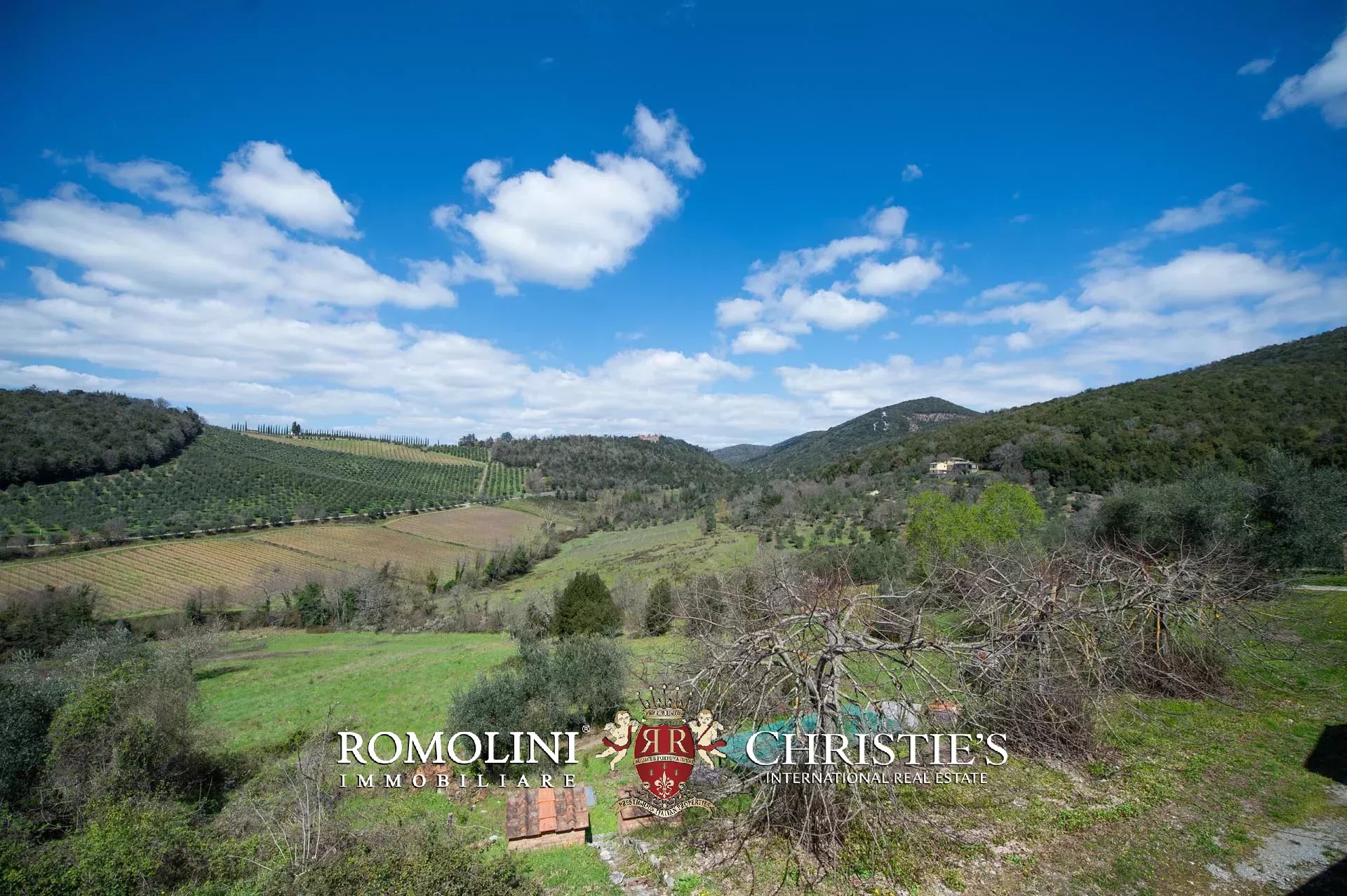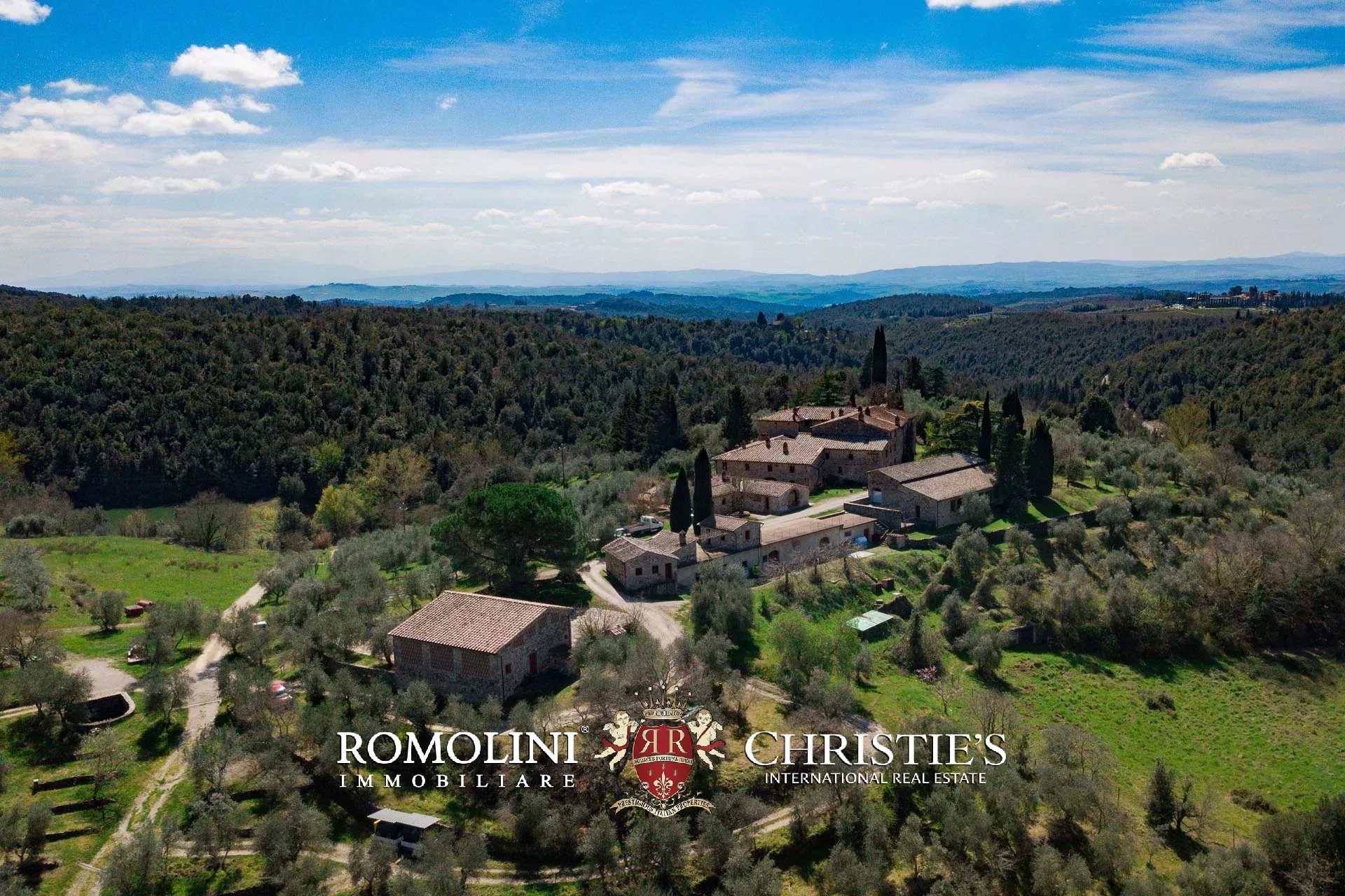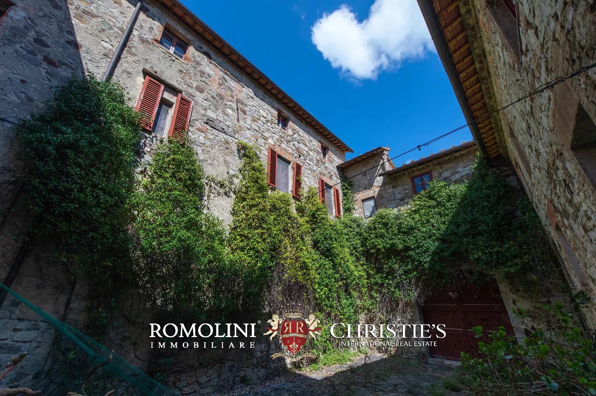 Sulle colline del Chianti Classico, non lontano da Gaiole e dal Castello di Brolio, tenuta di 66,4 ettari con borgo rurale e agriturismo. Gli edifici della tenuta (oltre 2.100 m²) ospitano attualmente nove appartamenti, la vecchia cantina di vinificazione, un ristorante e uno spazioso centro yoga. I terreni ospitano invece un piccolo vigneto (circa 1,1 ha con possibilità di piantare fino a 6,0 ha) e un oliveto (circa 2.200 piante), oltre a boschi e seminativi.