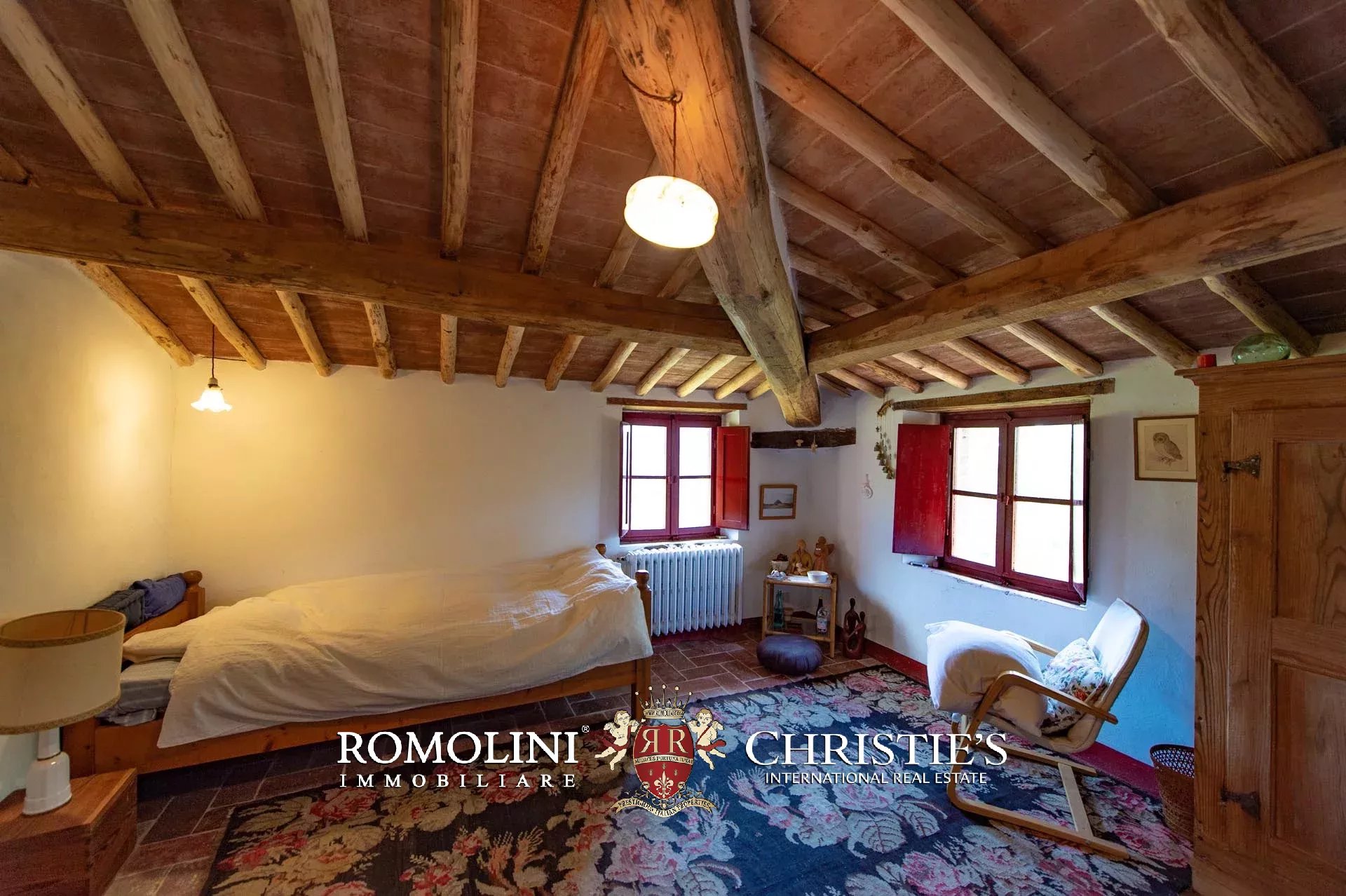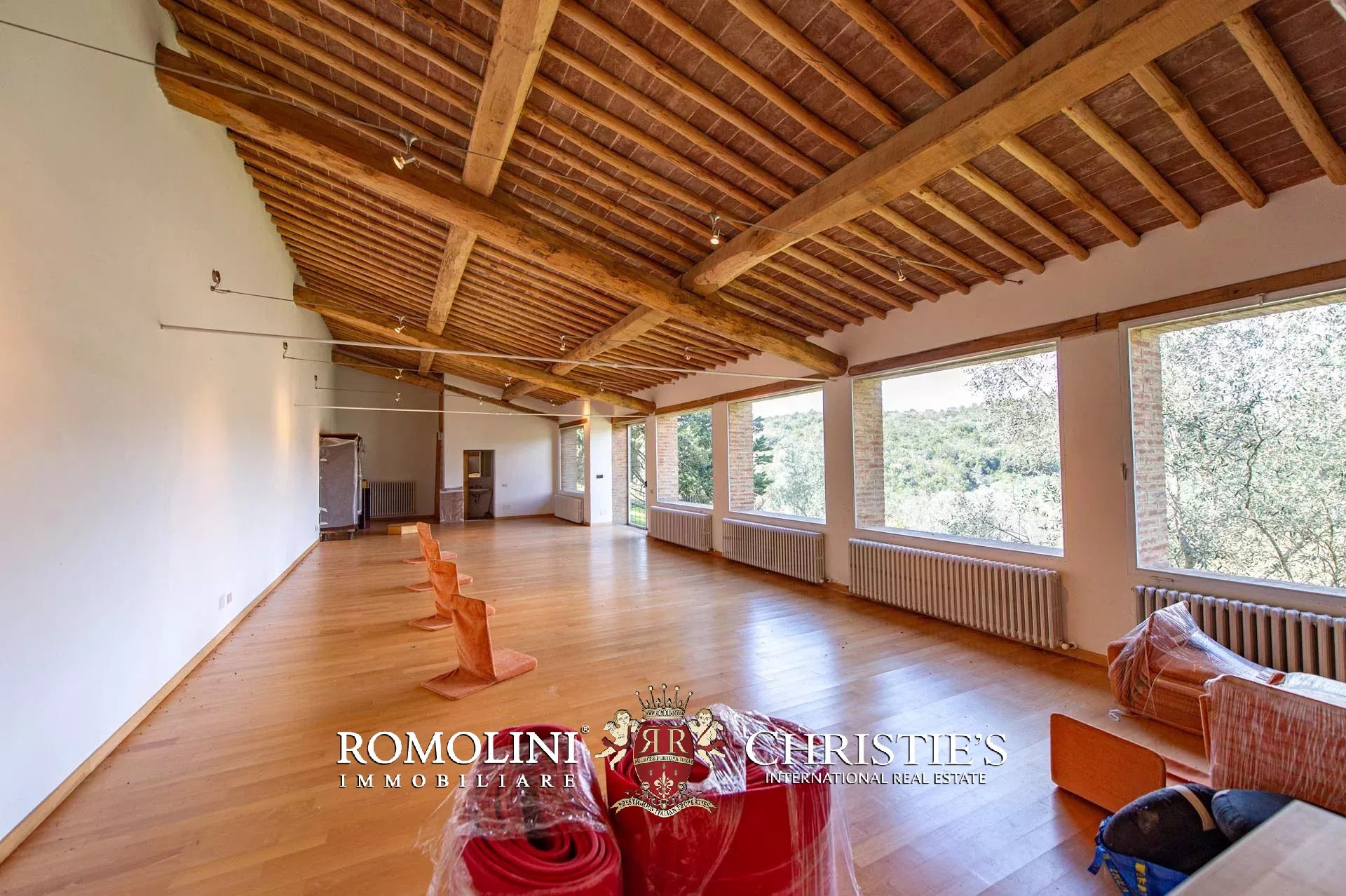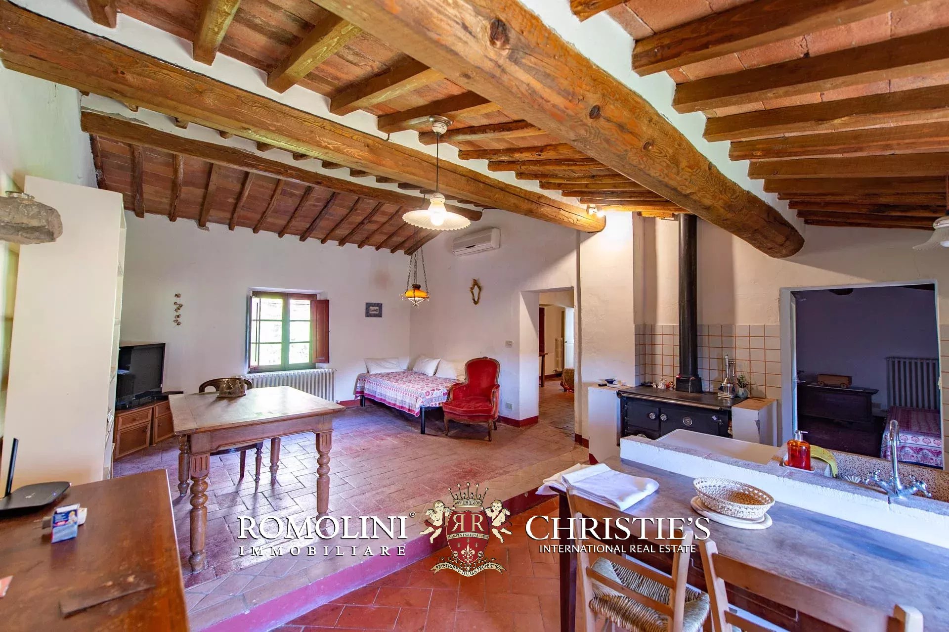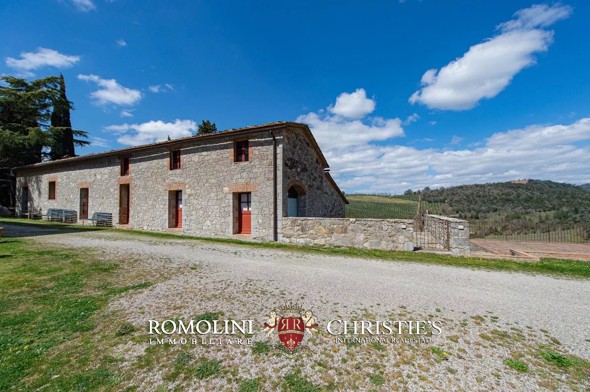 Sulle colline del Chianti Classico, non lontano da Gaiole e dal Castello di Brolio, tenuta di 66,4 ettari con borgo rurale e agriturismo. Gli edifici della tenuta (oltre 2.100 m²) ospitano attualmente nove appartamenti, la vecchia cantina di vinificazione, un ristorante e uno spazioso centro yoga. I terreni ospitano invece un piccolo vigneto (circa 1,1 ha con possibilità di piantare fino a 6,0 ha) e un oliveto (circa 2.200 piante), oltre a boschi e seminativi.