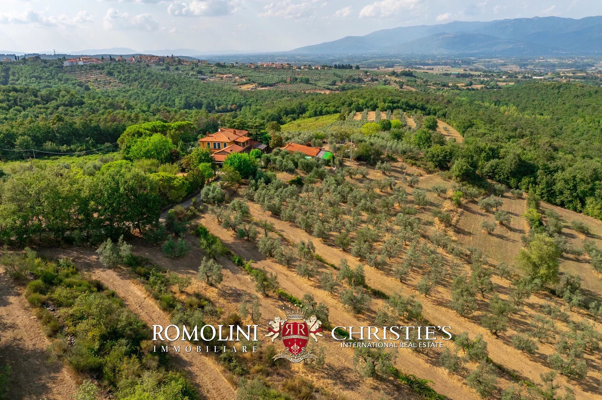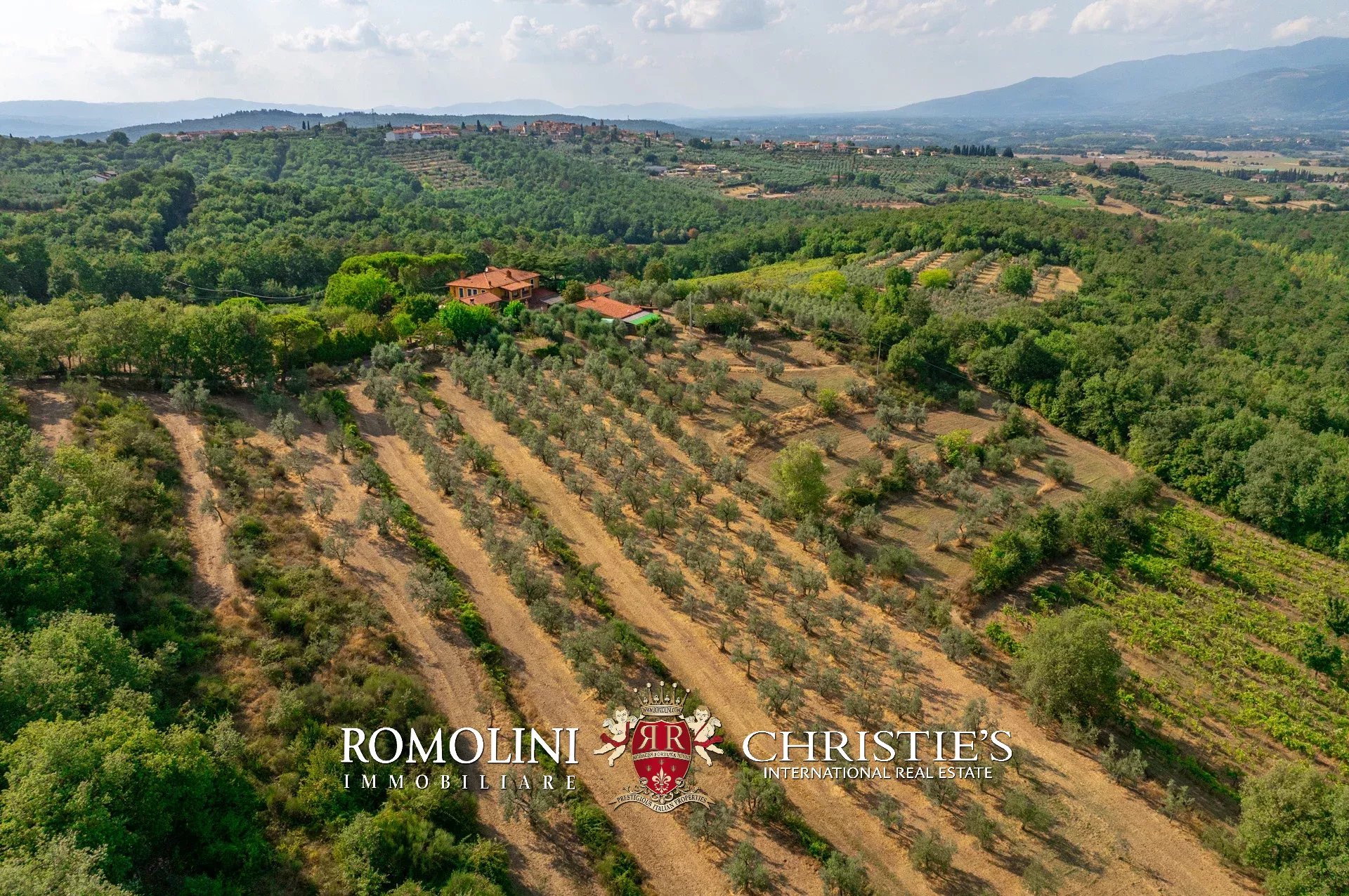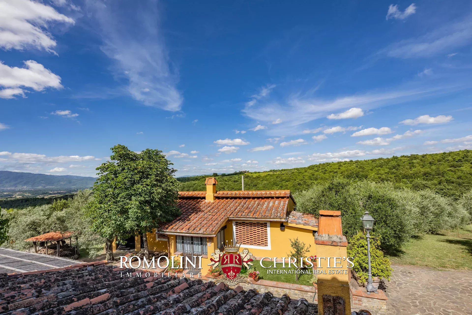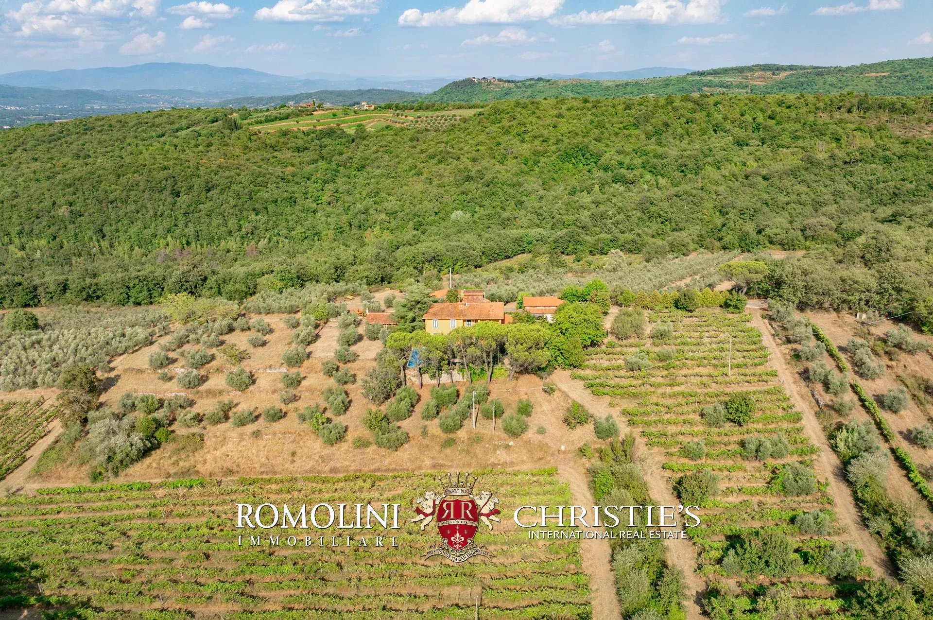 In posizione panoramica sulle colline del Valdarno Aretino, al confine con il Chianti, tenuta di 65,9 ha con borgo rurale, piscina, vigneto e oliveto in vendita. La proprietà (oltre 900 m² in totale) è in buone condizioni e dispone attualmente di 9 camere distribuite tra i vari edifici, molto comode per un’attività ricettiva. La produzione agricola (da riavviare) includeva a suo tempo olio e vino.