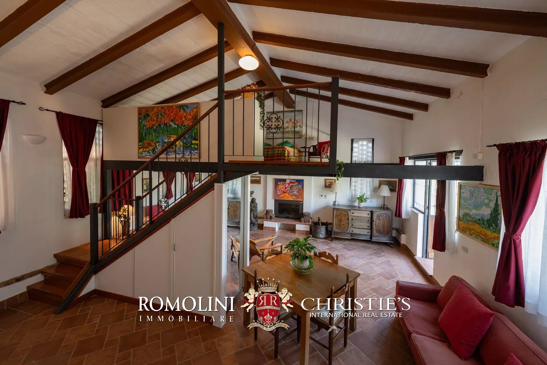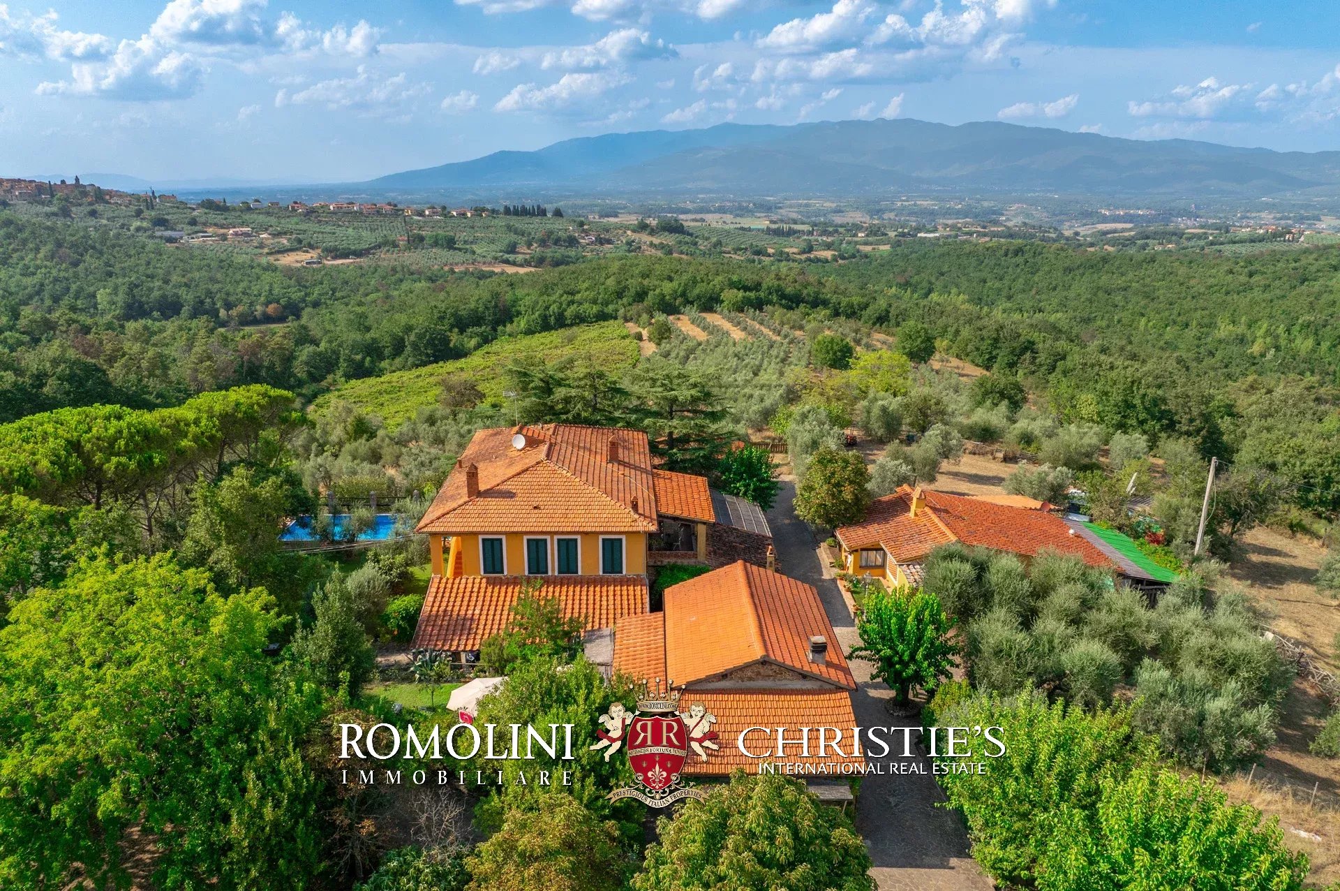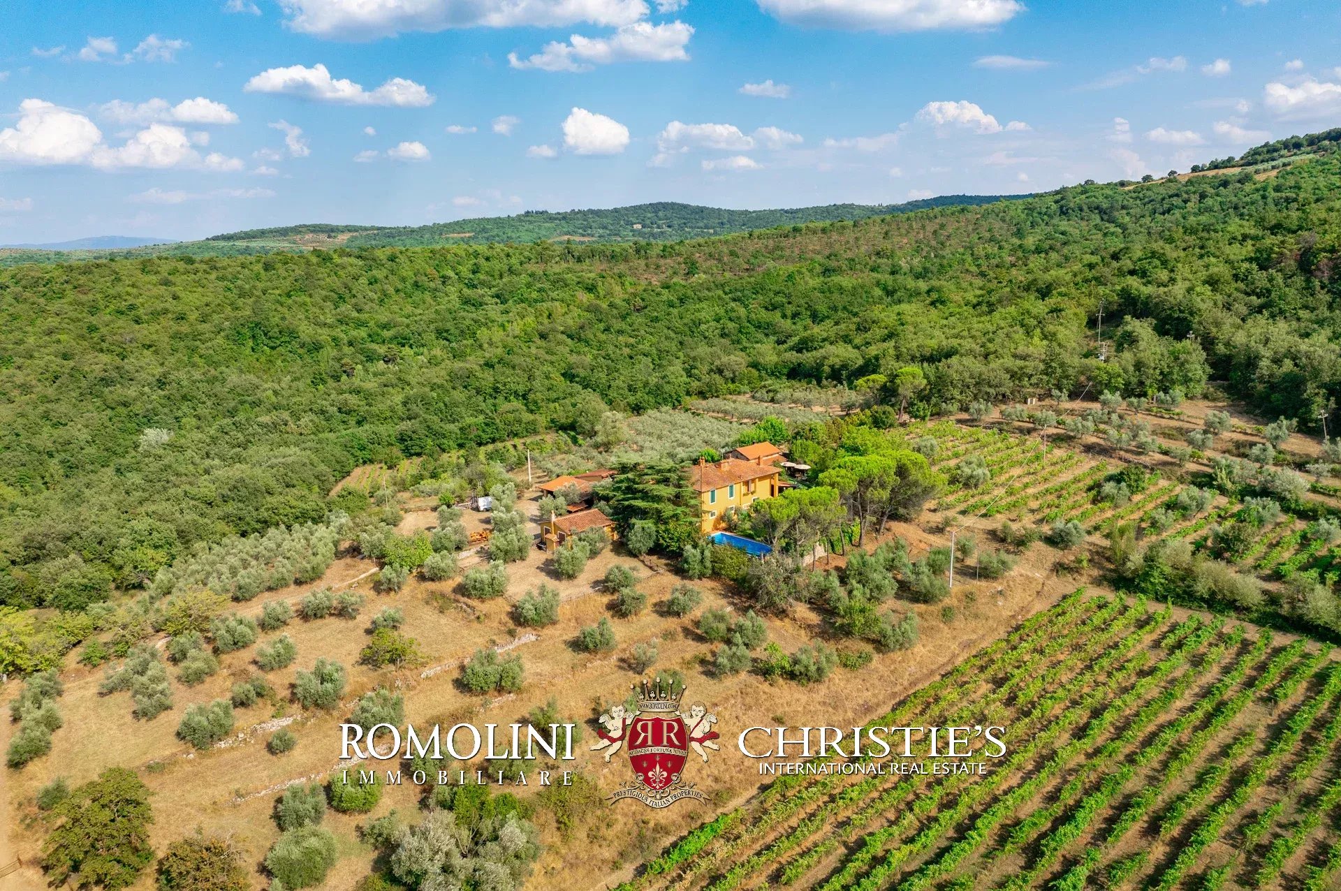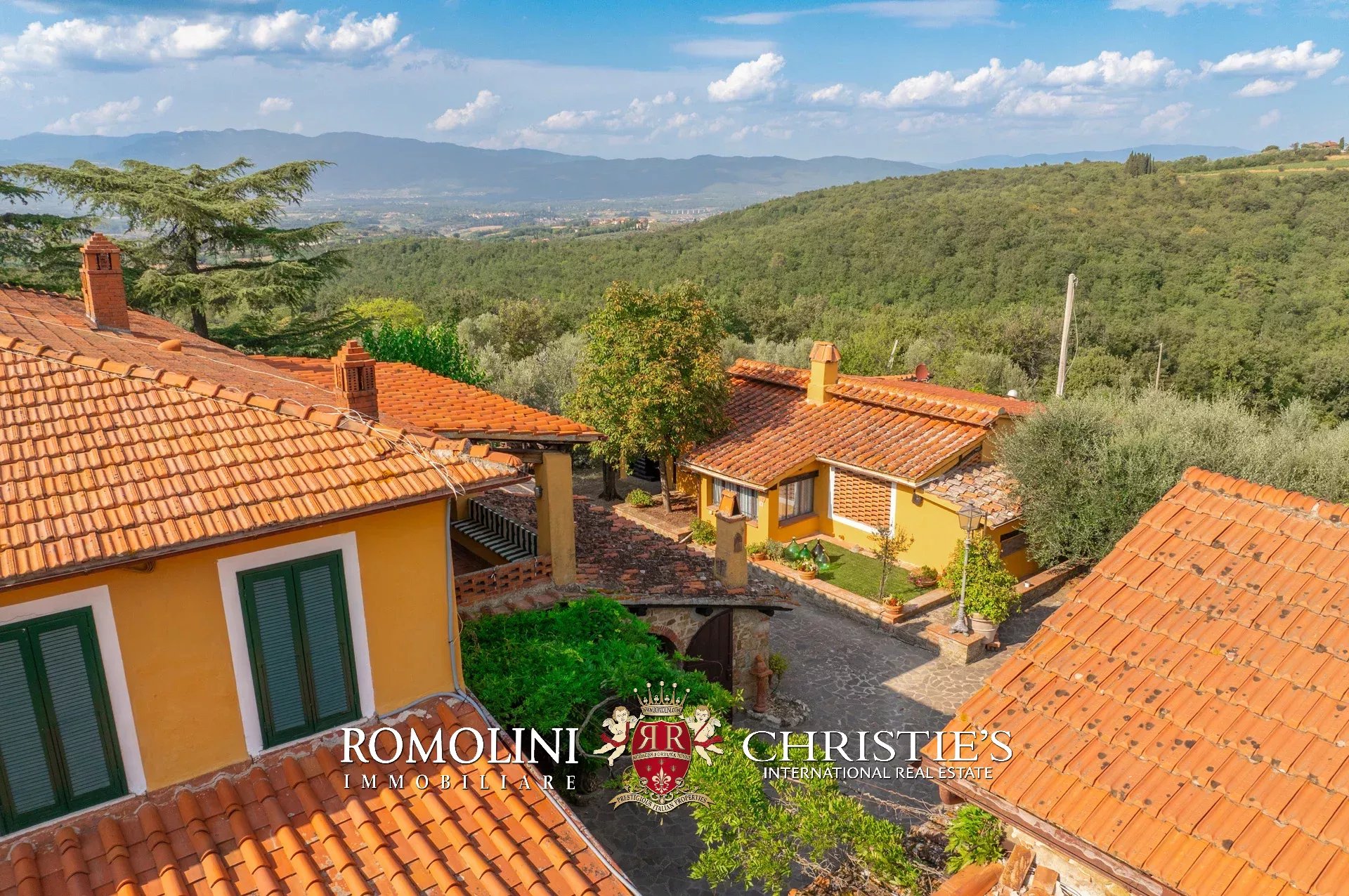 In posizione panoramica sulle colline del Valdarno Aretino, al confine con il Chianti, tenuta di 65,9 ha con borgo rurale, piscina, vigneto e oliveto in vendita. La proprietà (oltre 900 m² in totale) è in buone condizioni e dispone attualmente di 9 camere distribuite tra i vari edifici, molto comode per un’attività ricettiva. La produzione agricola (da riavviare) includeva a suo tempo olio e vino.