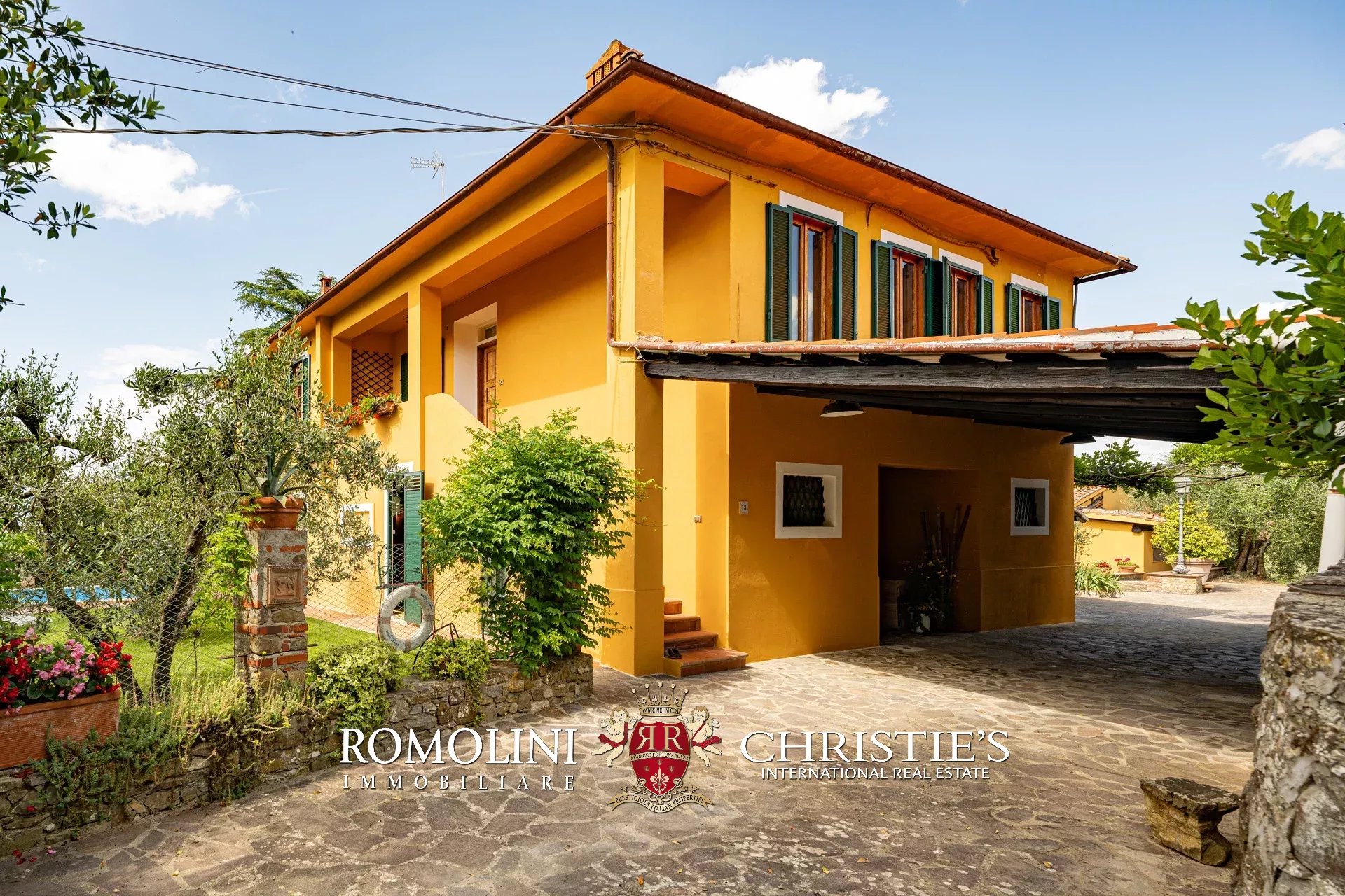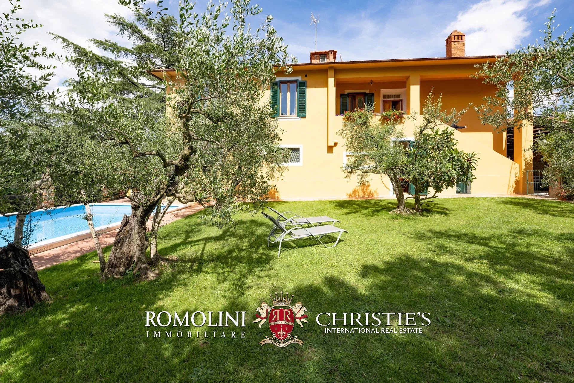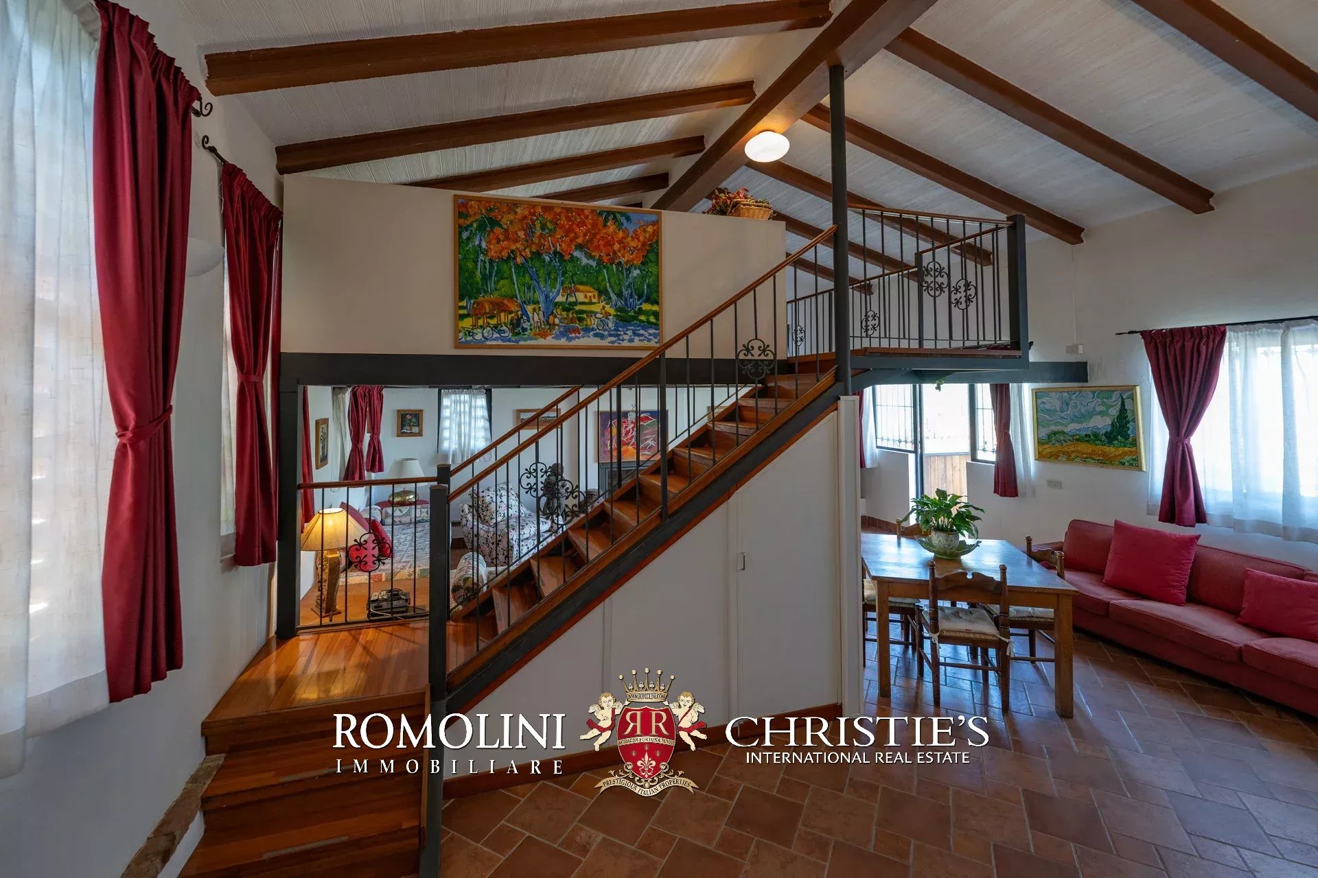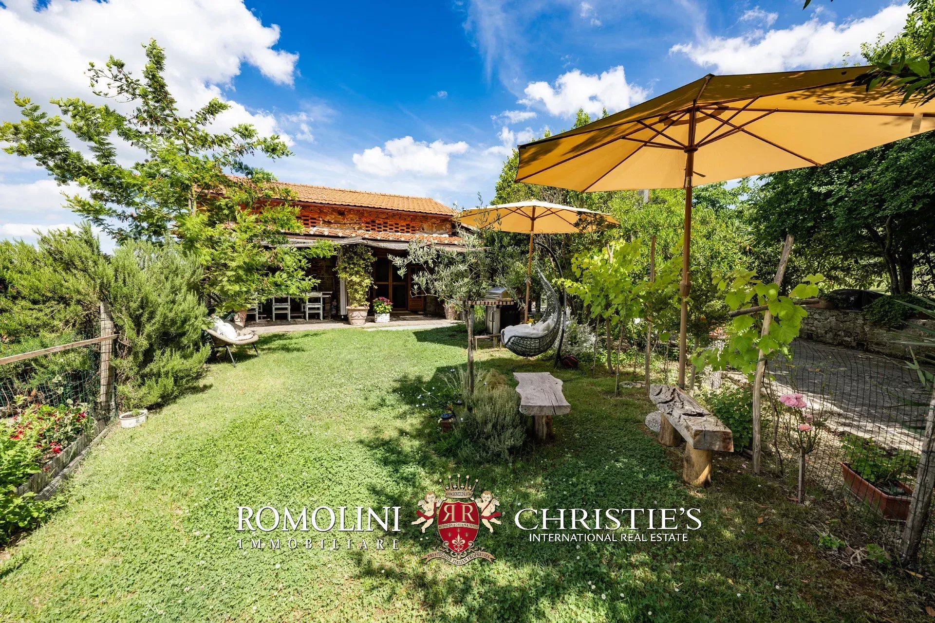 Posta al centro del borgo, la villa è circondata dal giardino (2.200 m²) dove trova posto la piscina 13 × 5 m da cui si ha una splendida vista panoramica. Direttamente dal giardino dove è presente la piscina si accede a un servizio esterno con doccia e locale sauna. Da un loggiato adiacente è stato ricavato un ambiente dedicato al fitness.