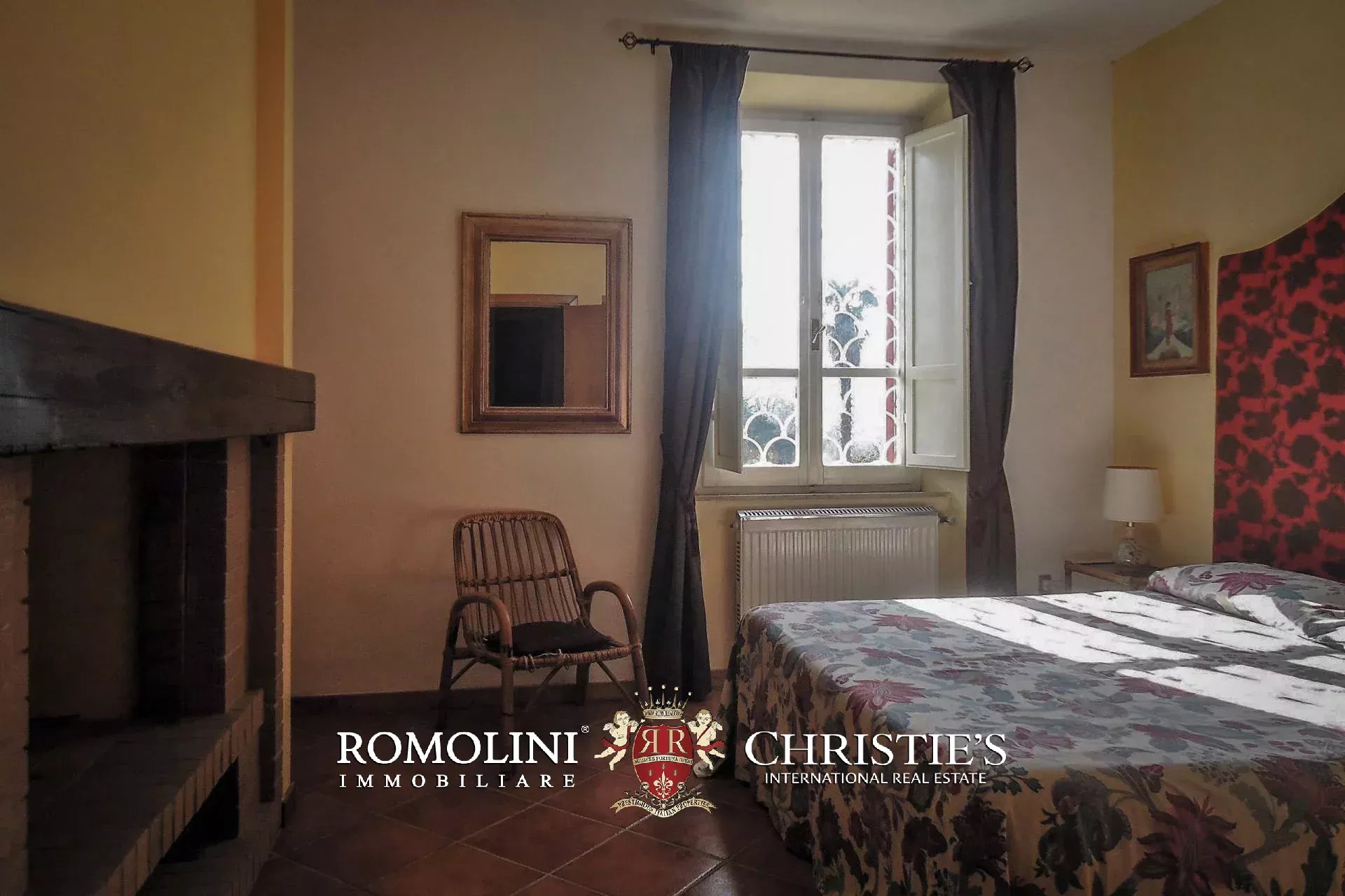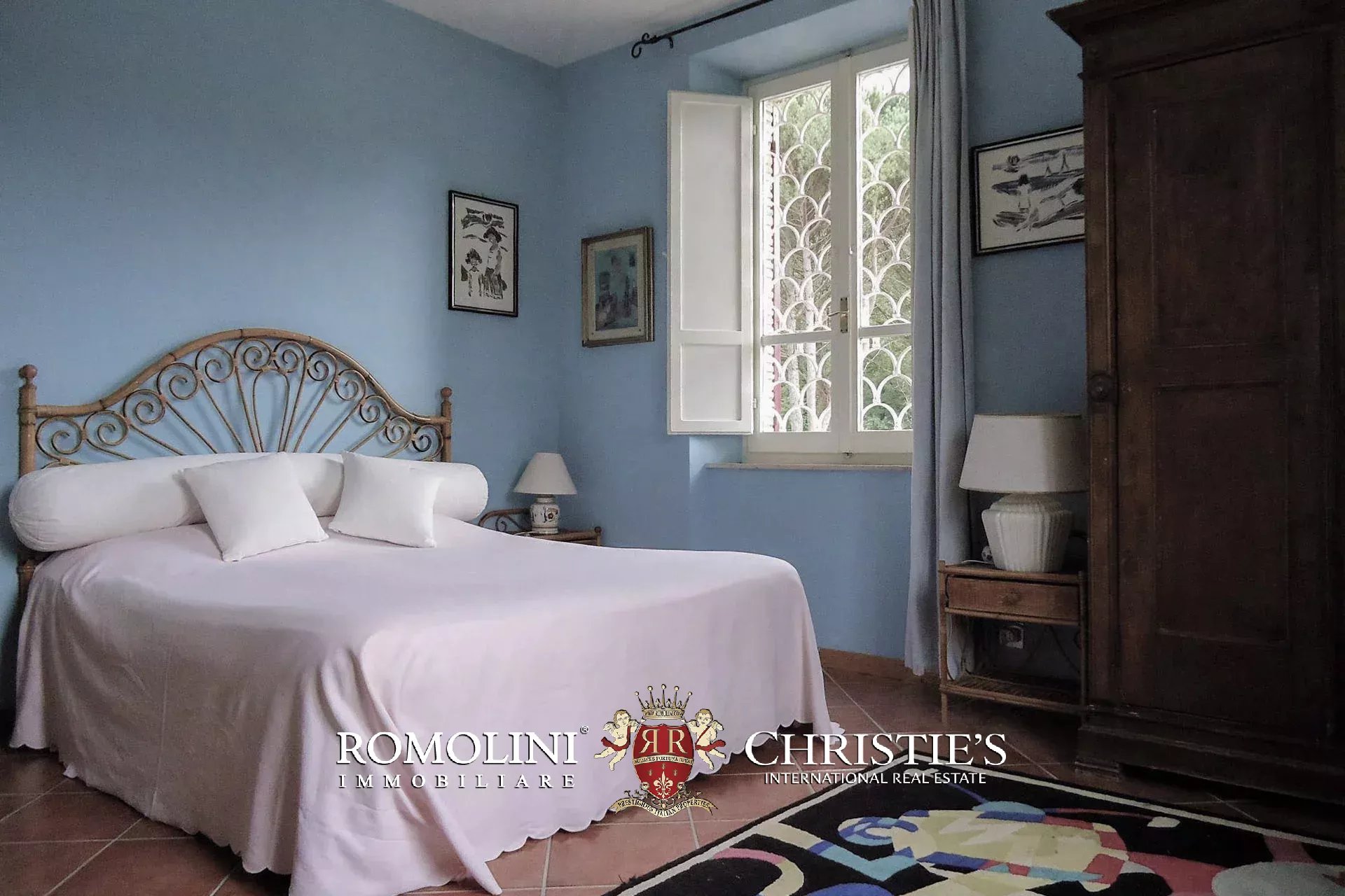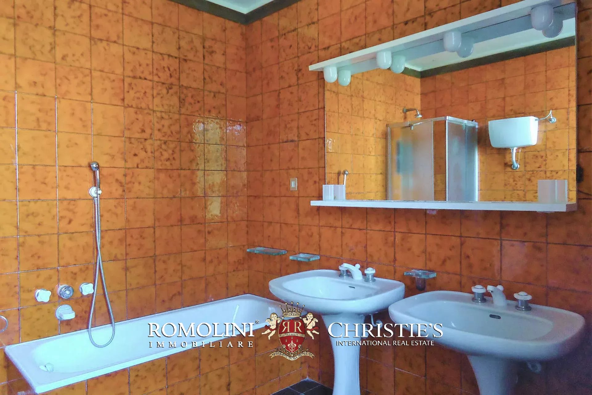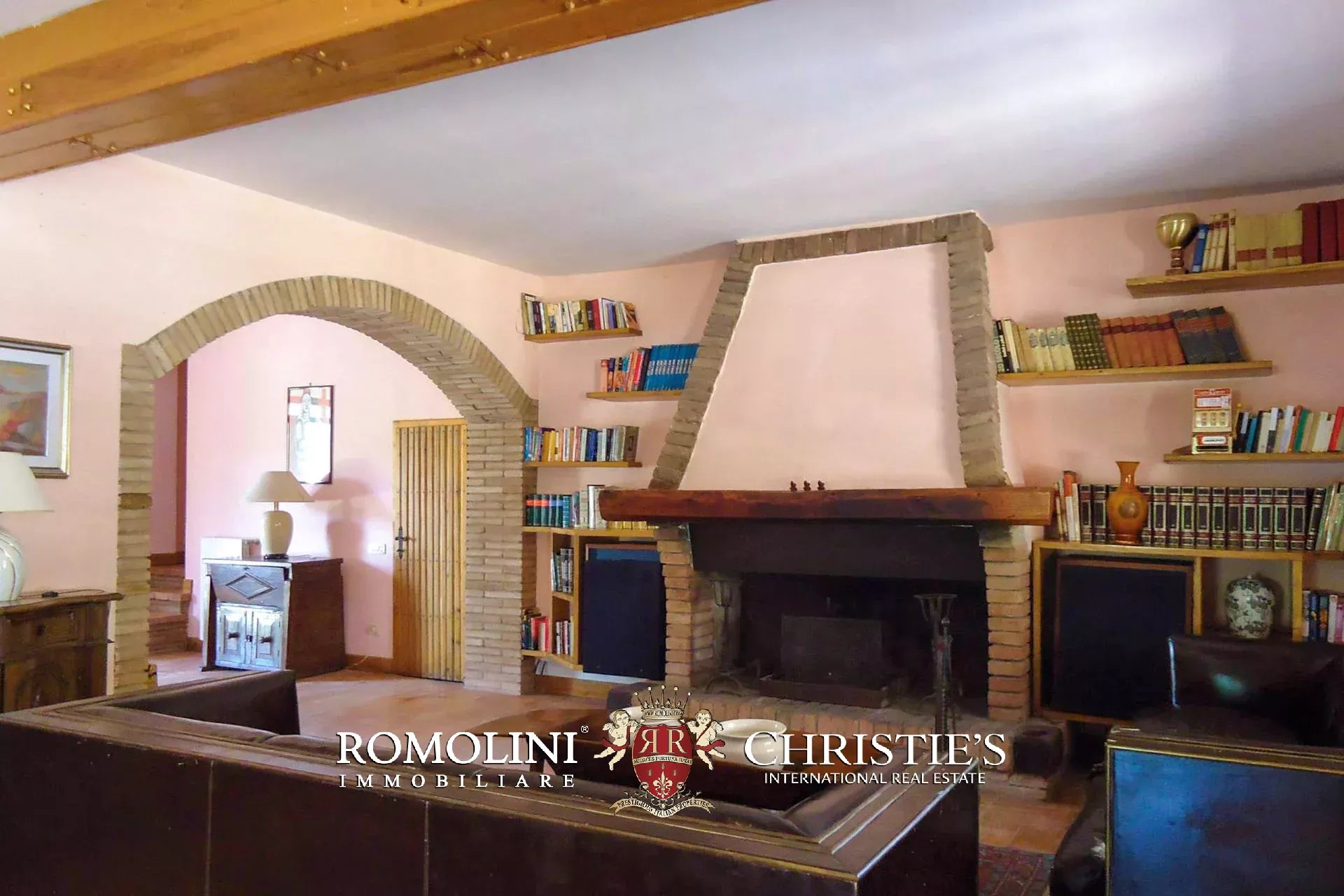 - Piano terra. L’ingresso conduce in una stanza a forma di L con un arco in muratura che porta a un doppio salone con un imponente camino. I pavimenti in cotto antico, le finestre in metallo e le porte-finestra conferiscono un aspetto raffinato alle stanze. L’ampia sala da pranzo presenta un soffitto a travi lignee e pavimenti in cotto antico e le ampie vetrate conferiscono grande luminosità al locale. Dalla sala da pranzo di accede alla spaziosa cucina con pavimenti in cotto antico, camino, forno per pizza e ampie superfici di lavoro. Il piano è completato da un bagno con doccia e da una camera singola (convertibile in studio in base alle preferenze). Troviamo infine una stanza ripostiglio con armadio per la biancheria.
