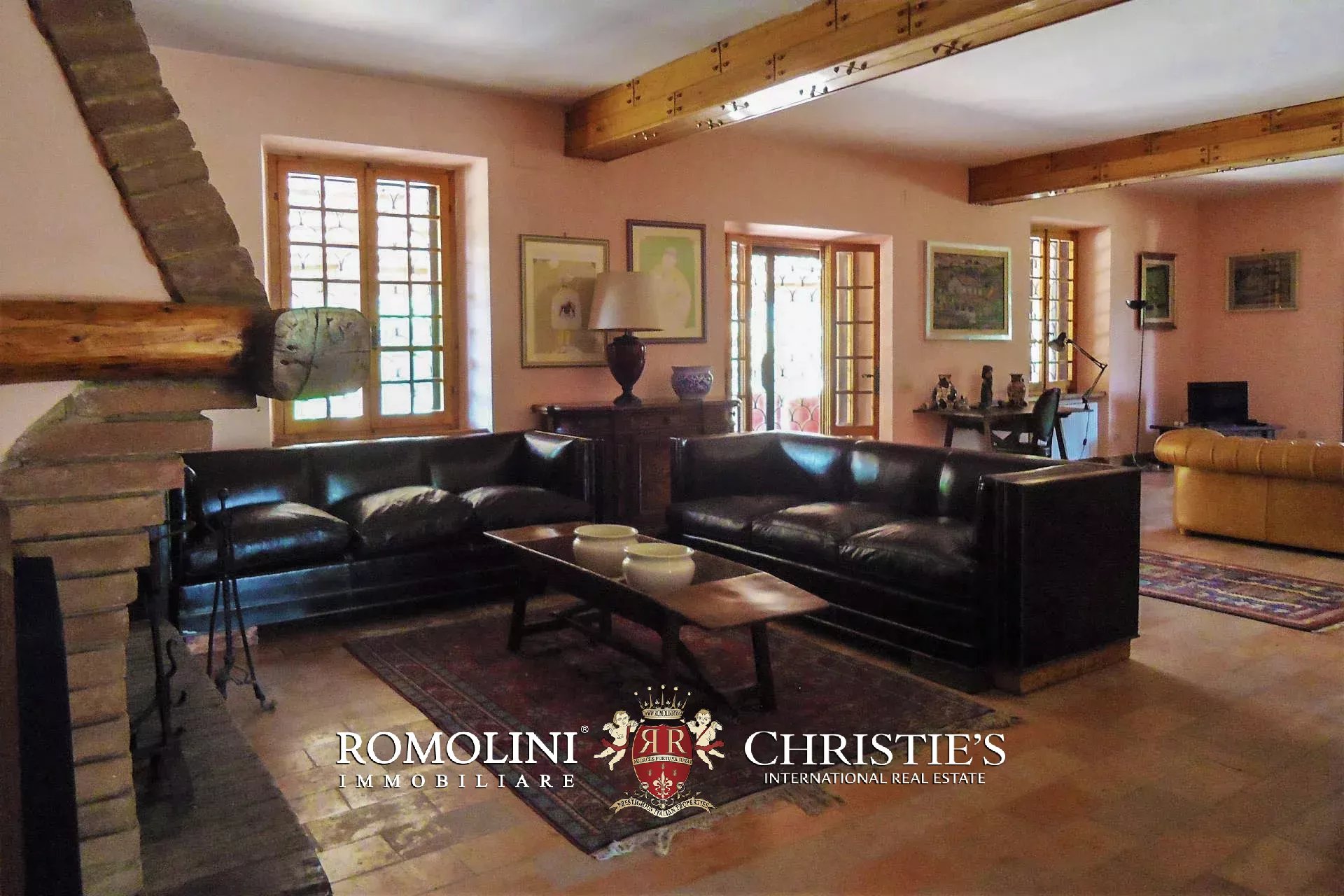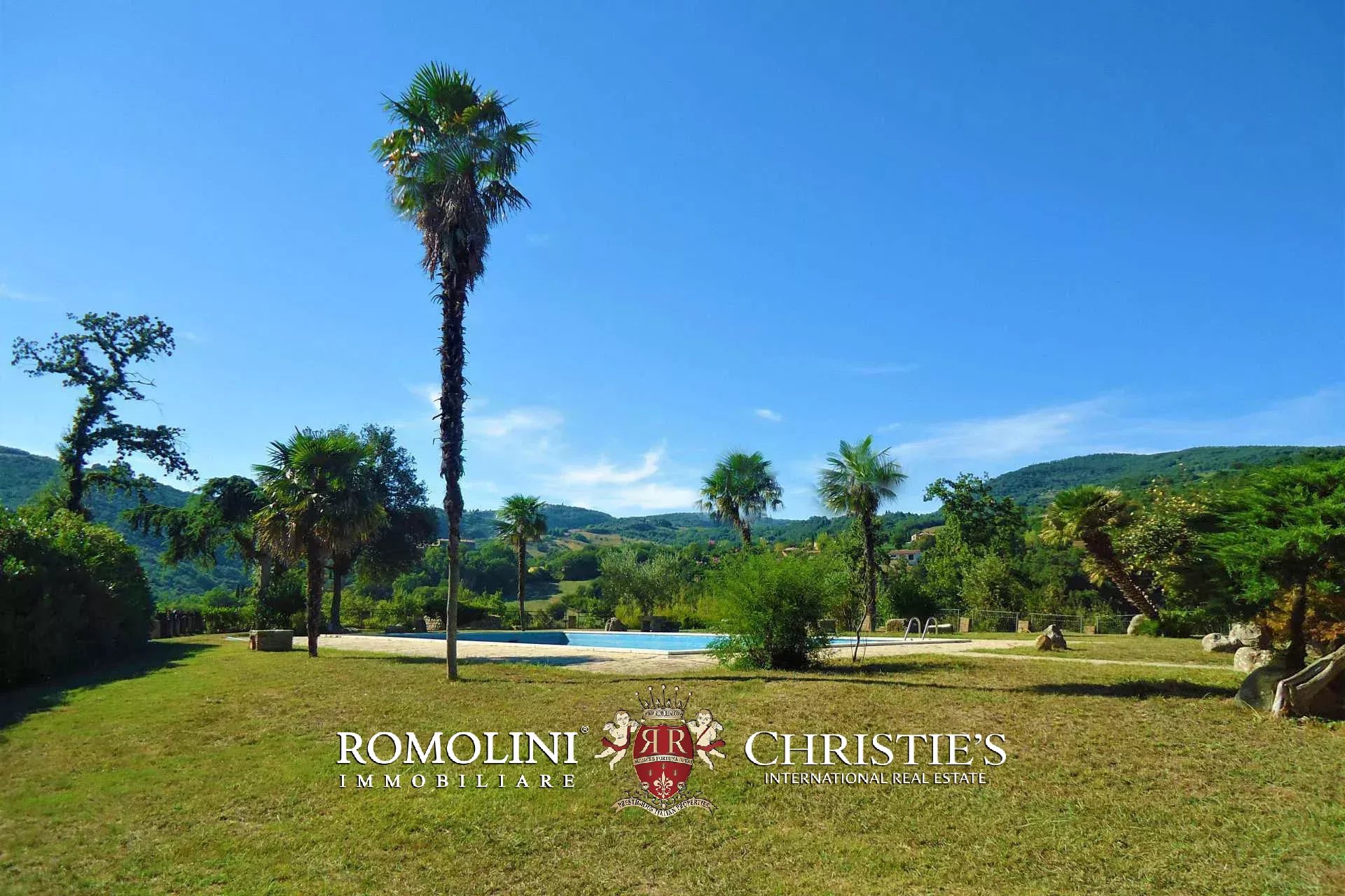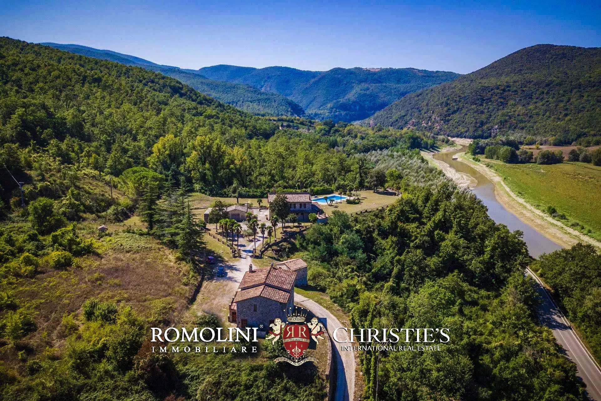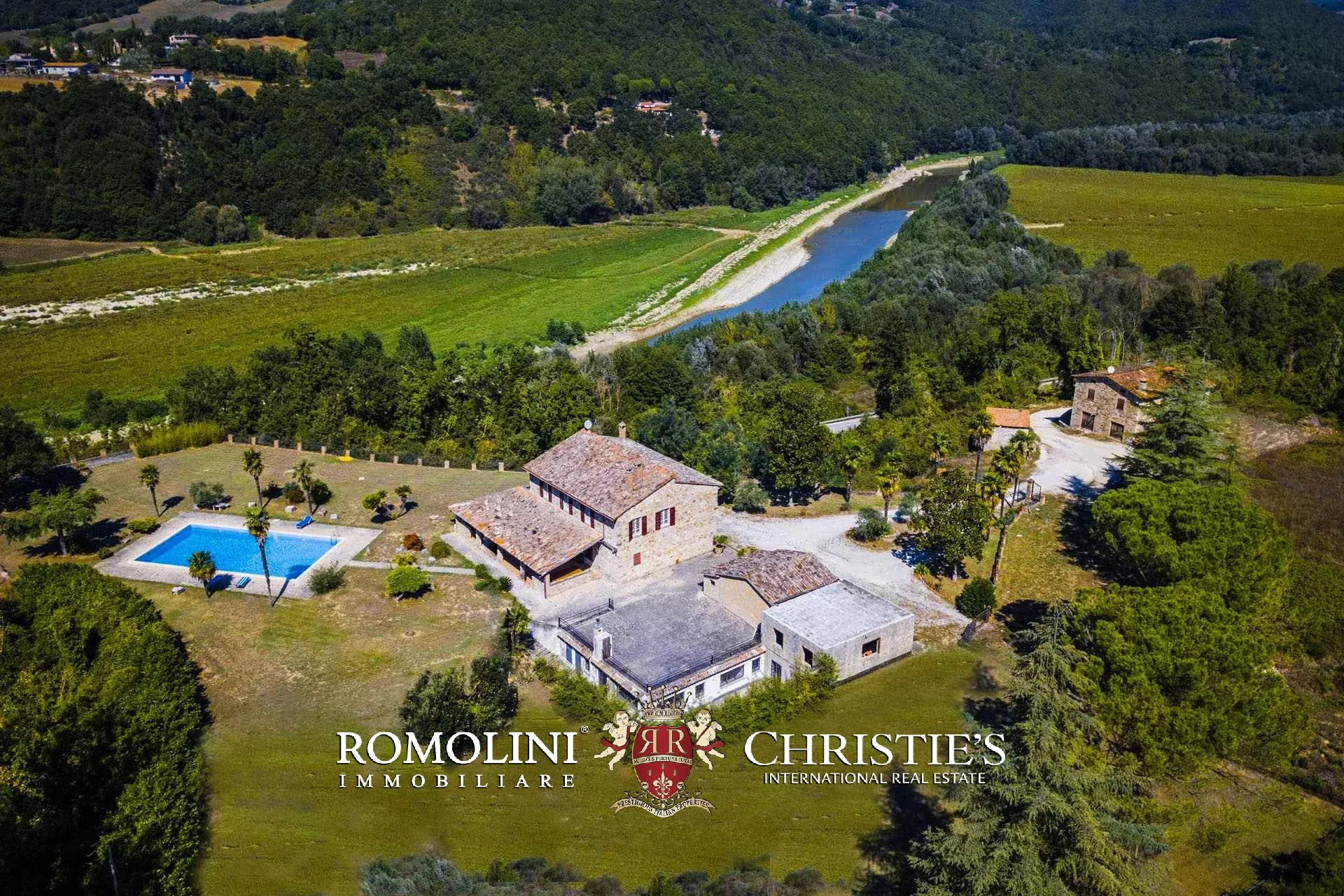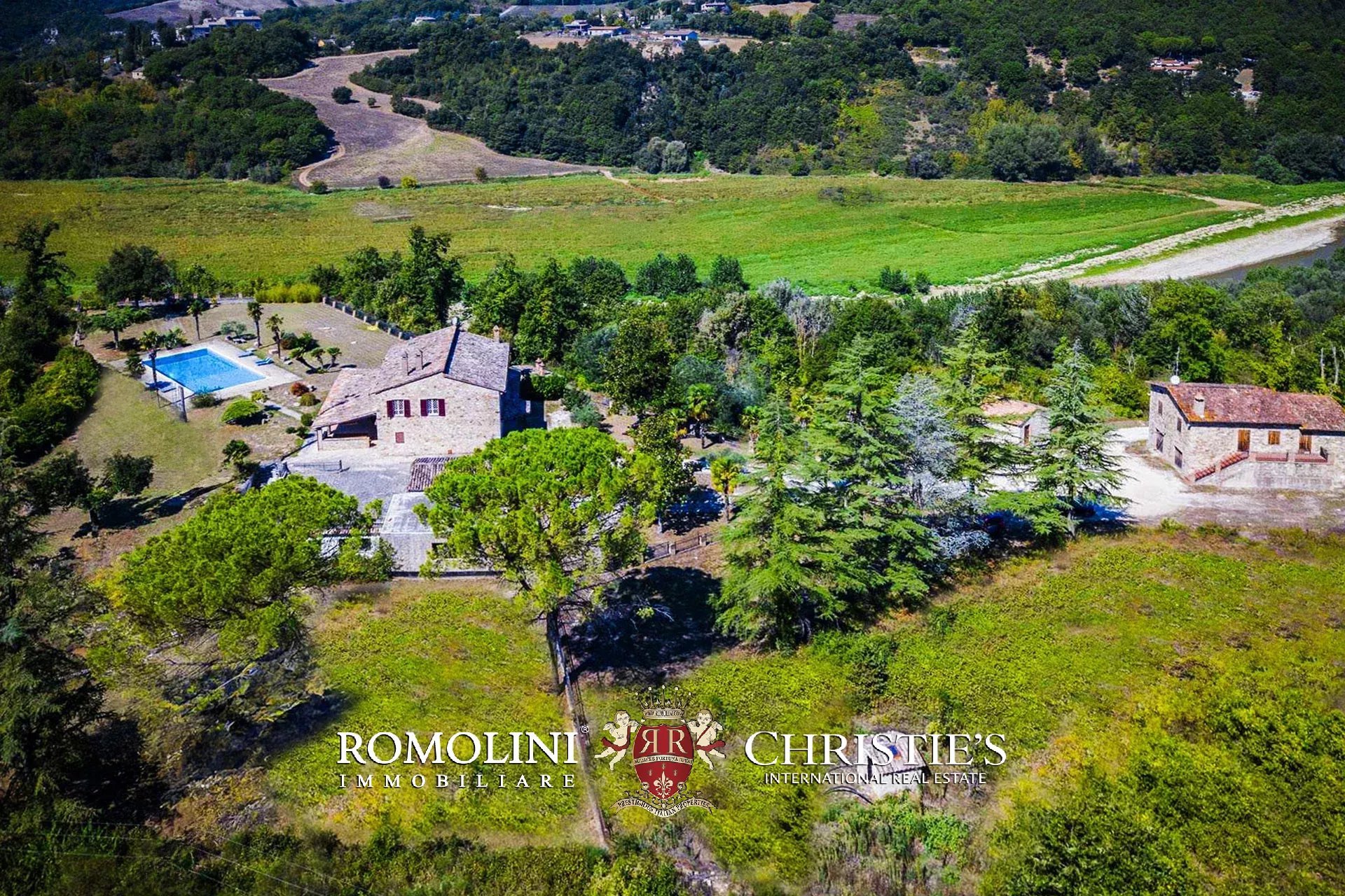Meravigliosa tenuta di campagna con villa, immersa in 22 ettari di terra: la proprietà offre una vista spettacolare sulla campagna circostante dalla sua posizione dominante in cima a una piccola collina, circa 200 m sul livello del mare, con il fiume Tevere che scorre nella valle sotto la proprietà.