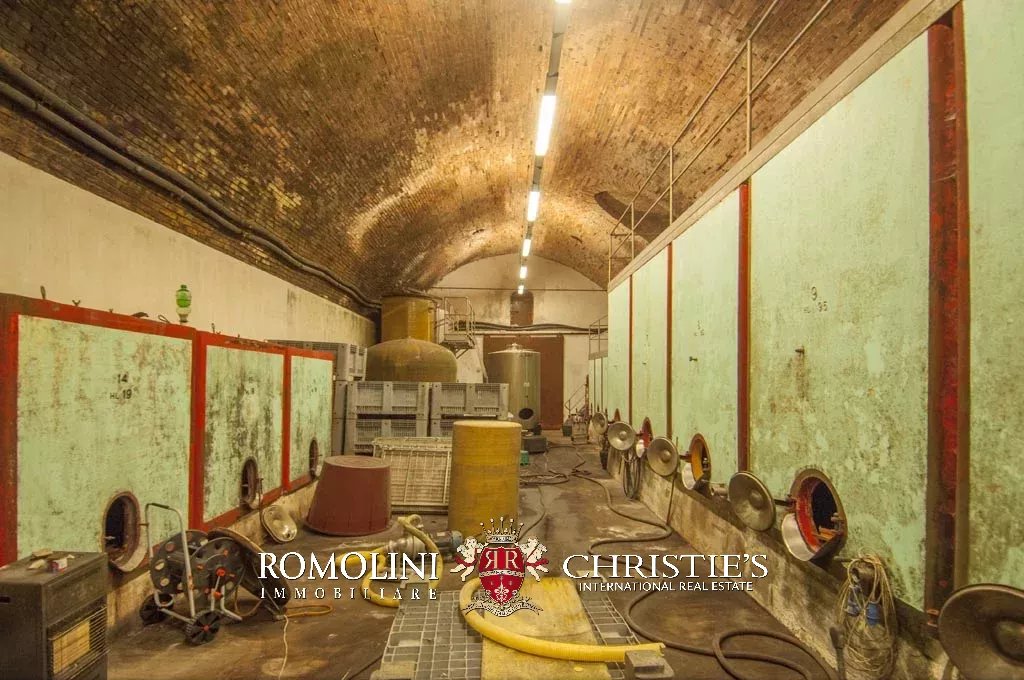 - Piano interrato: cantine storiche per l'invecchiamento (155 m², collegate tramite un tunnel seminterrato alla nuova cantina di vinificazione.