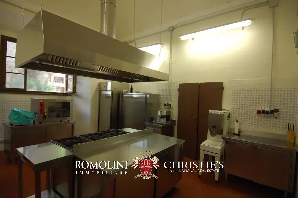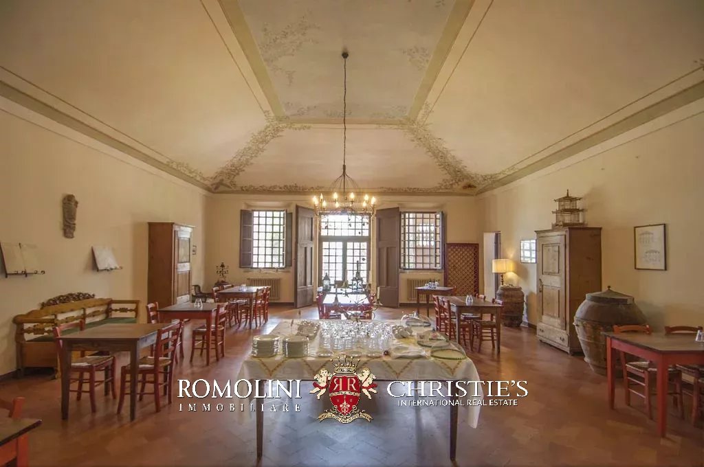 - Piano terra: loggiato, grande sala ristorante con cucina professionale, reception con punto vendita, orciaia per la conservazione dell’olio, cappella privata e appartamento indipendente (soggiorno con cucina e tre camere con bagno en-suite);