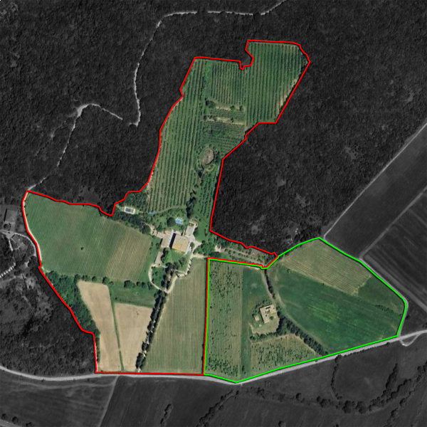 Il resto della proprietà è costituito da seminativi (2,0 ha) che potrebbero essere usati per impiantare nuovi vigneti o altre colture, oltre a un piccolo bosco (2.700 m²) sul lato sud della tenuta.