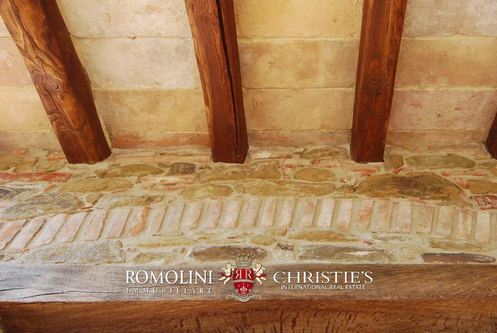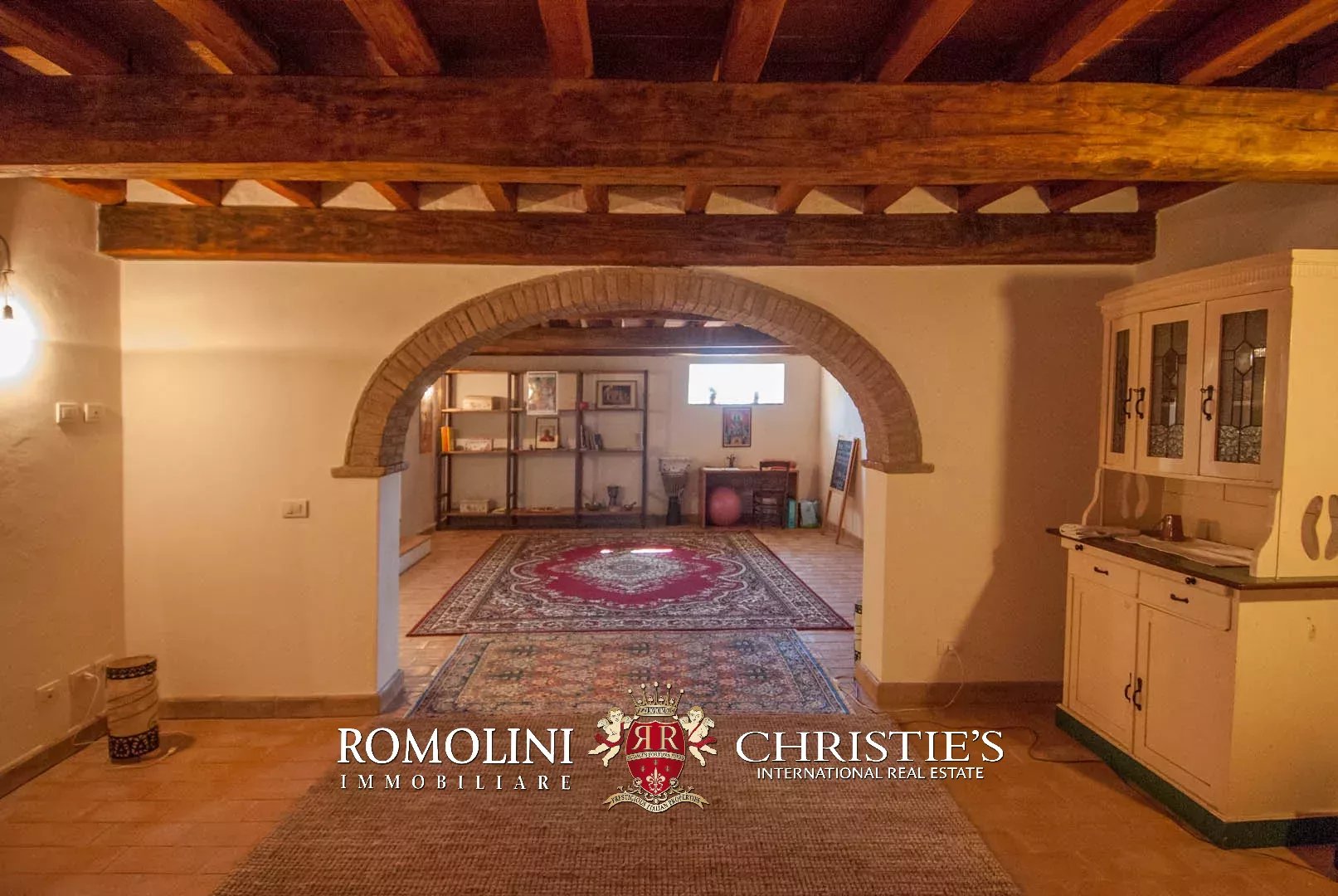 Il casale principale (350 mq) si snoda su tre piani fuori terra più un seminterrato: