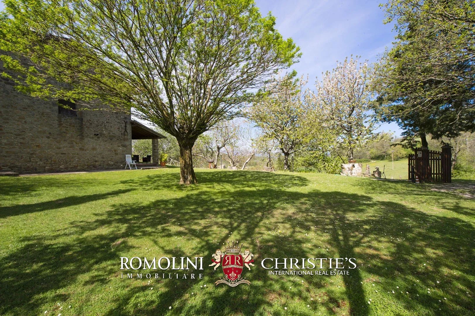 Situato in una posizione estremamente panoramica sulla Valtiberina toscana, non lontano da Sansepolcro, casale in pietra ristrutturato con giardino.