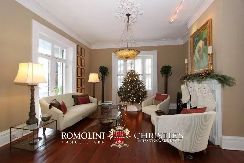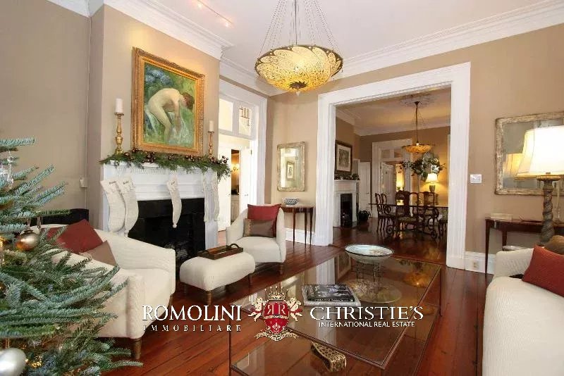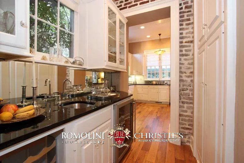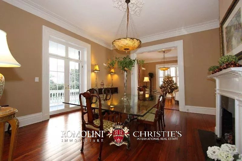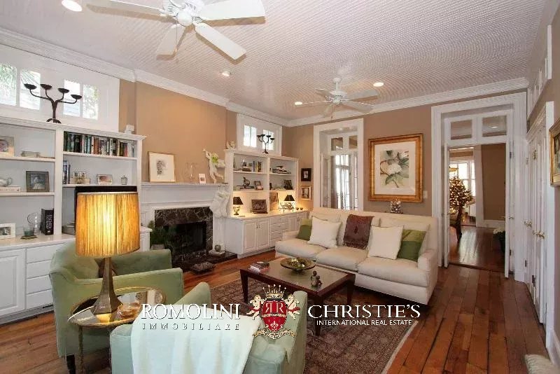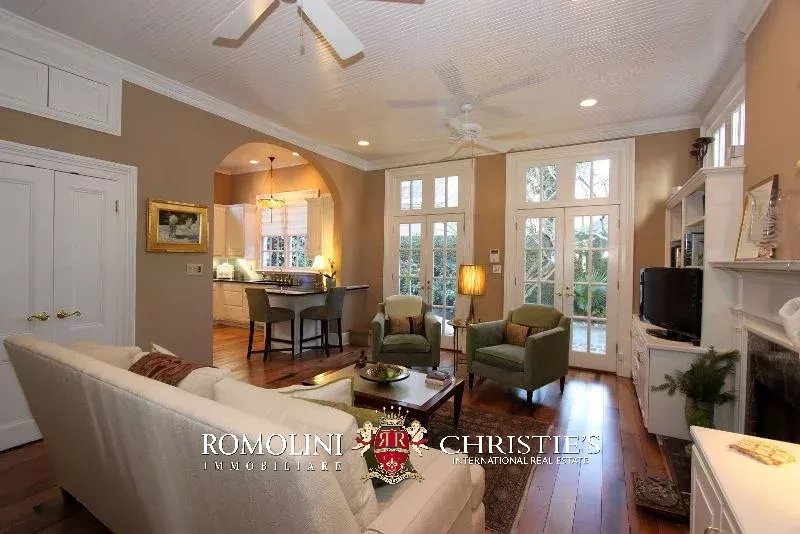 La proprietà, completamente ristrutturata di recente, consente di apprezzare lo stile di Charleston, sia negli interni che negli esterni. L’ampio salotto conduce alla sala da pranzo con porte alla francese, che si apre sul soggiorno e sulla cucina.