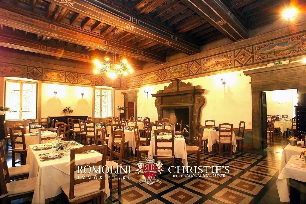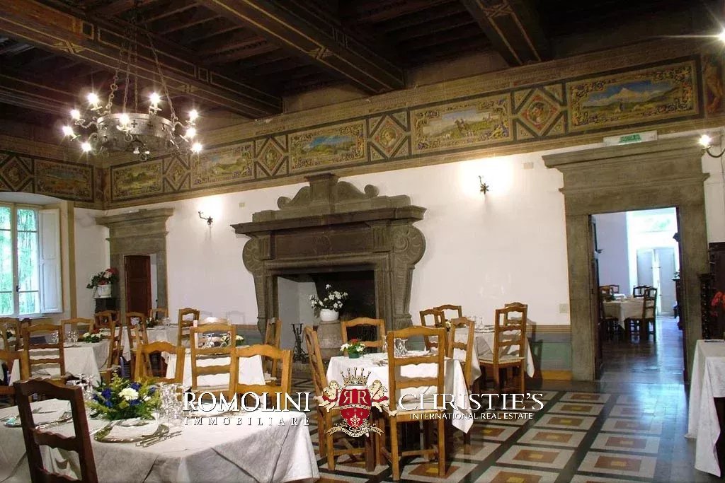 A piano terra, oltre all’ampio ingresso con angolo lettura dove si trova la scala in pietra che conduce al primo piano, si trovano due saloni attualmente utilizzati come sale ristorante. Il salone principale, con grande camino in pietra, è caratterizzato dal un particolare soffitto a cassettone decorato e da affreschi parietali. Sempre a piano terra si trovano una cucina professionale, una sala bar e servizi. e due sale convegni.