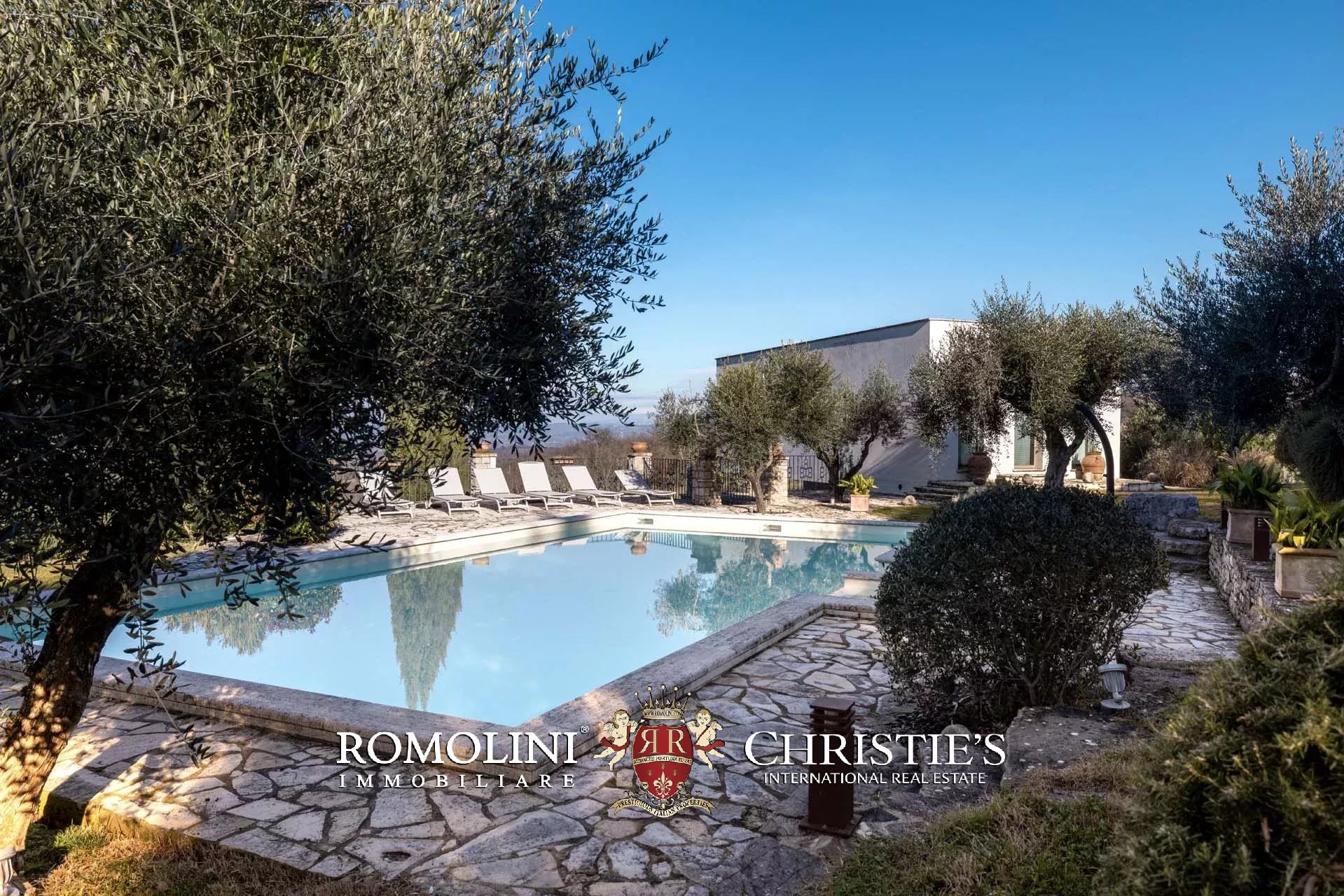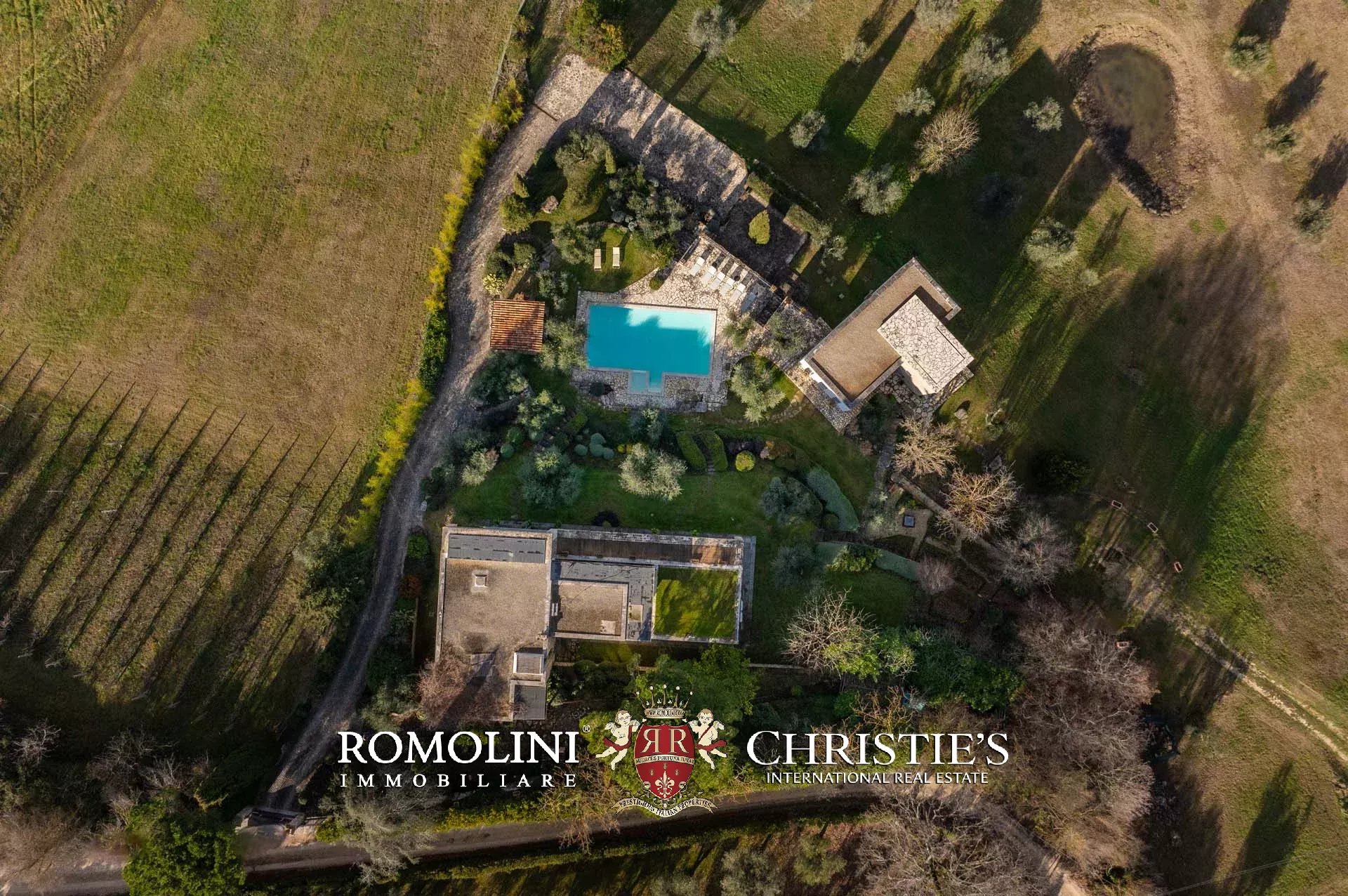Il terreno è arricchito da circa 70 ulivi e da un pittoresco laghetto, che aggiungono fascino e autenticità alla proprietà .