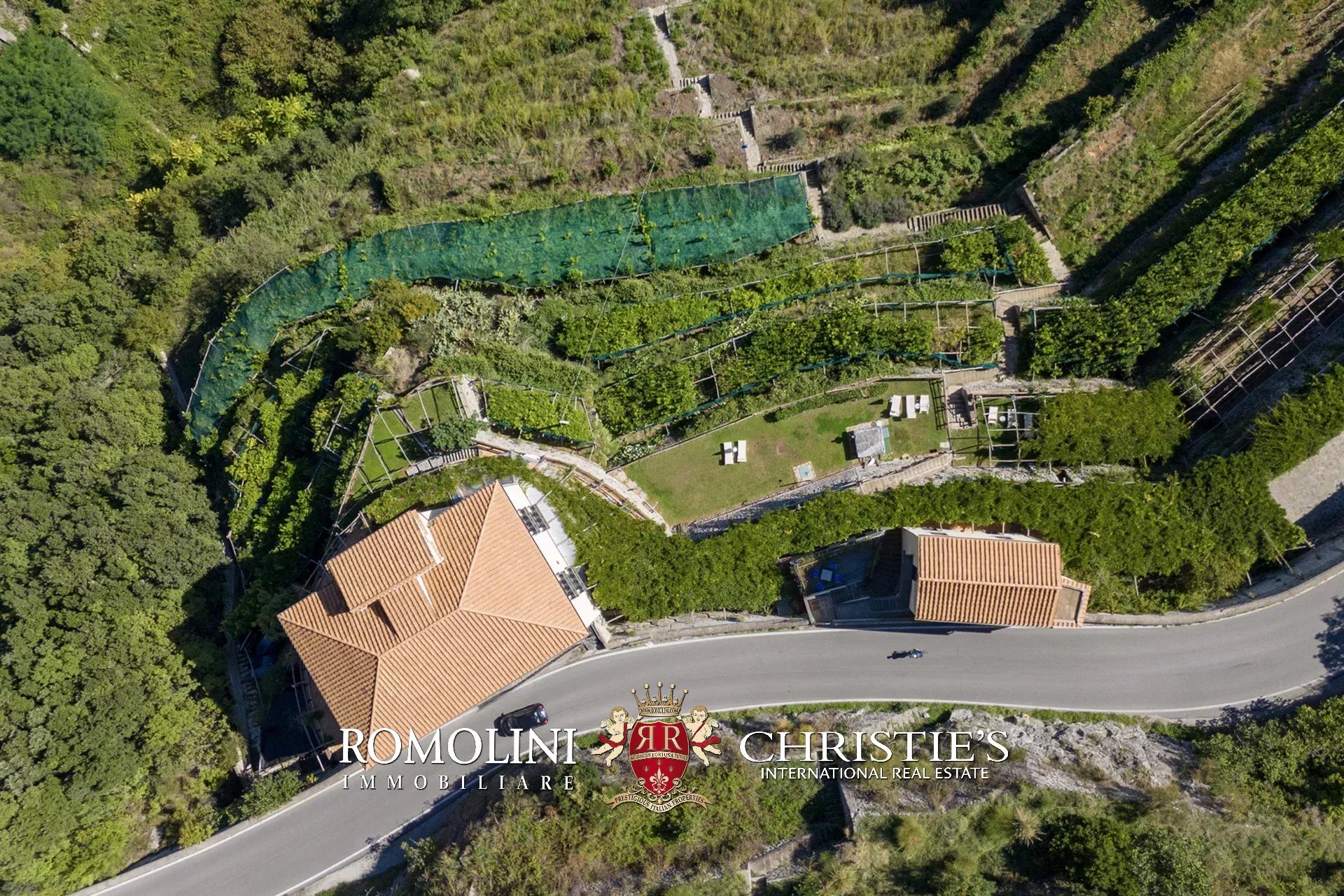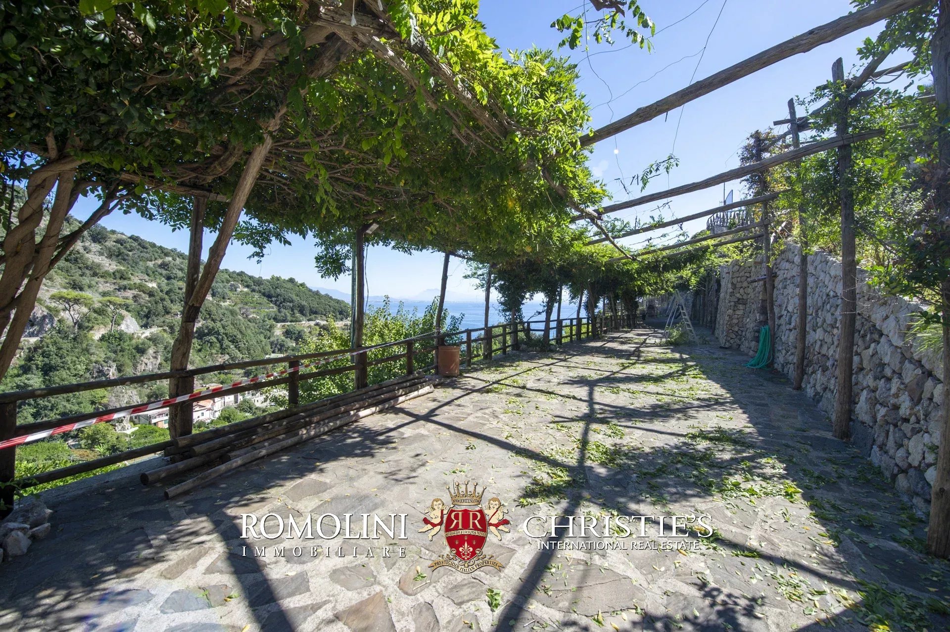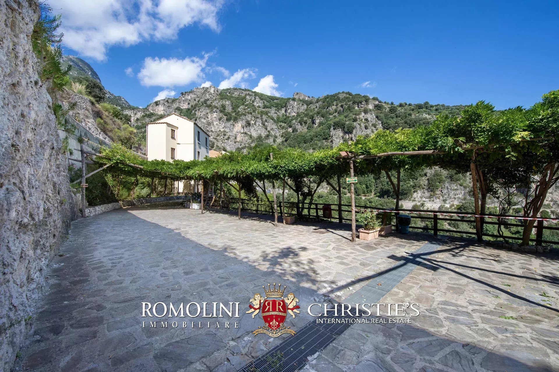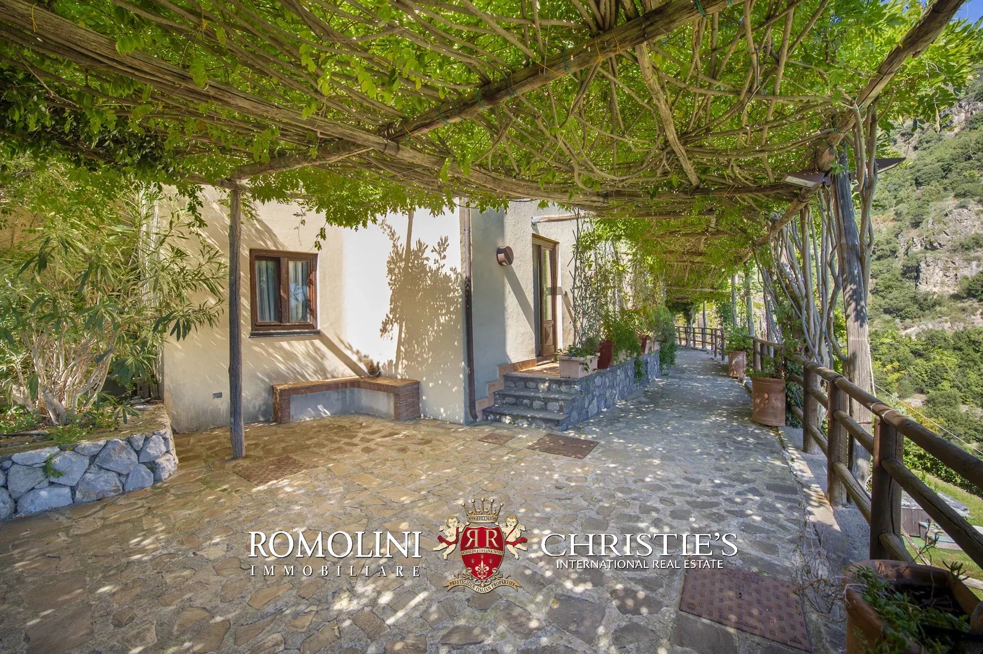 L’accesso alla proprietà, molto comodo direttamente dalla strada, avviene tramite una rampa che conduce a una terrazza pavimentata usata come parcheggio (circa 180 m²), una caratteristica molto comoda e ricercata in una zona come la Costiera Amalfitana.