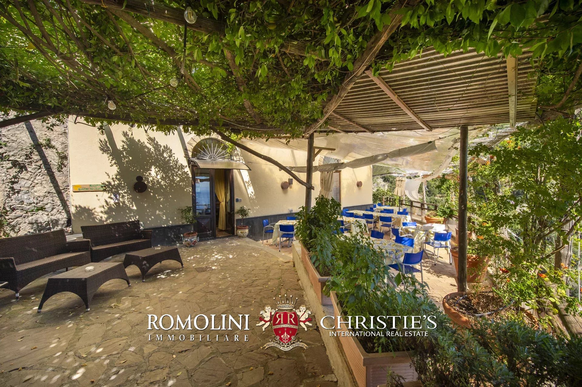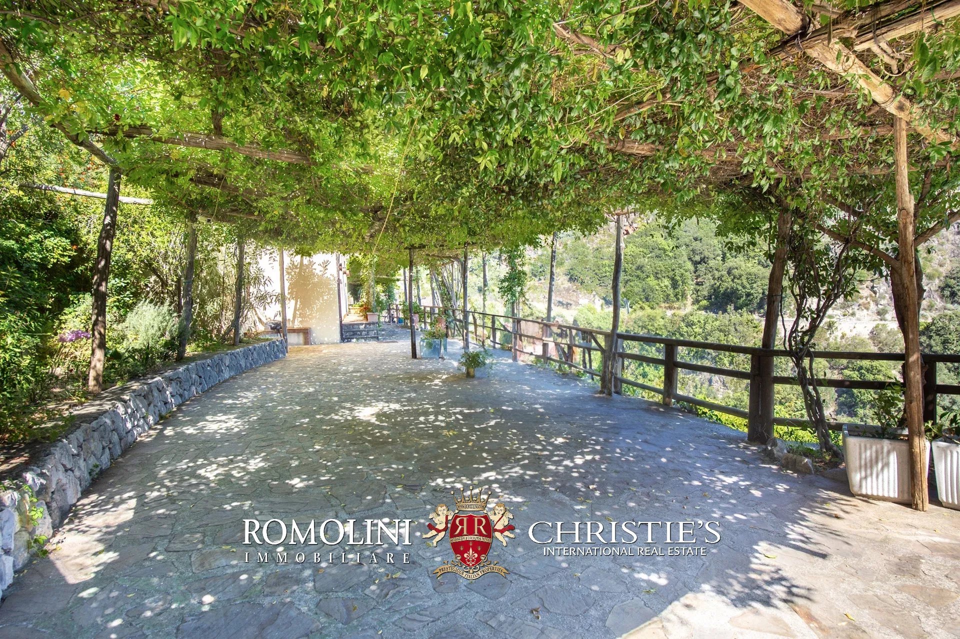 Dalla rampa si ha accesso anche al giardino (circa 1.500 m²), una vera e propria oasi di pace e relax, attraversando una pergola in legno circondata dalle piante tipiche della costiera, tra cui molte piante di limone che sono state recuperate con grande cura.
