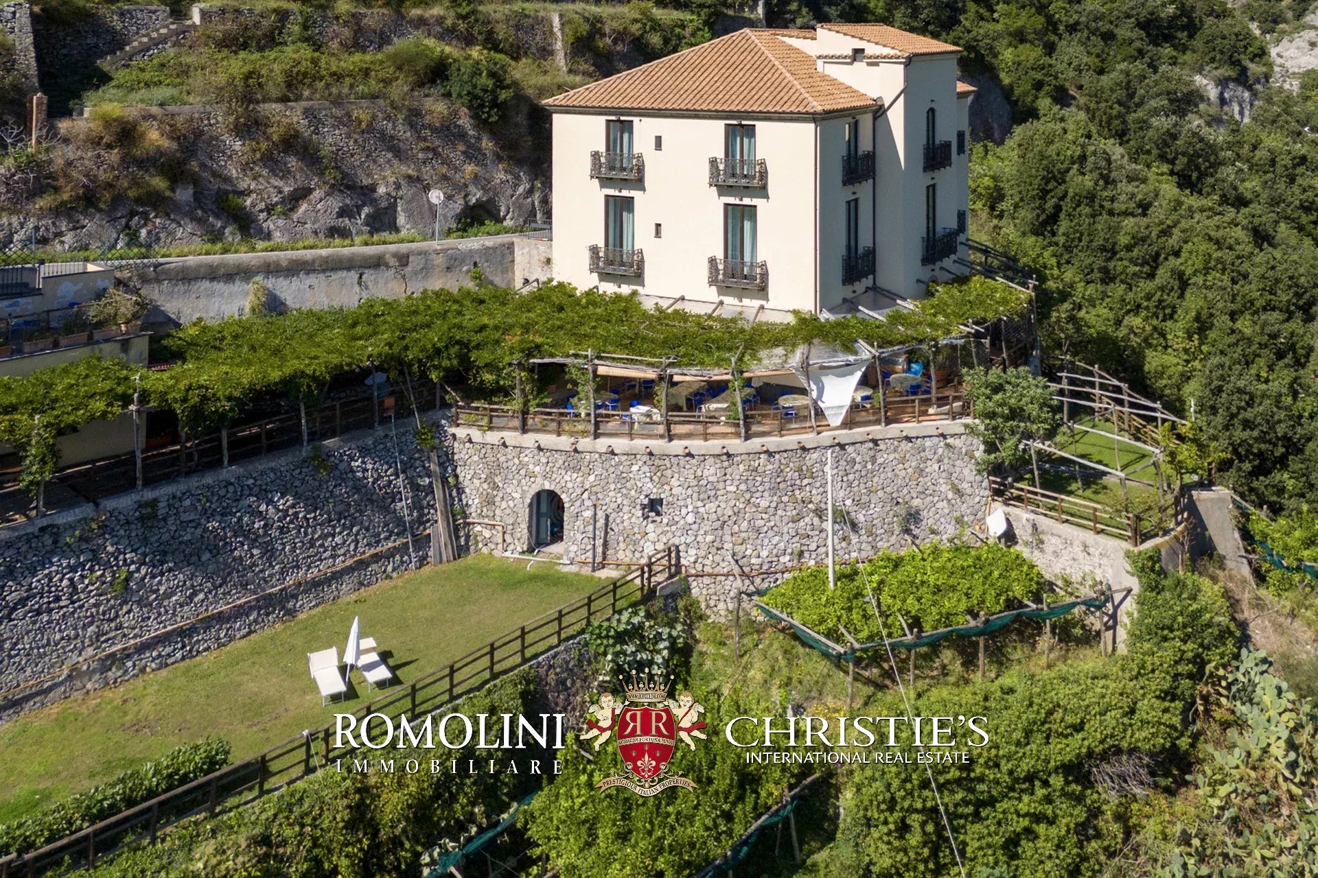 In posizione panoramica tra Maiori e Vietri sul Mare, nella splendida e inimitabile Costiera Amalfitana, villa ristrutturata con giardino e parcheggio privato in vendita. Gli edifici, attentamente ristrutturati nel 2013, ospitano ben nove appartamenti per gli ospiti, tutti autosufficienti e con vista panoramica sul mare e le scogliere della Costiera. I 2,7 ha di terreno che circondano l’immobile ospitano un limoneto e un comodo parcheggio esclusivo.