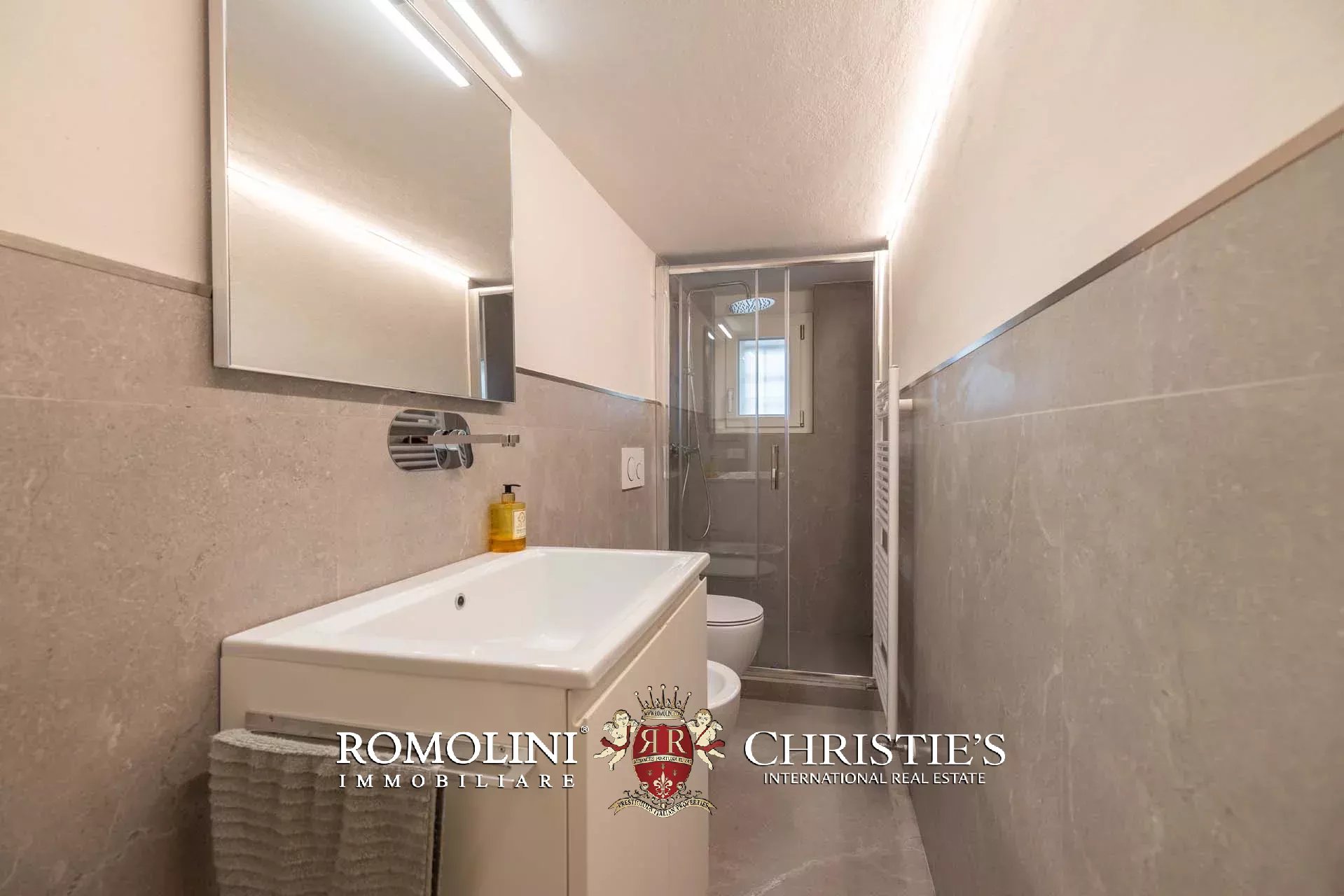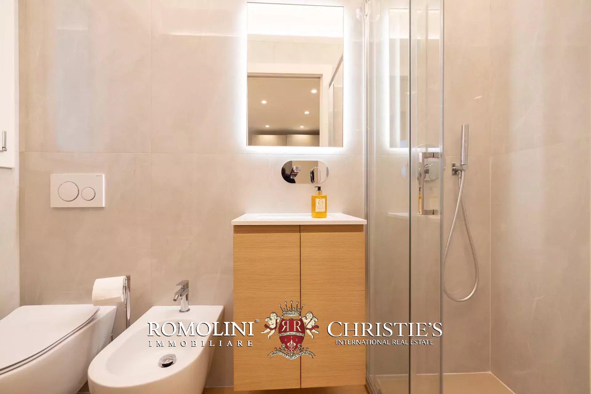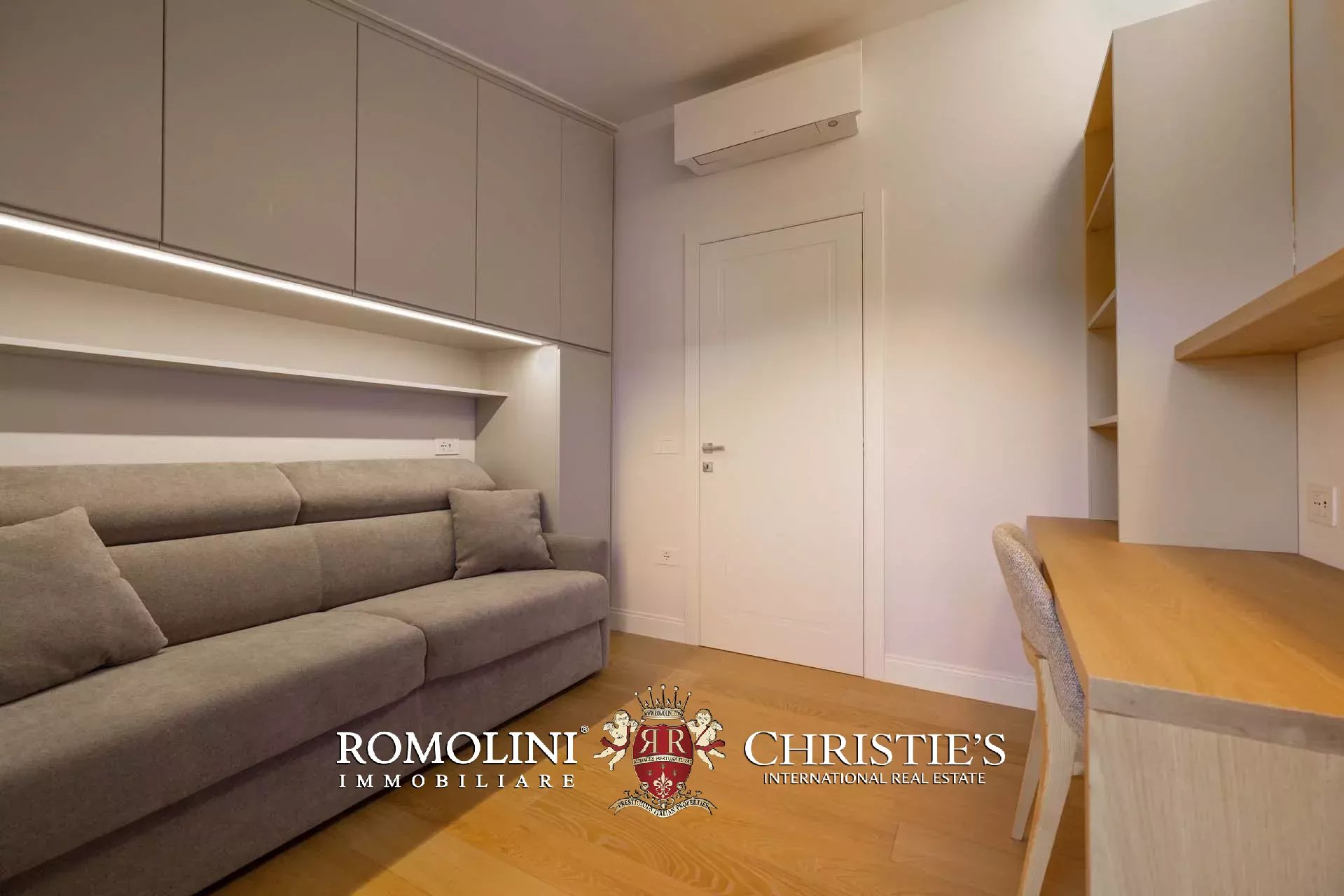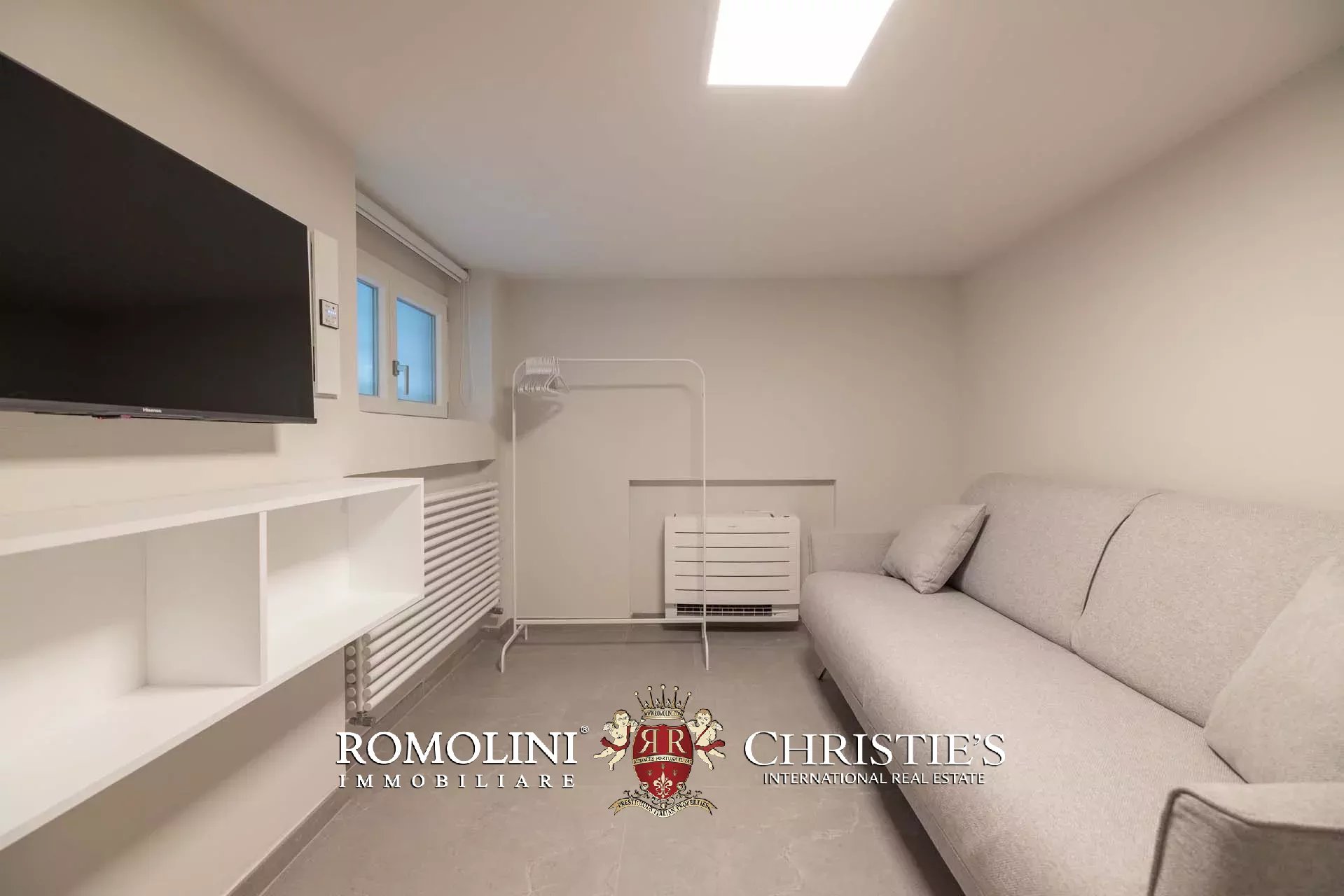 All’esterno, il giardino di 330 m² ospita una piscina idromassaggio, cucina esterna, zona pranzo, barbecue e una cabina doccia in stile Forte dei Marmi. Alla casa si accede direttamente dalla strada e oltre il cancello c’è spazio sufficiente per due auto, oltre alla predisposizione per una colonnina di ricarica per veicoli elettrici.
