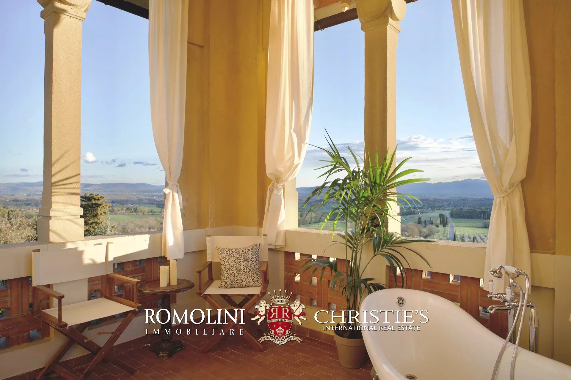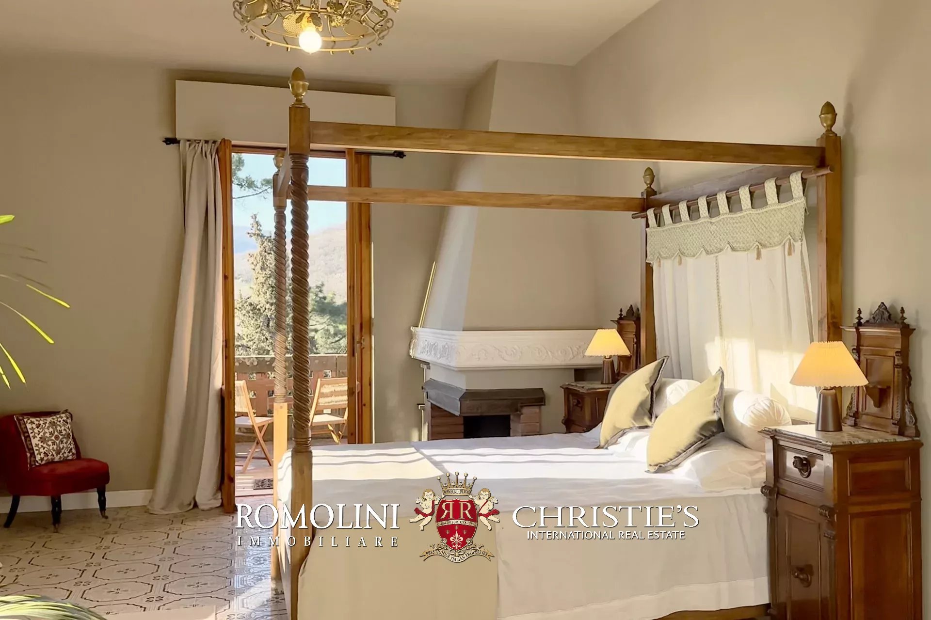 Delle 5 camere, due sono suite di lusso e la principale è corredata da un’ampia cabina armadio, terrazza esposta ad ovest verso i tramonti, un bagno en-suite in stile vittoriano, oltre all’accesso esclusivo alla torretta.