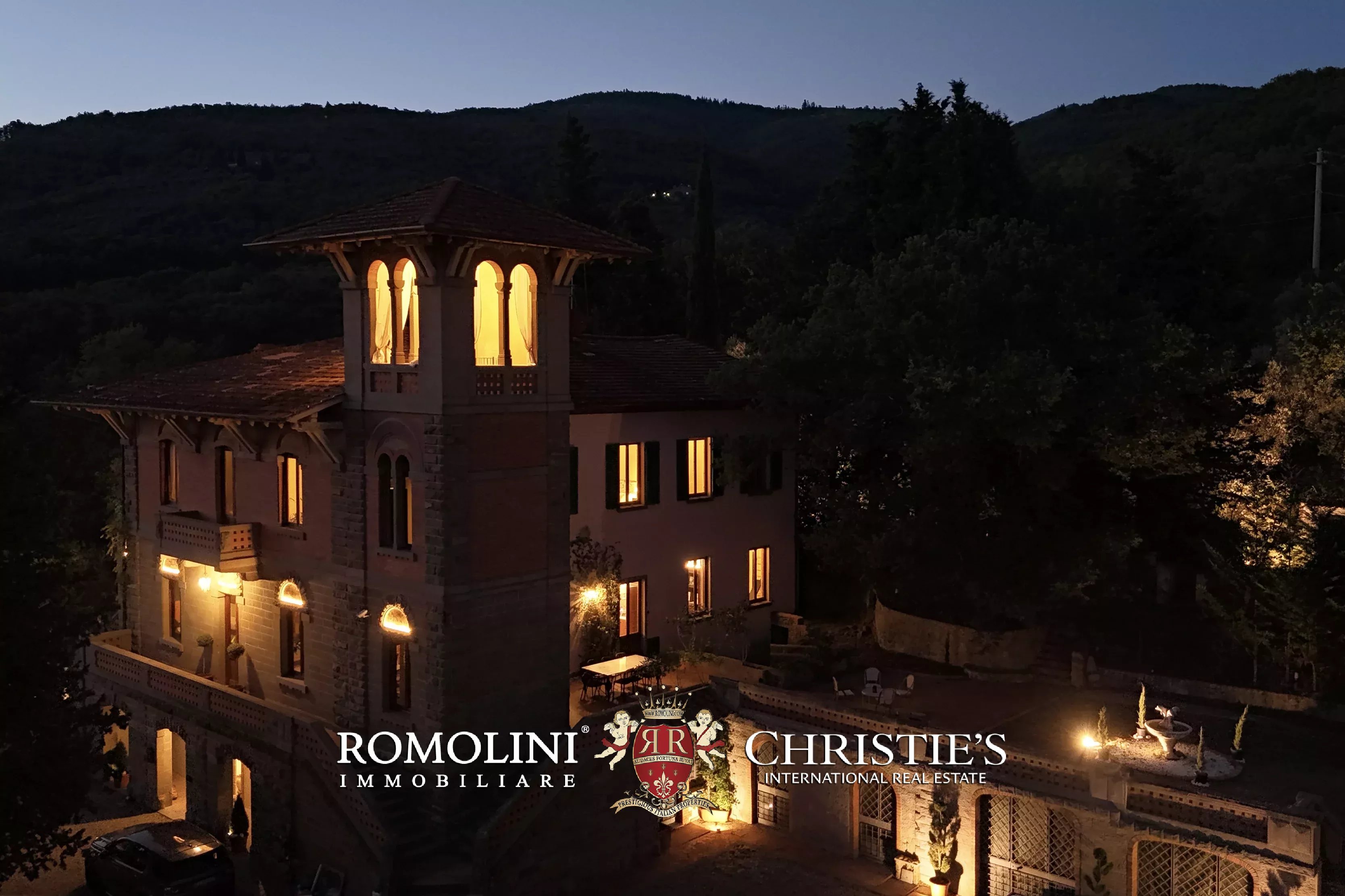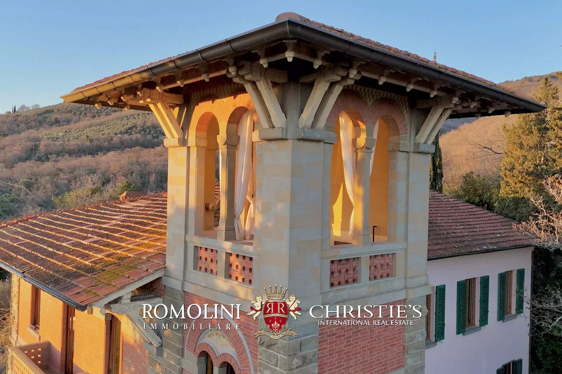 Sulle pittoresche colline del Valdarno, a pochi minuti da Loro Ciuffenna (premiato come uno dei “Borghi Più Belli d’Italia”), villa d’epoca in stile Gilded Age in vendita. La proprietà (oltre 900 m²) offre viste panoramiche sulle colline circostanti ed è circondata da un parco di 7.550 m² con oliveto (120 piante).