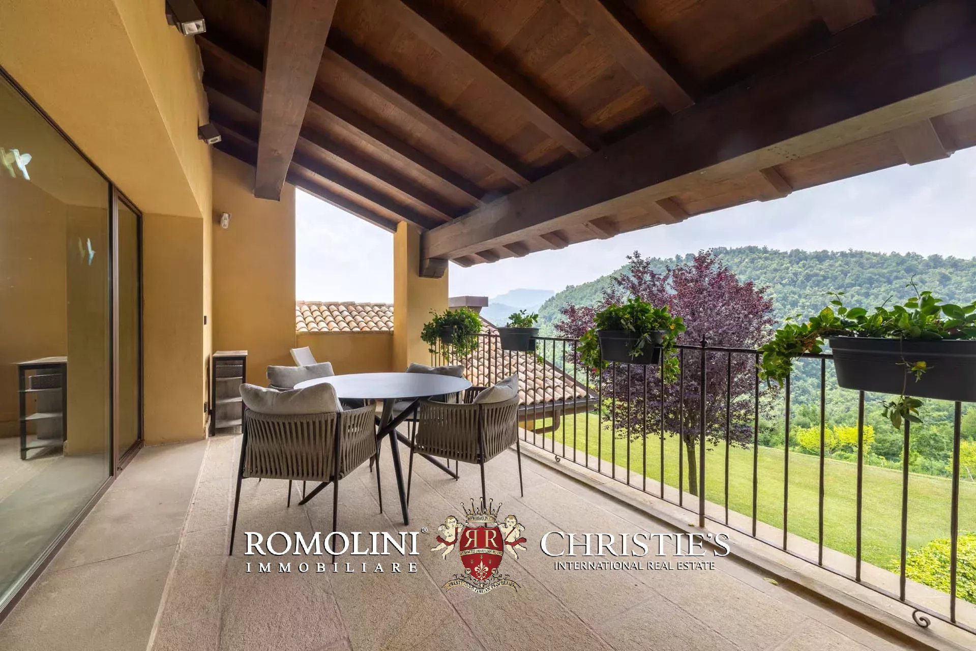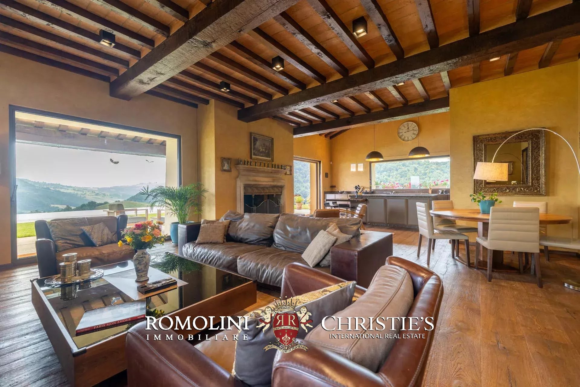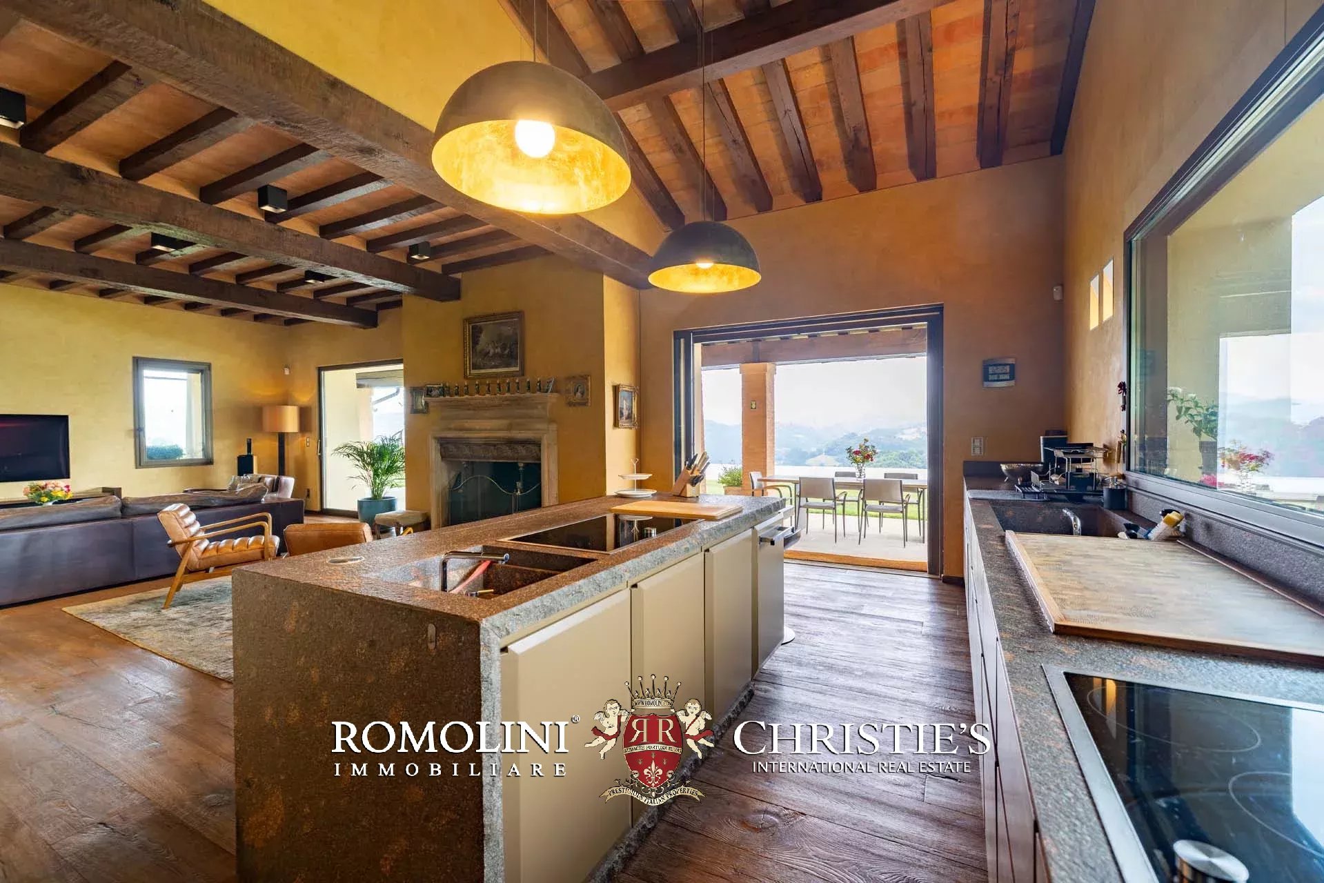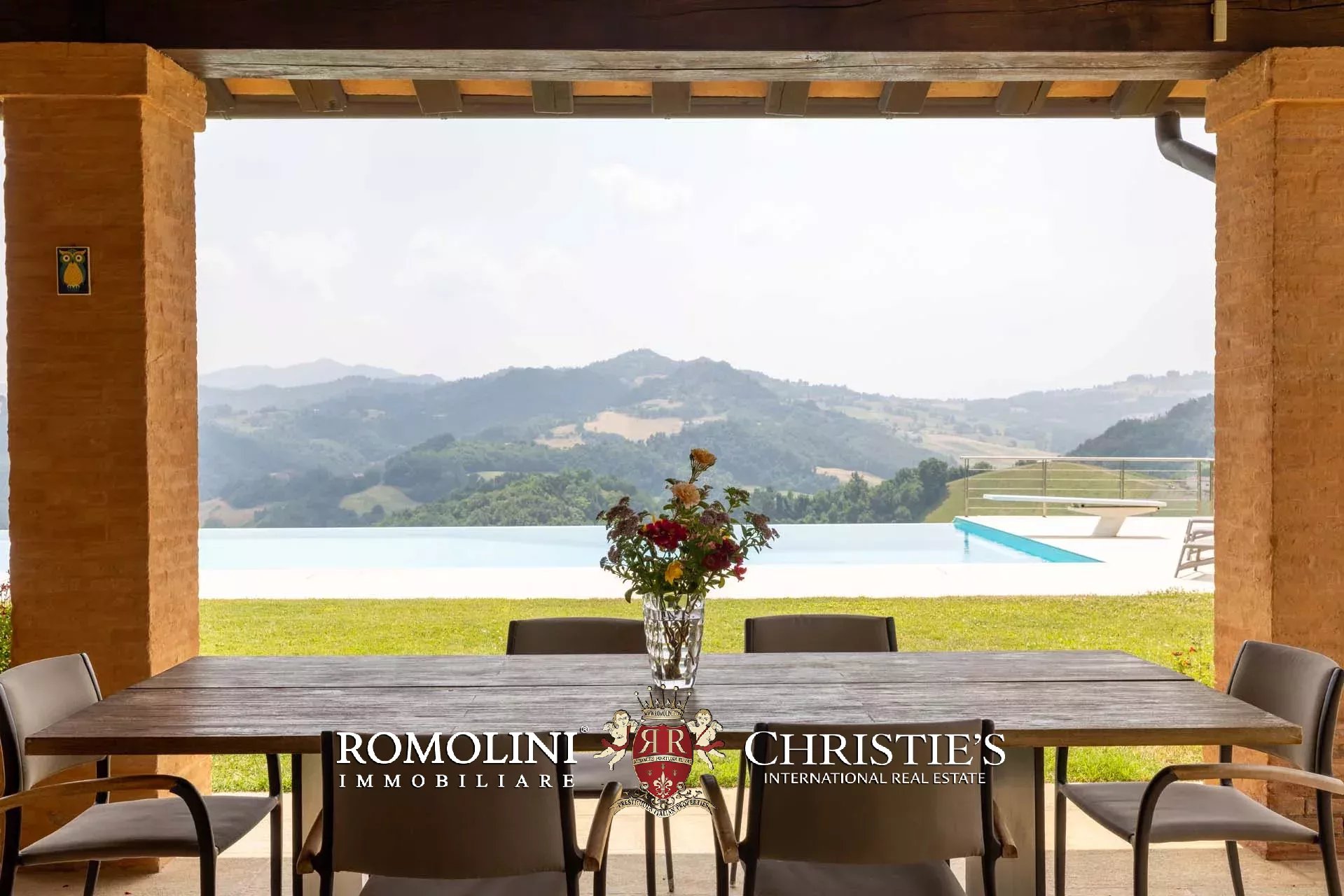 Sulle colline dell’Emilia, in posizione tranquilla e panoramica a breve distanza da Castellarano e Sassuolo, villa di lusso con piscina in vendita. La proprietà è stata recentemente ristrutturata con grande attenzione, mantenendo il fascino rustico originale ma introducendo finiture contemporanee di altissimo livello. Immersa in 26,9 ettari di terreno privato, la villa garantisce privacy assoluta e una vista impareggiabile sulla campagna circostante. Gli interni presentano materiali pregiati, arredi di design e una zona wellness professionale.