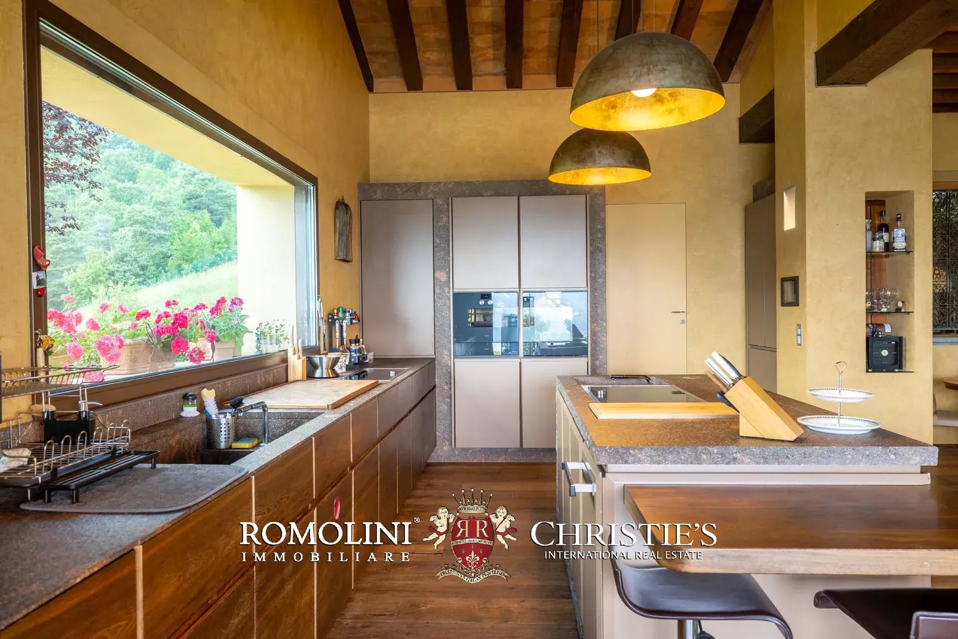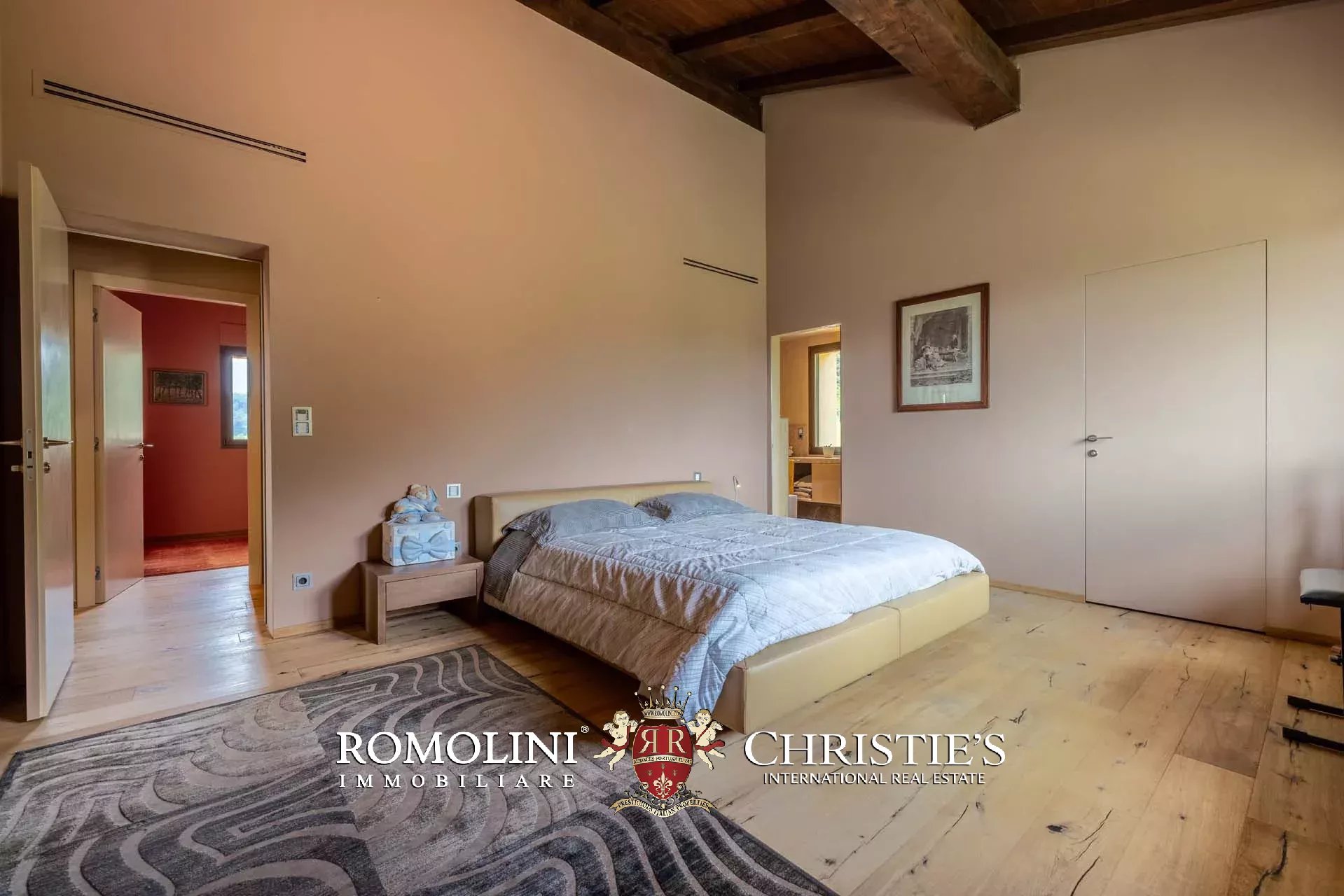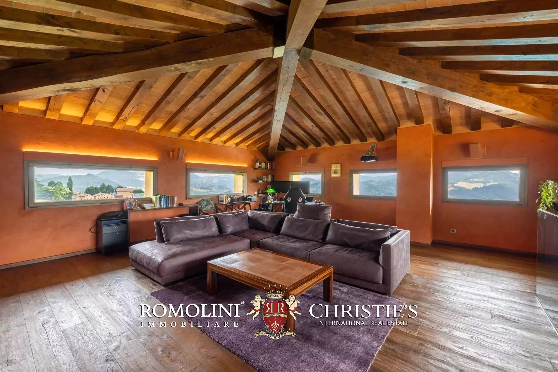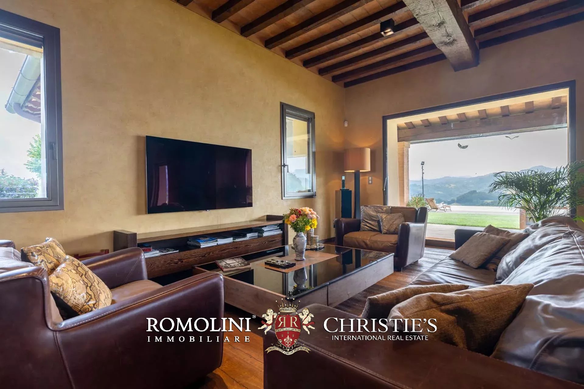 Sulle colline dell’Emilia, in posizione tranquilla e panoramica a breve distanza da Castellarano e Sassuolo, villa di lusso con piscina in vendita. La proprietà è stata recentemente ristrutturata con grande attenzione, mantenendo il fascino rustico originale ma introducendo finiture contemporanee di altissimo livello. Immersa in 26,9 ettari di terreno privato, la villa garantisce privacy assoluta e una vista impareggiabile sulla campagna circostante. Gli interni presentano materiali pregiati, arredi di design e una zona wellness professionale.