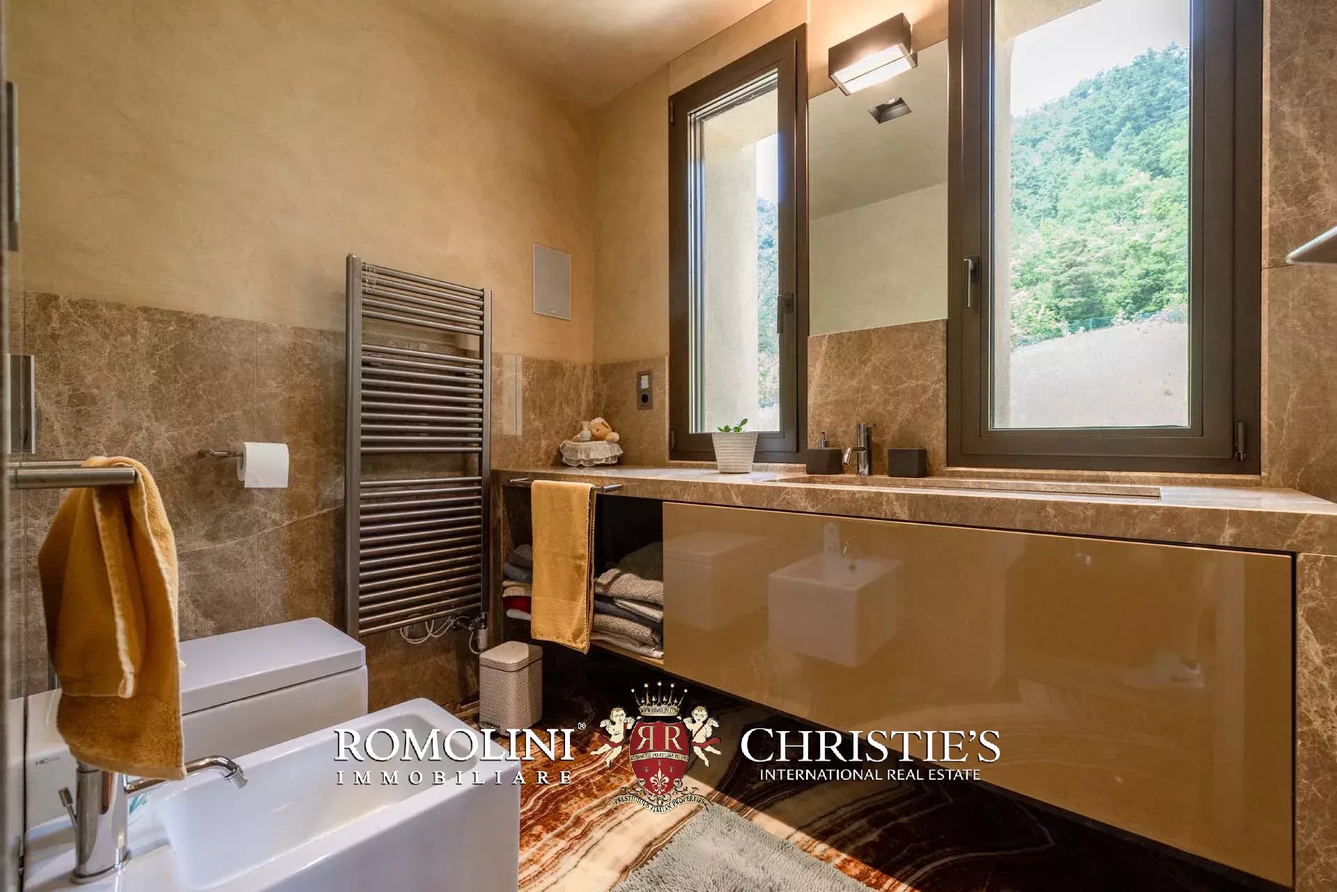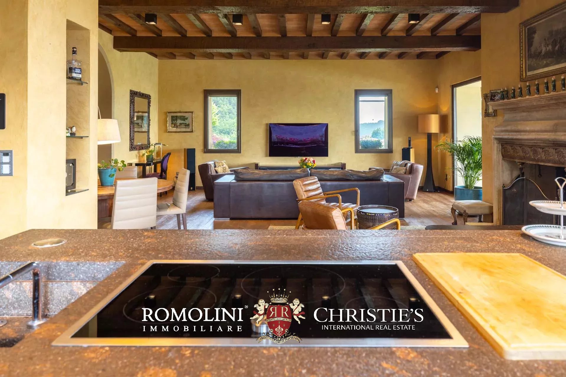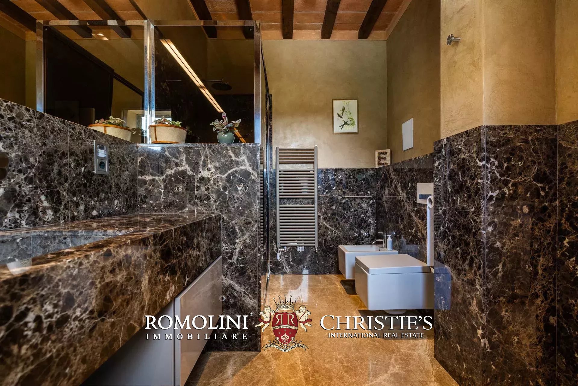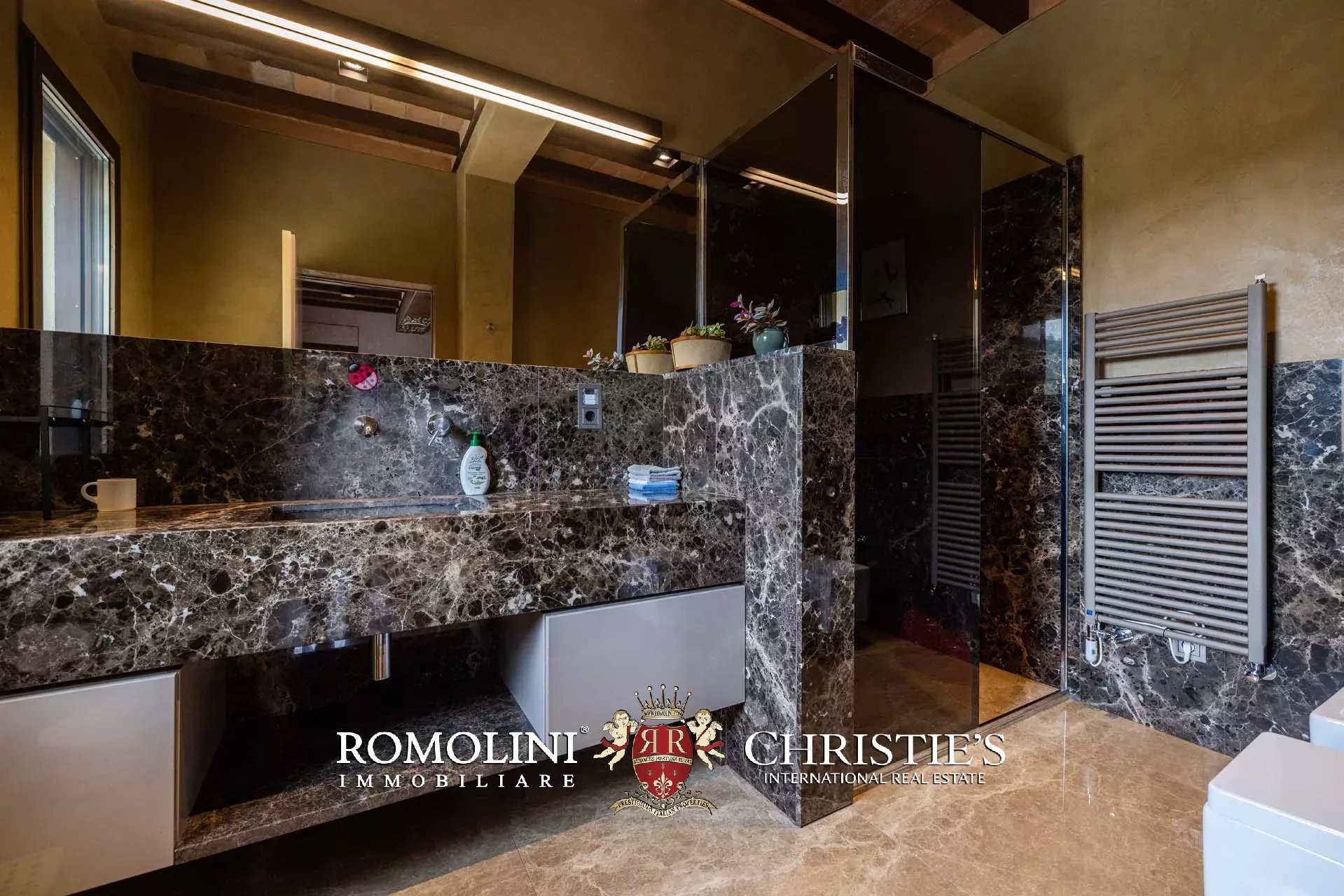 Sulle colline dell’Emilia, in posizione tranquilla e panoramica a breve distanza da Castellarano e Sassuolo, villa di lusso con piscina in vendita. La proprietà è stata recentemente ristrutturata con grande attenzione, mantenendo il fascino rustico originale ma introducendo finiture contemporanee di altissimo livello. Immersa in 26,9 ettari di terreno privato, la villa garantisce privacy assoluta e una vista impareggiabile sulla campagna circostante. Gli interni presentano materiali pregiati, arredi di design e una zona wellness professionale.