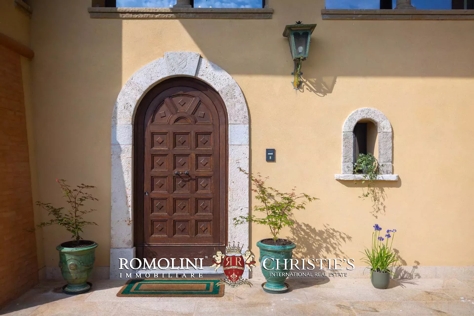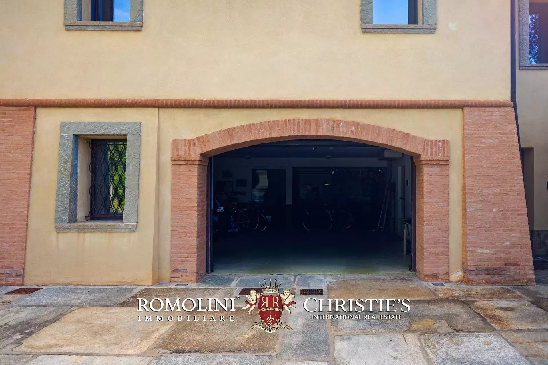 I terreni che circondano l’edificio sono recintati per circa 3,0 ettari e si accede tramite un cancello elettrico posto lungo il viale d’accesso alberato.