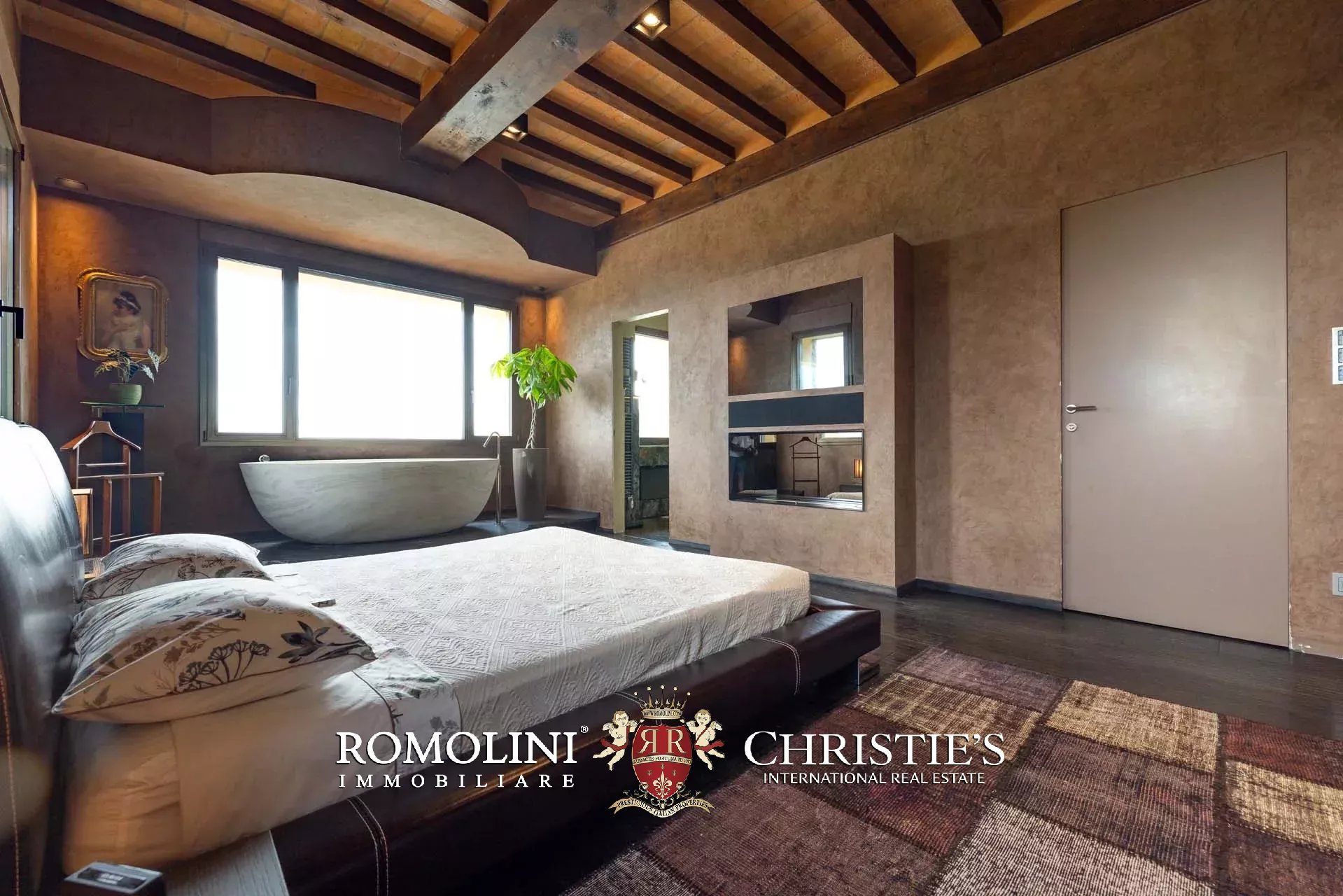 - Piano primo: disimpegno con uscita sulla loggia, tre camere con bagno privato e cabina armadio esclusiva;