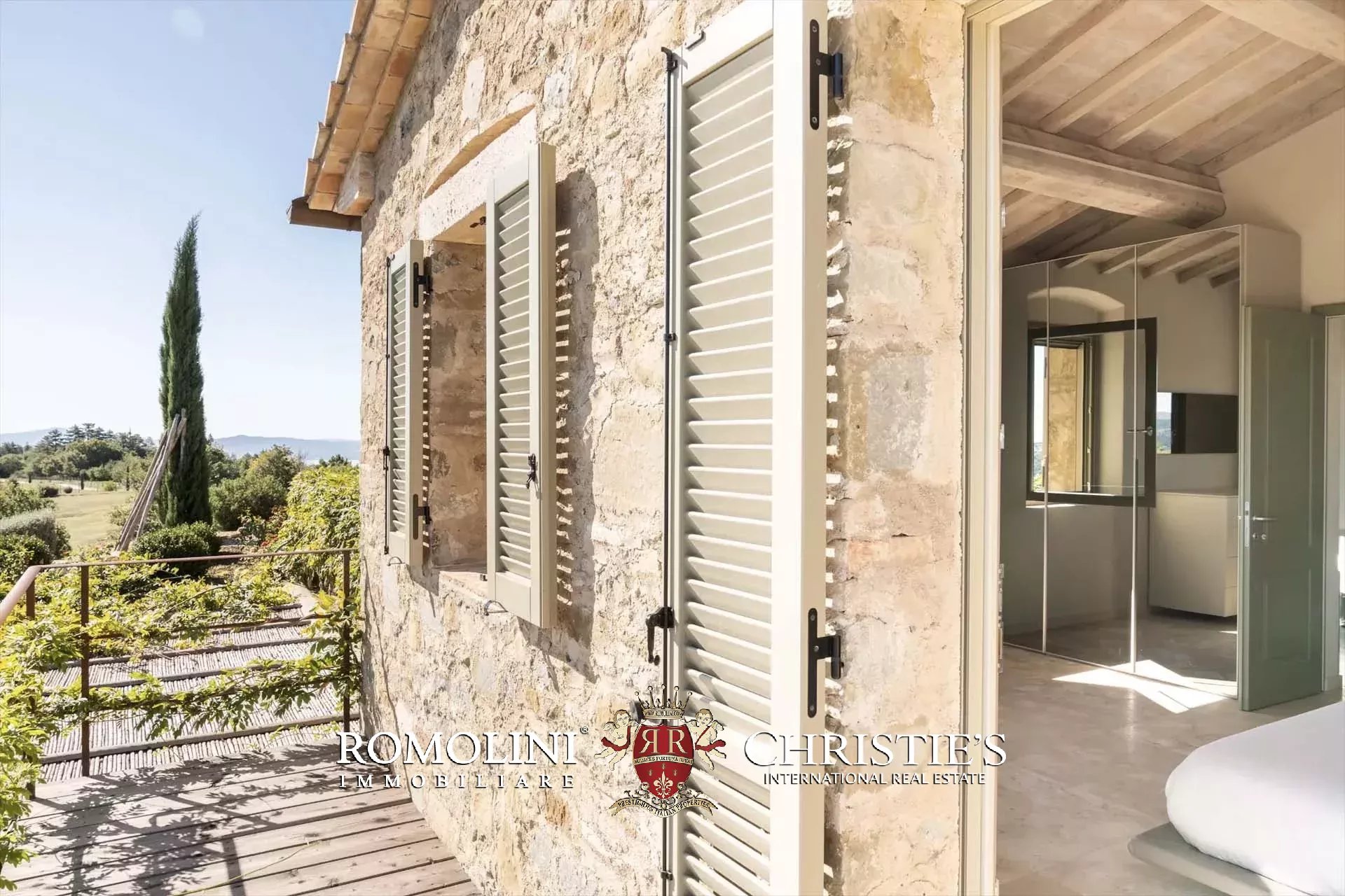 Situato in una posizione panoramica dominante con vista sul Lago Trasimeno e sulle dolci colline umbre, questo casale in pietra di recente costruzione, chiavi in mano, offre un’eccezionale combinazione di comfort contemporaneo e stile rurale. Immersa in 10,4 ettari di terreno privato, la proprietà garantisce assoluta tranquillità e privacy, pur trovandosi a pochi minuti di auto da tutti i principali servizi.