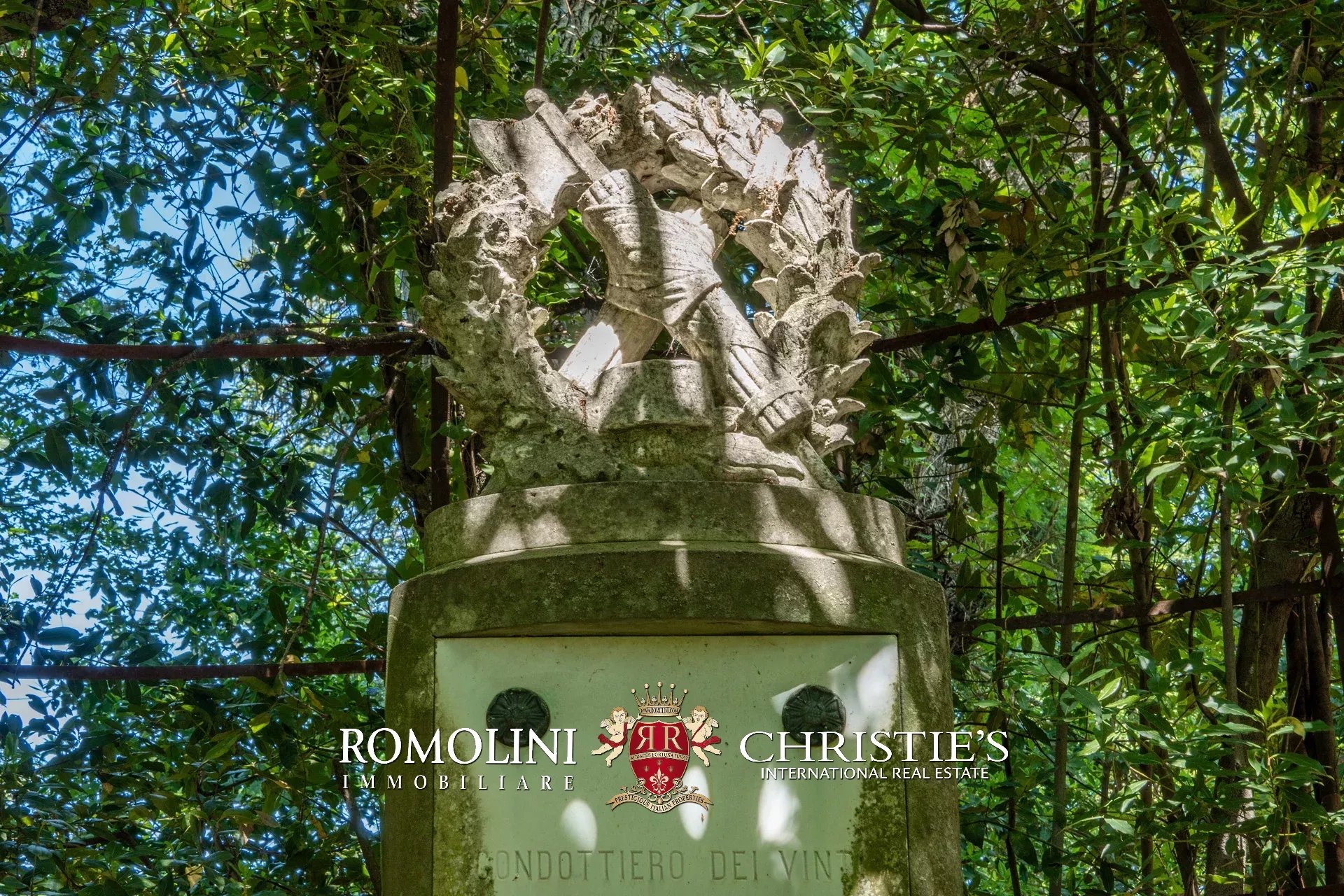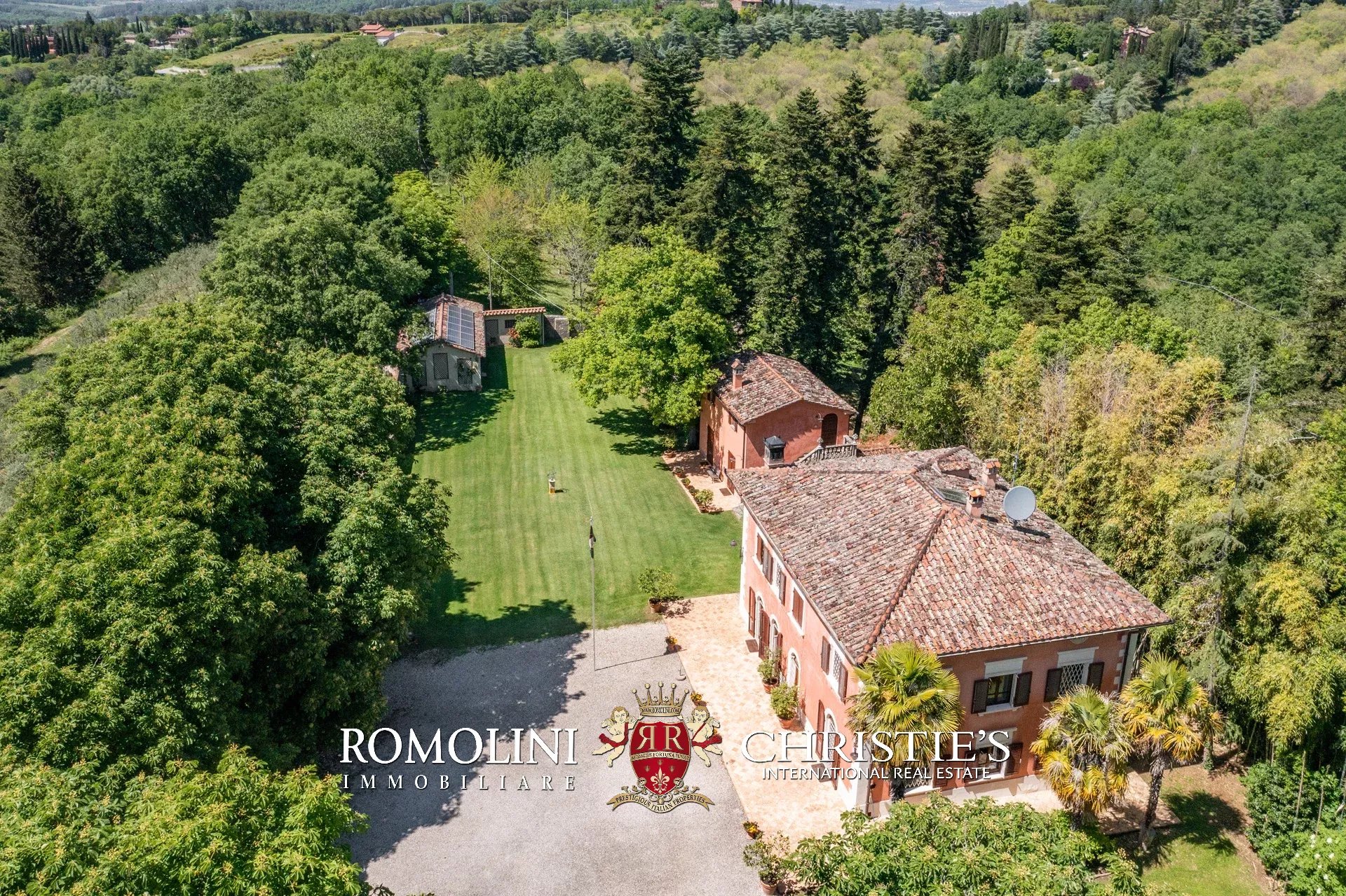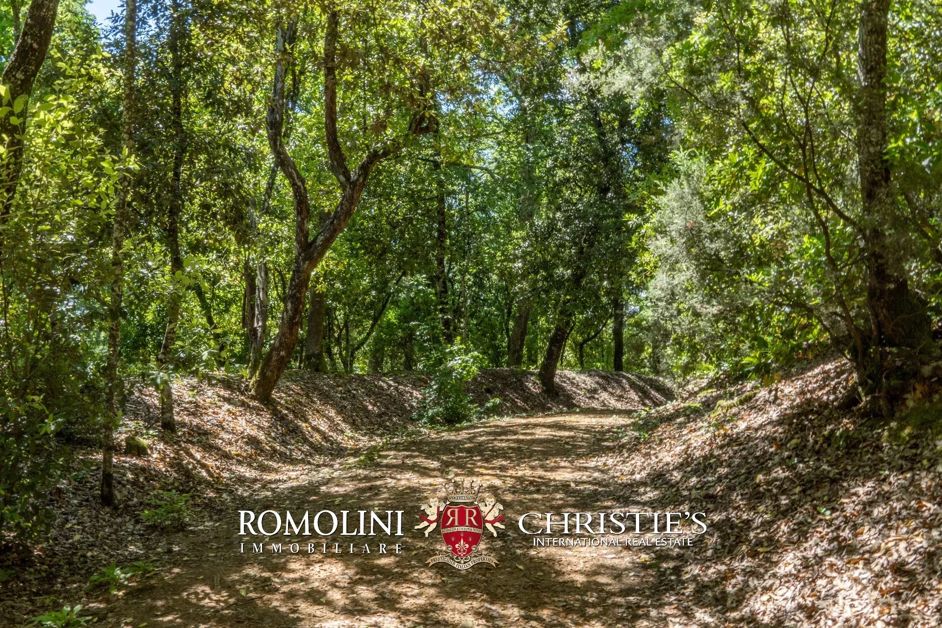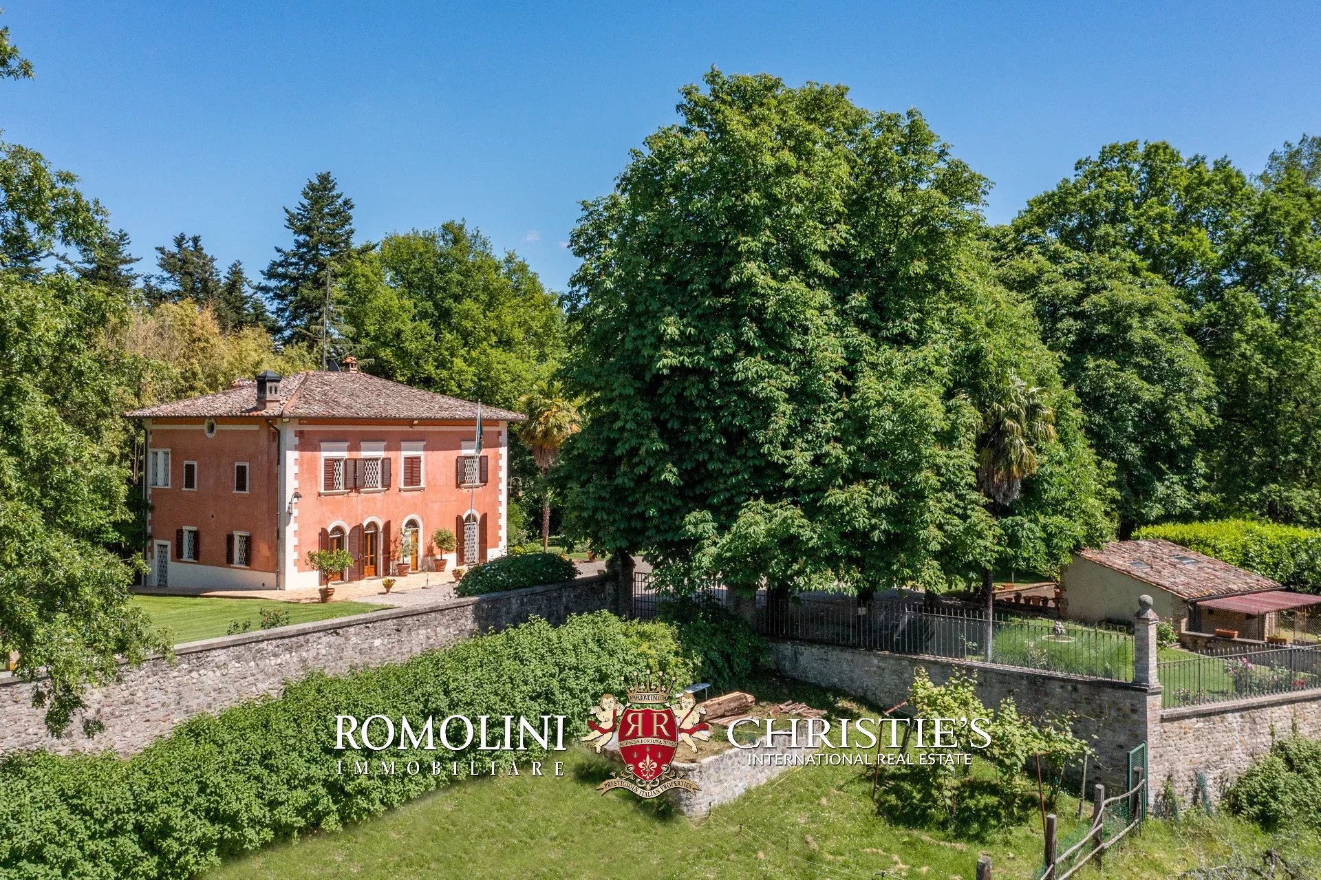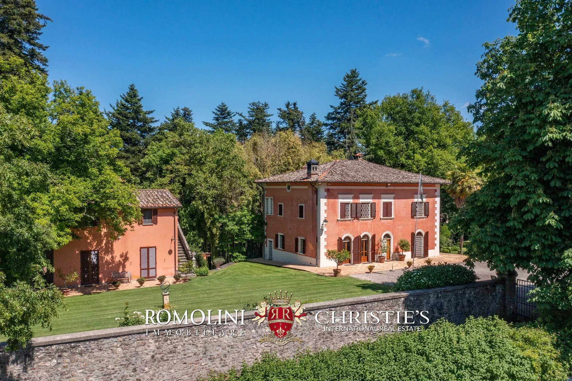 La villa si trova al centro di un appezzamento di terreno di circa 18,0 ettari, posti in posizione collinare e coperti quasi interamente da boschi (16,9 ha) che assicurano privacy e riservatezza. Il giardino (8.500 m²) è in ottime condizioni e circonda gli edifici assicurando ampi spazi aperti con piante ombreggianti per rilassarsi in estate. Una statua commemora il passaggio in zona del condottiero Garibaldi nel 1849.