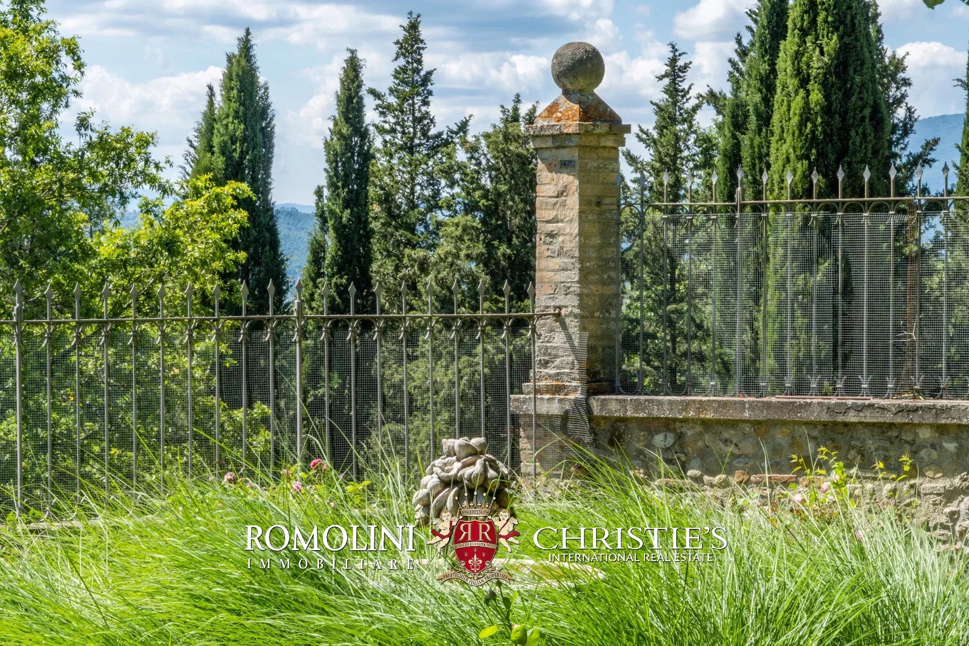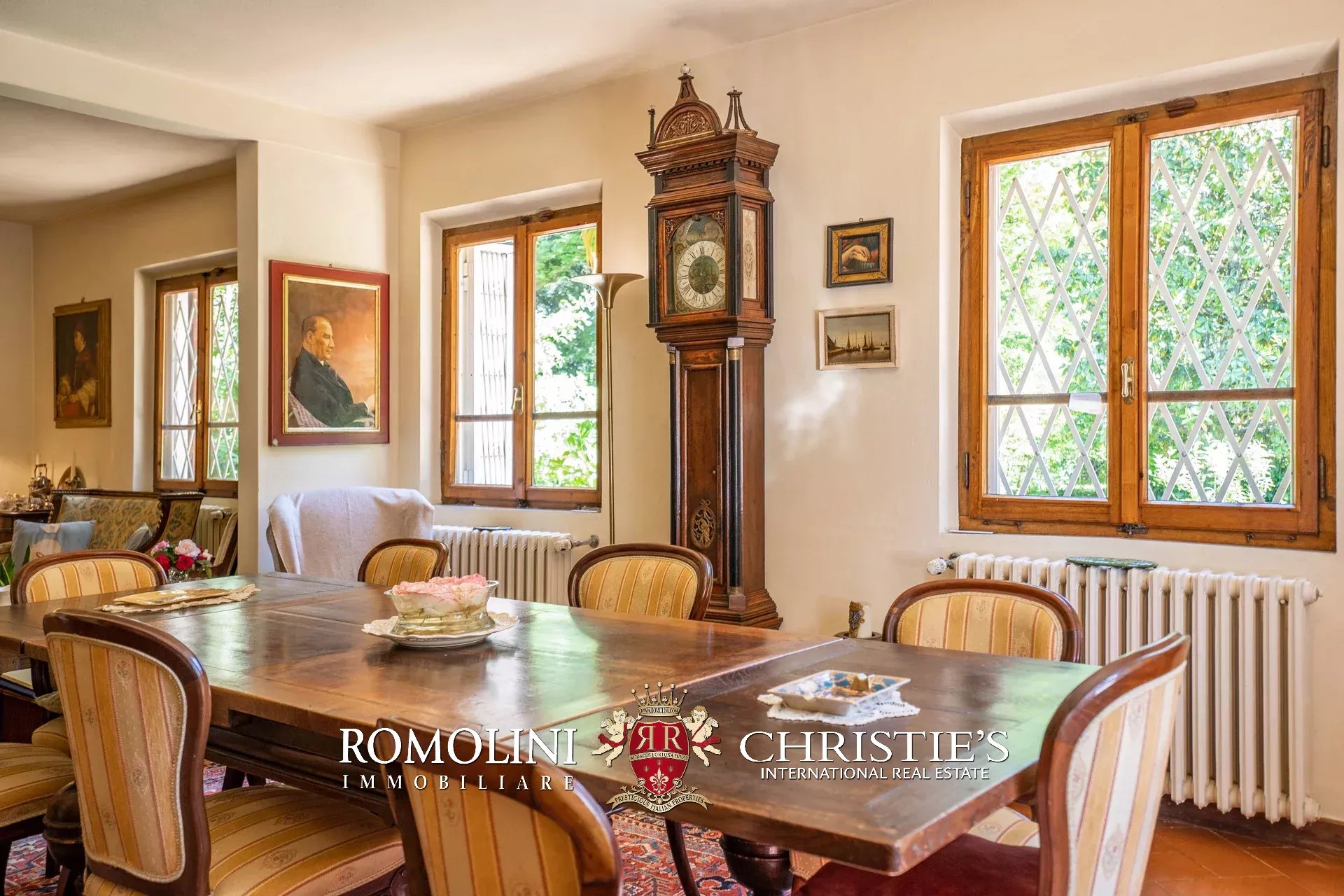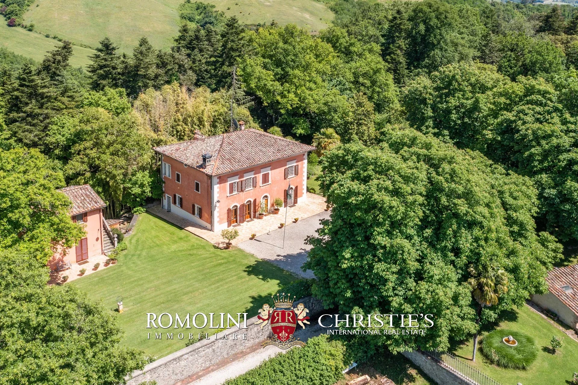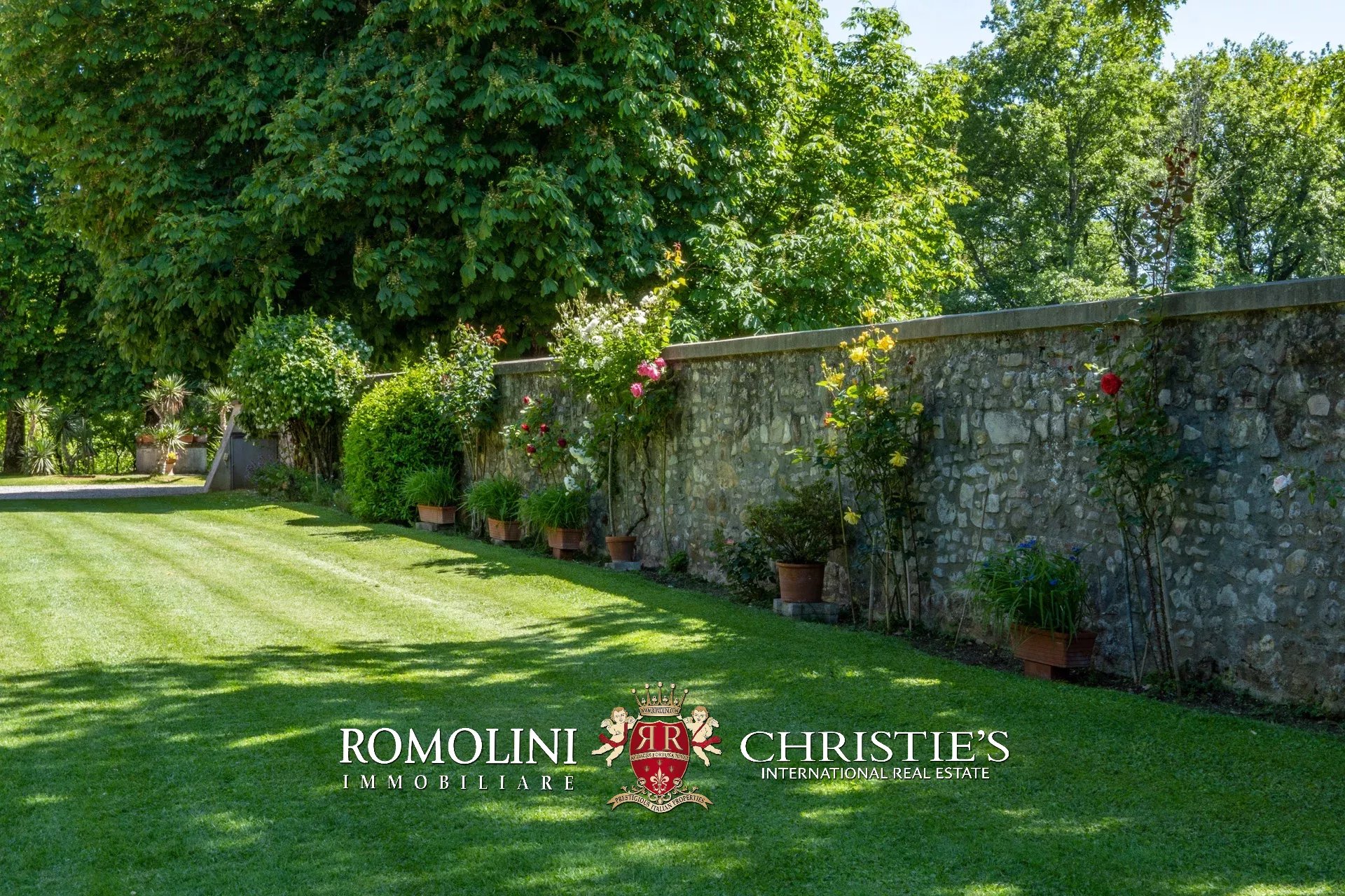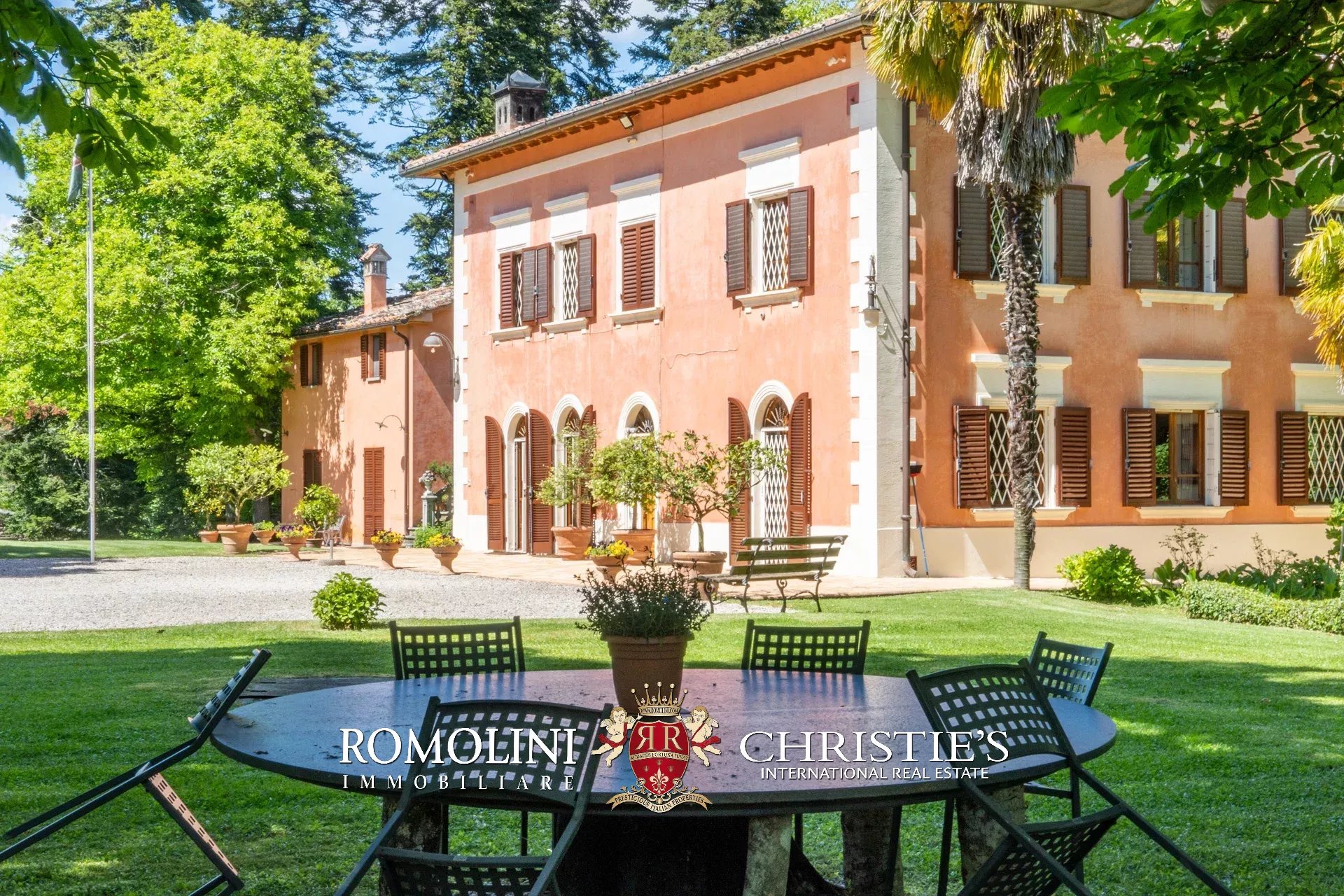 La villa si trova al centro di un appezzamento di terreno di circa 18,0 ettari, posti in posizione collinare e coperti quasi interamente da boschi (16,9 ha) che assicurano privacy e riservatezza. Il giardino (8.500 m²) è in ottime condizioni e circonda gli edifici assicurando ampi spazi aperti con piante ombreggianti per rilassarsi in estate. Una statua commemora il passaggio in zona del condottiero Garibaldi nel 1849.