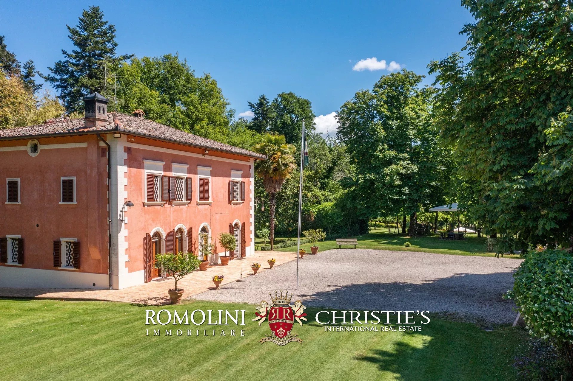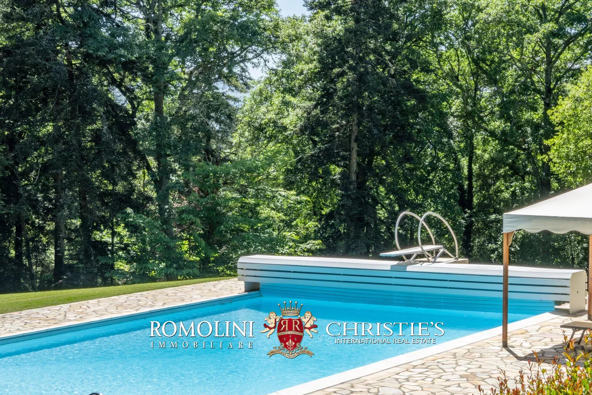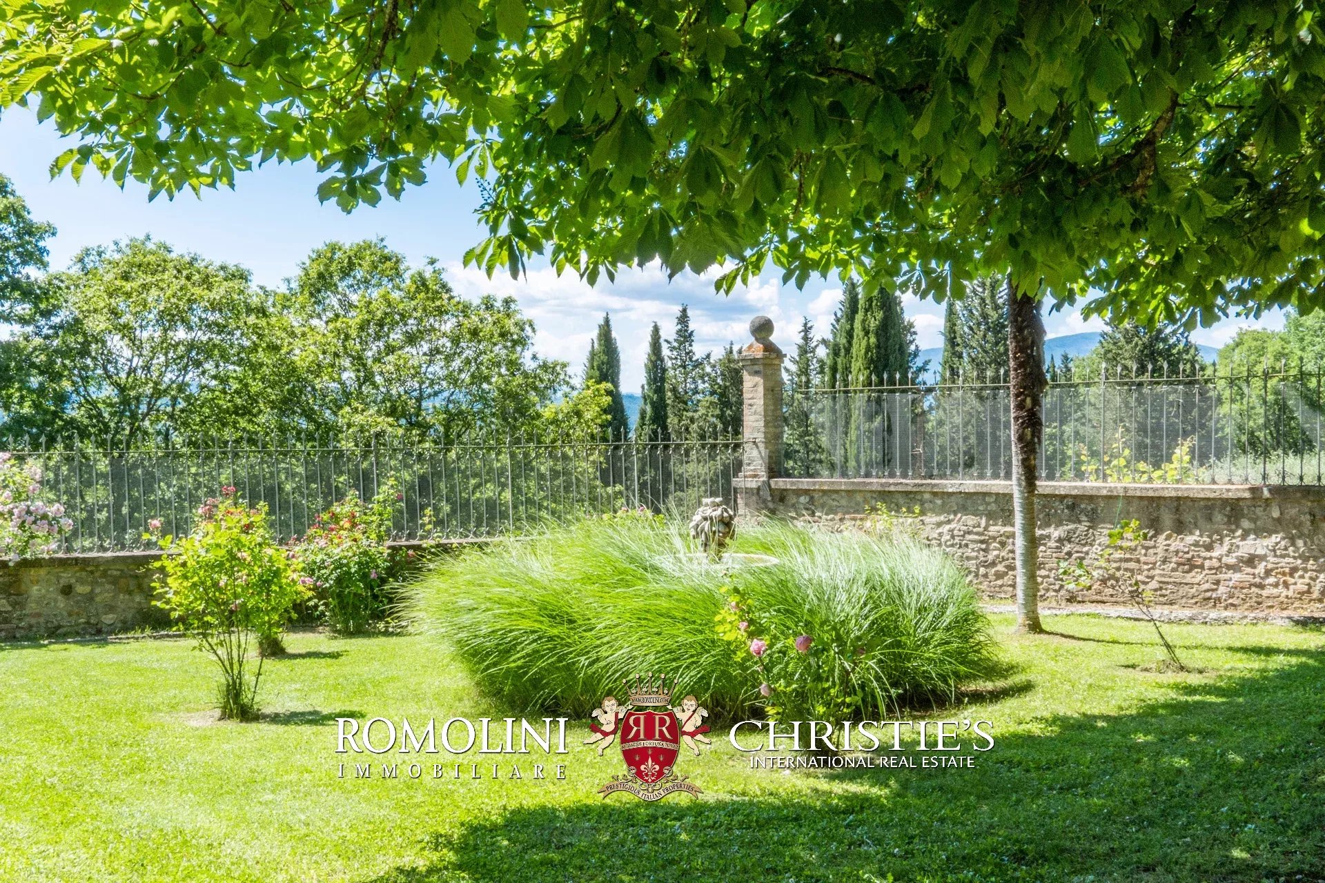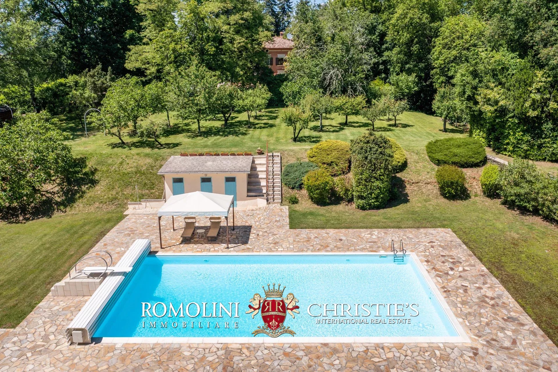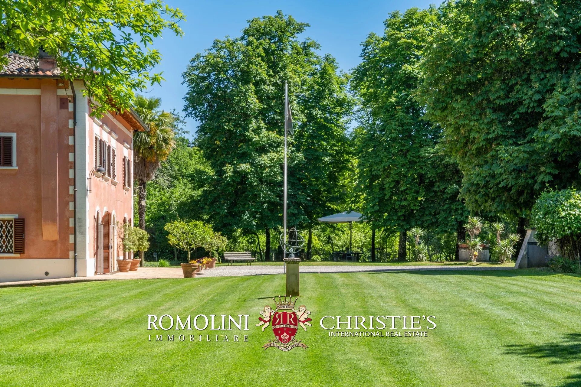 La villa si trova al centro di un appezzamento di terreno di circa 18,0 ettari, posti in posizione collinare e coperti quasi interamente da boschi (16,9 ha) che assicurano privacy e riservatezza. Il giardino (8.500 m²) è in ottime condizioni e circonda gli edifici assicurando ampi spazi aperti con piante ombreggianti per rilassarsi in estate. Una statua commemora il passaggio in zona del condottiero Garibaldi nel 1849.