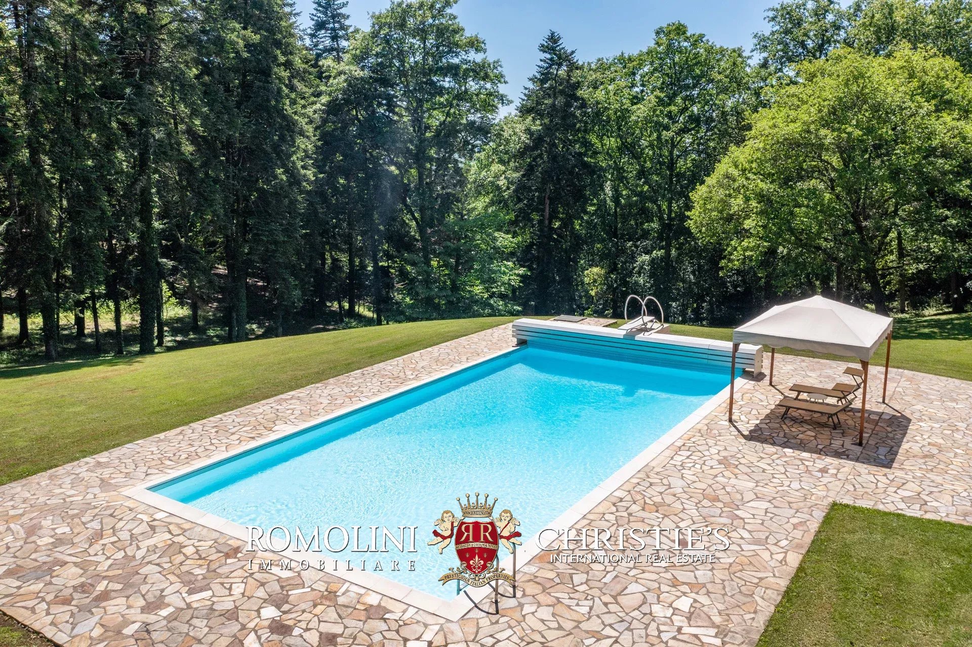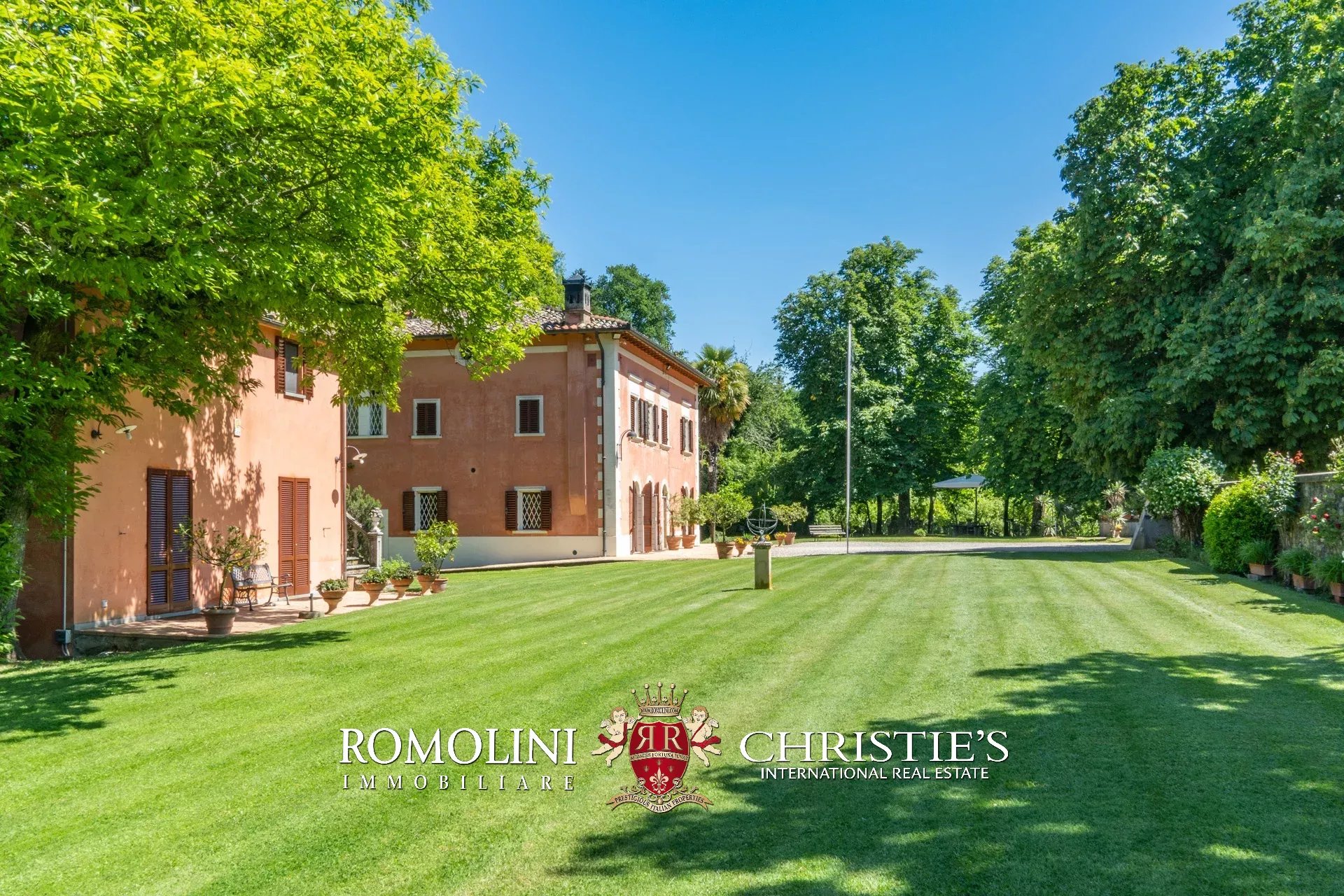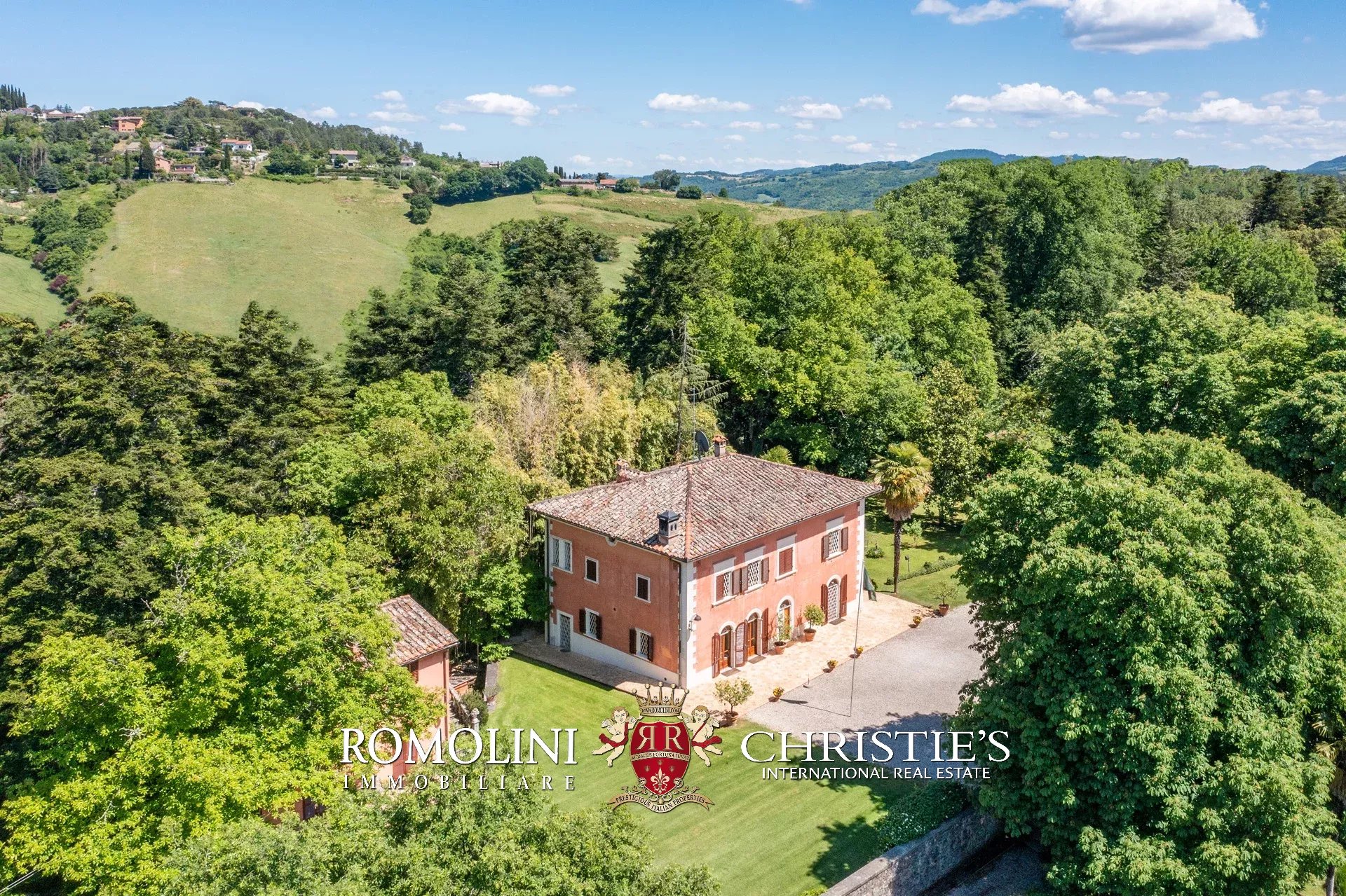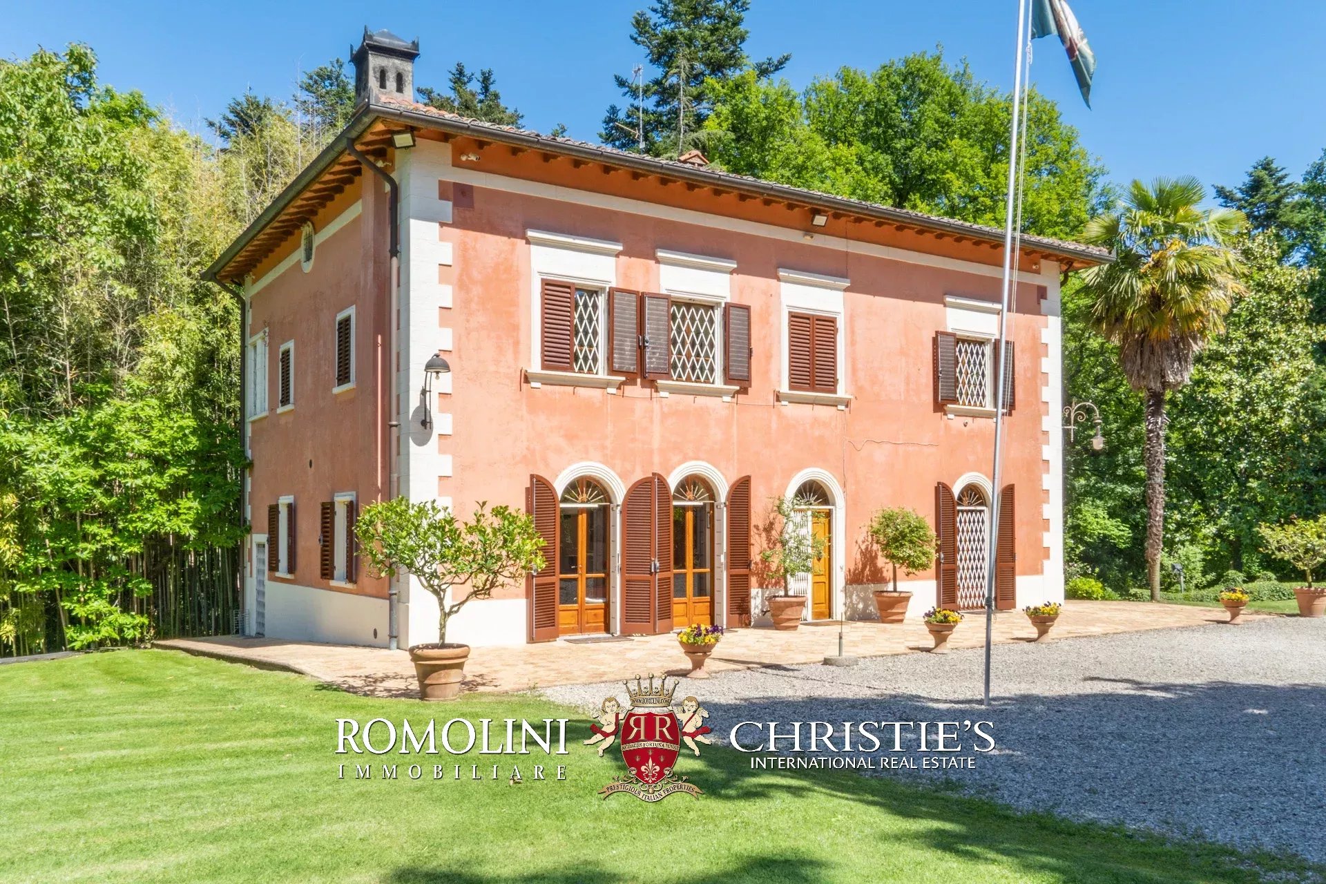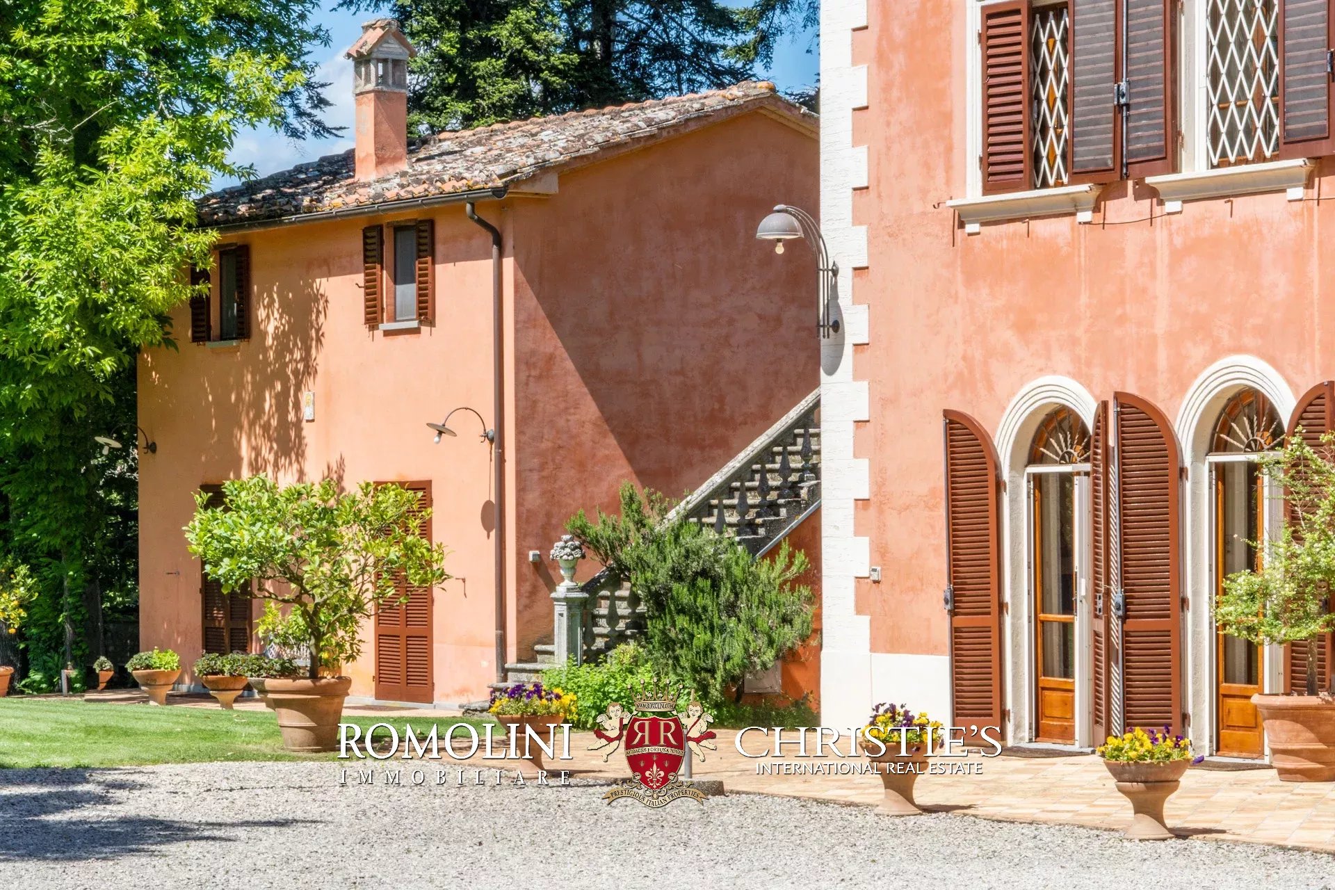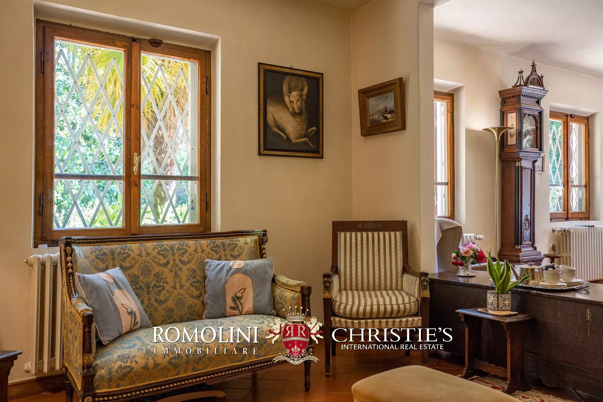 La villa si trova al centro di un appezzamento di terreno di circa 18,0 ettari, posti in posizione collinare e coperti quasi interamente da boschi (16,9 ha) che assicurano privacy e riservatezza. Il giardino (8.500 m²) è in ottime condizioni e circonda gli edifici assicurando ampi spazi aperti con piante ombreggianti per rilassarsi in estate. Una statua commemora il passaggio in zona del condottiero Garibaldi nel 1849.